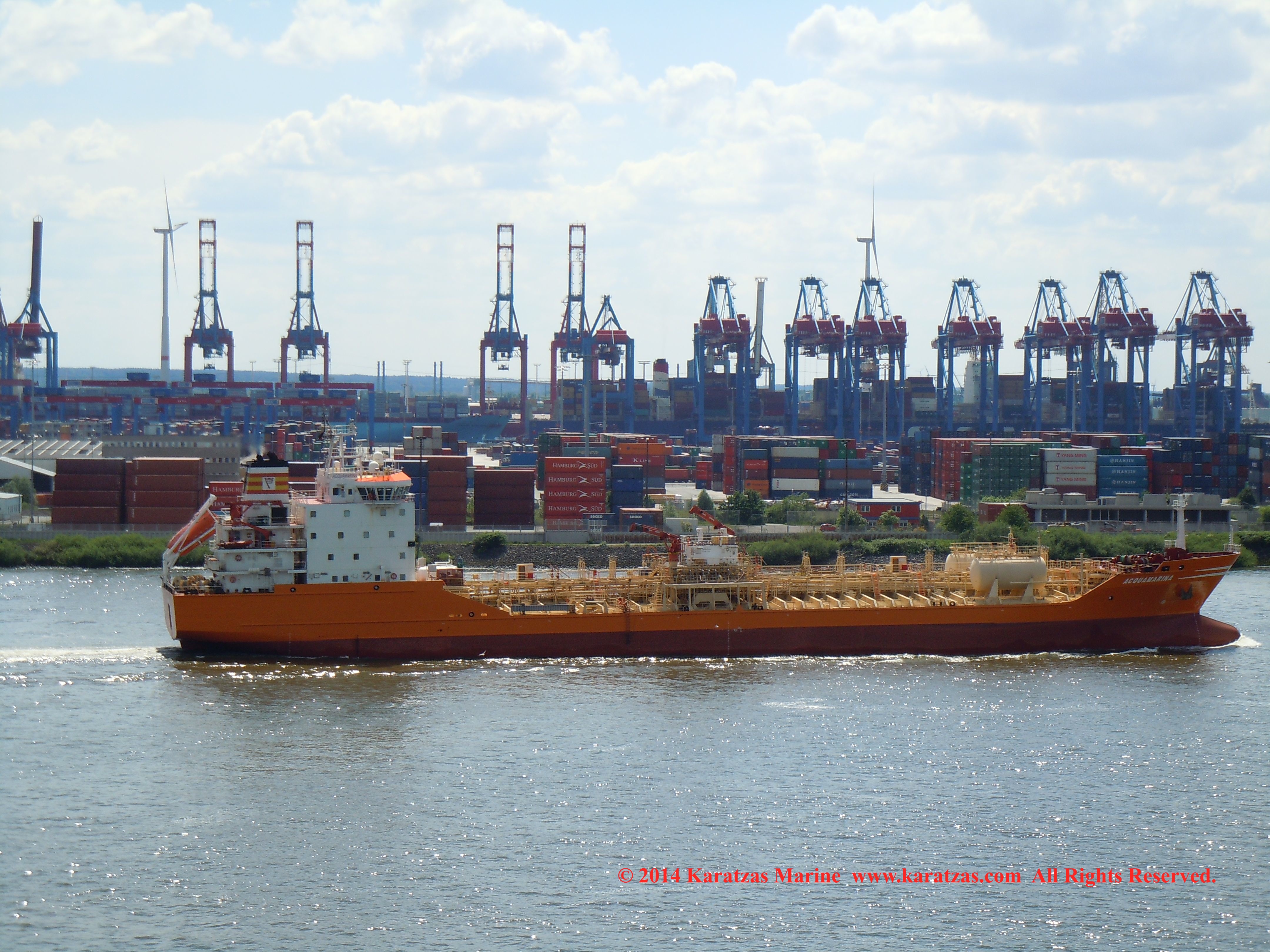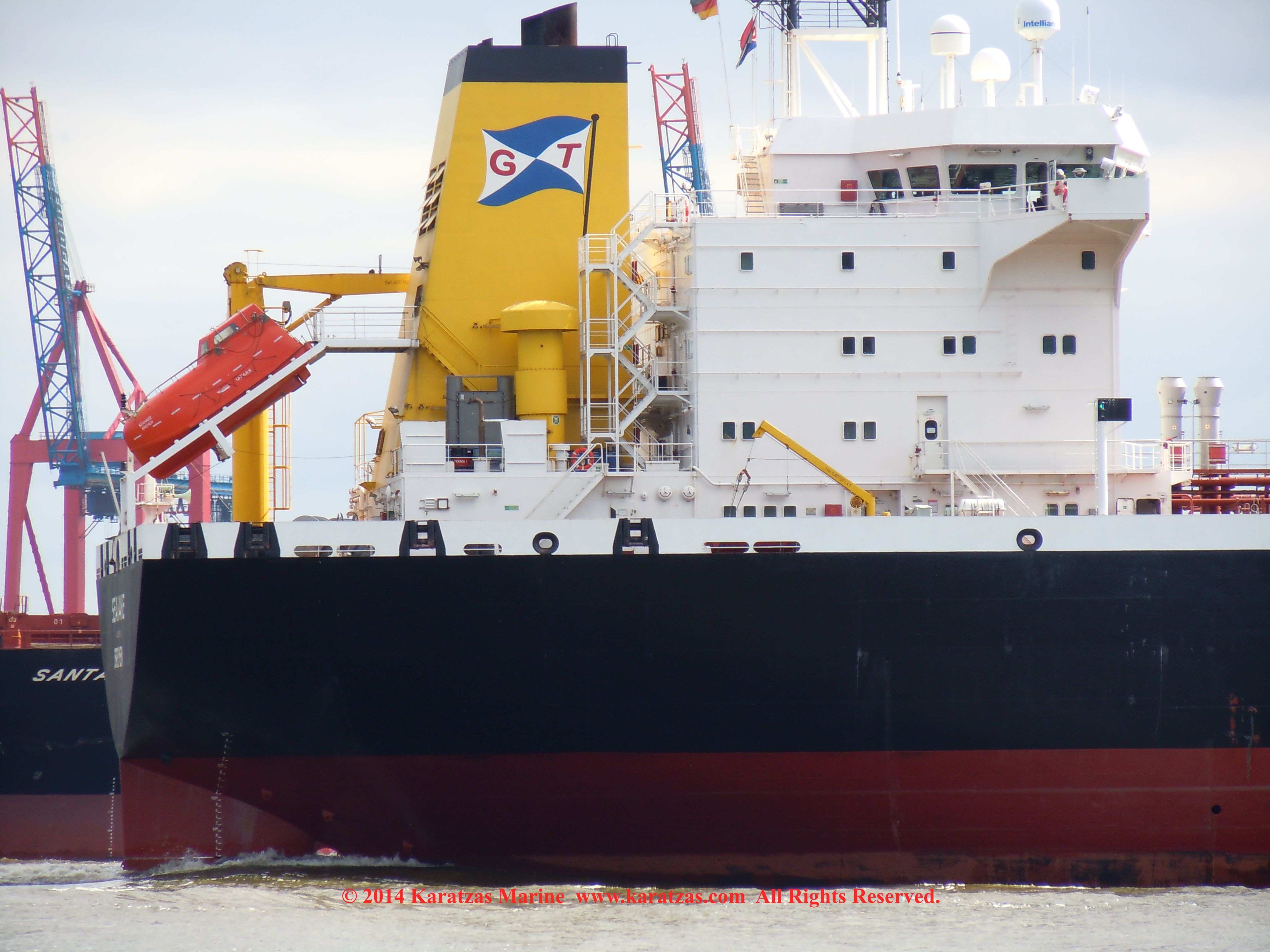 IDENTIFICATION: Handy Tanker, Call Sign DEEI, IMO Number 9255488. Built at Lindenau, Double Hull, Germany Flagged, GL Classed, Ice Strengthened E2 Class, Length Overall of 177.75 m., Length Between Perpendiculars of 168.00 m., Draught of 11.00 m., Beam of 28.00 m., 42.00 Tonnes per Centimetre Immersion, Gross Tonnage of 21,329, Moulded Depth of 16.80 m., Lightship air draft of 38.00 m., Keel to mast air draft of 44.45 m., Tonnage of 17,789 Panama Canal Net, 8,387 International Net and 31,937 Dwt (long). 1 fixed pitch Propellor, Bow Thruster. ENGINE DETAILS: Engine Description 4 S.A. 6-cyl., Engine Model 6L58/64, MAN Engine, Speed of 16.00 kts, Horsepower of 11,338B at 428, Bunker Capacity of 863 tonnes.