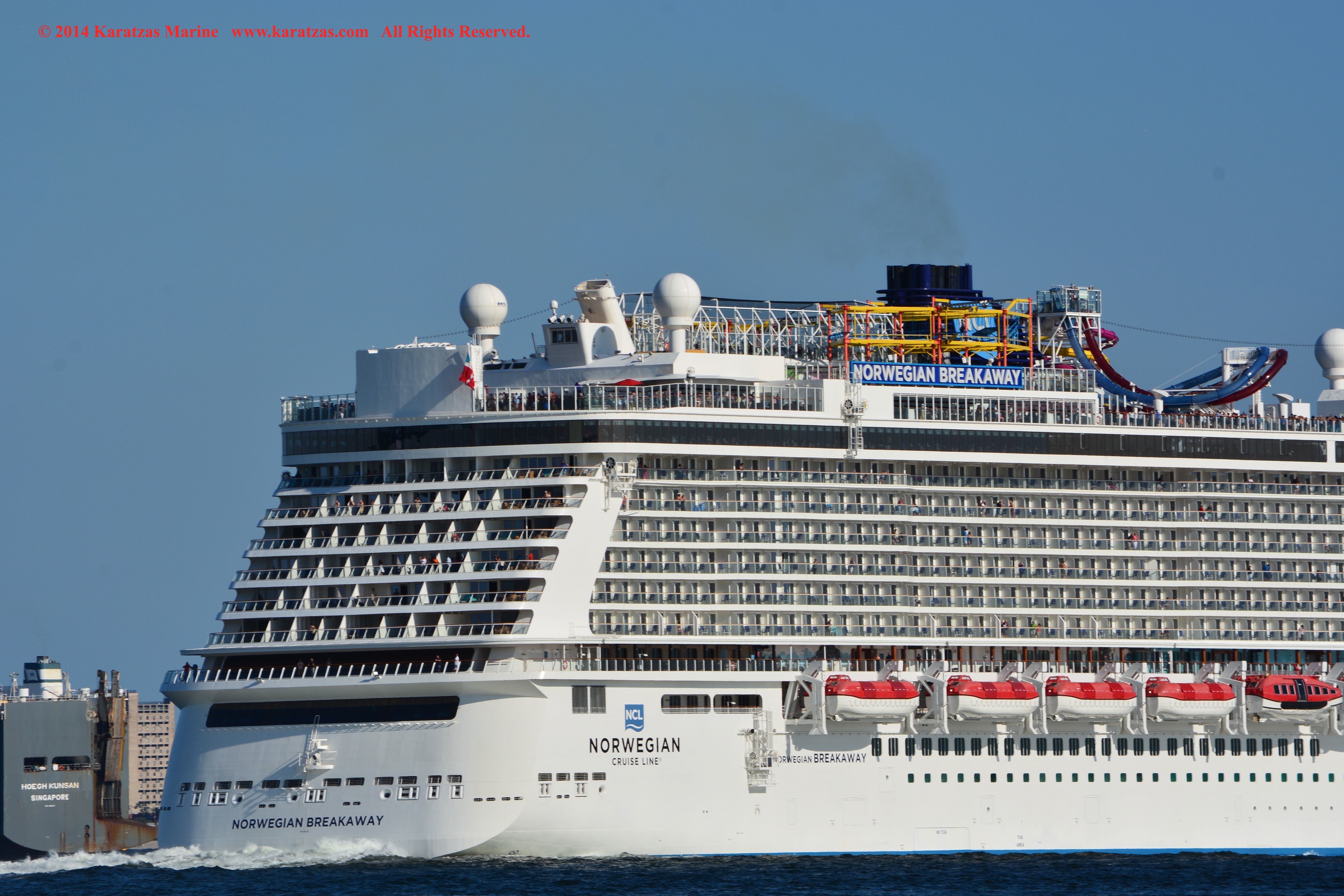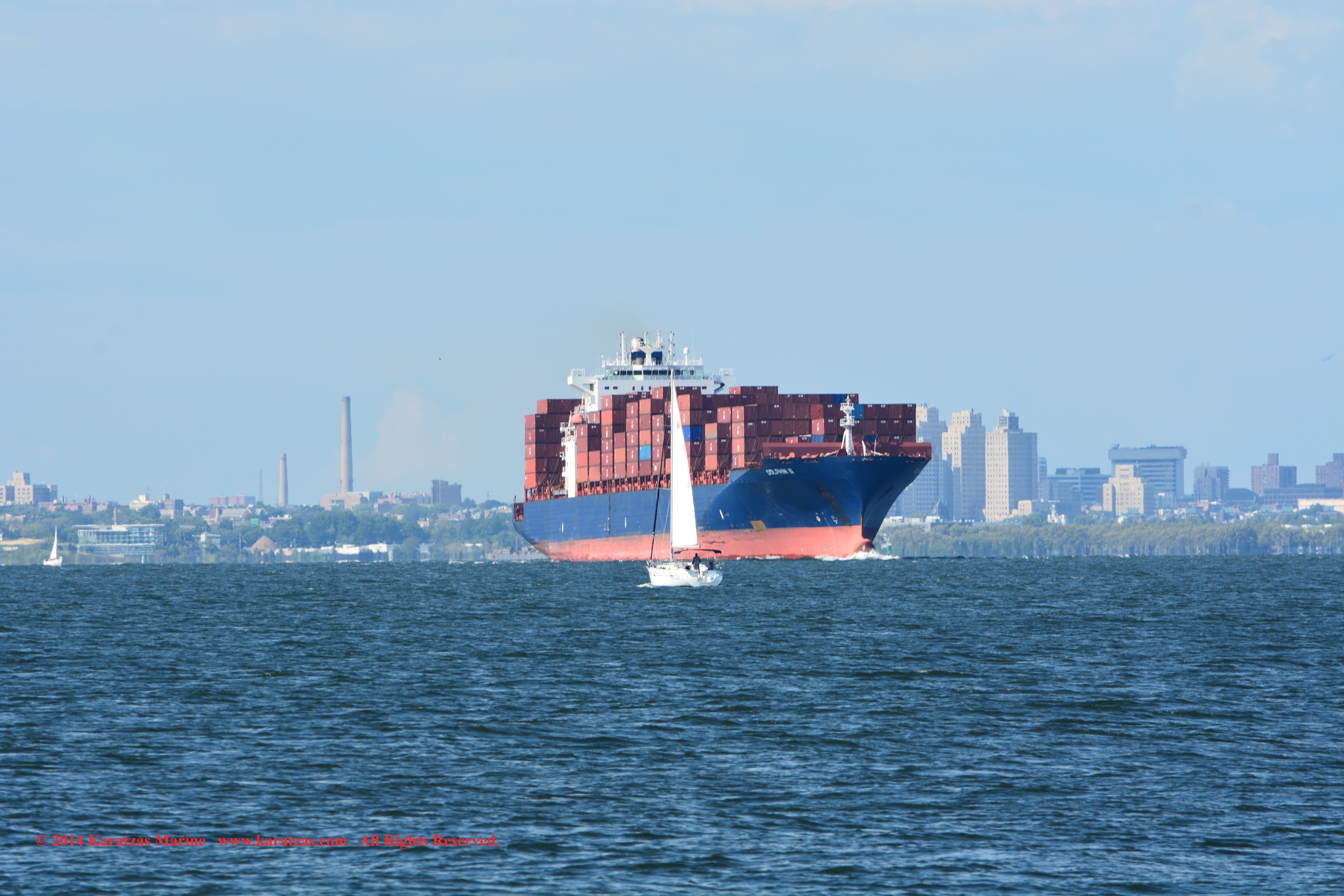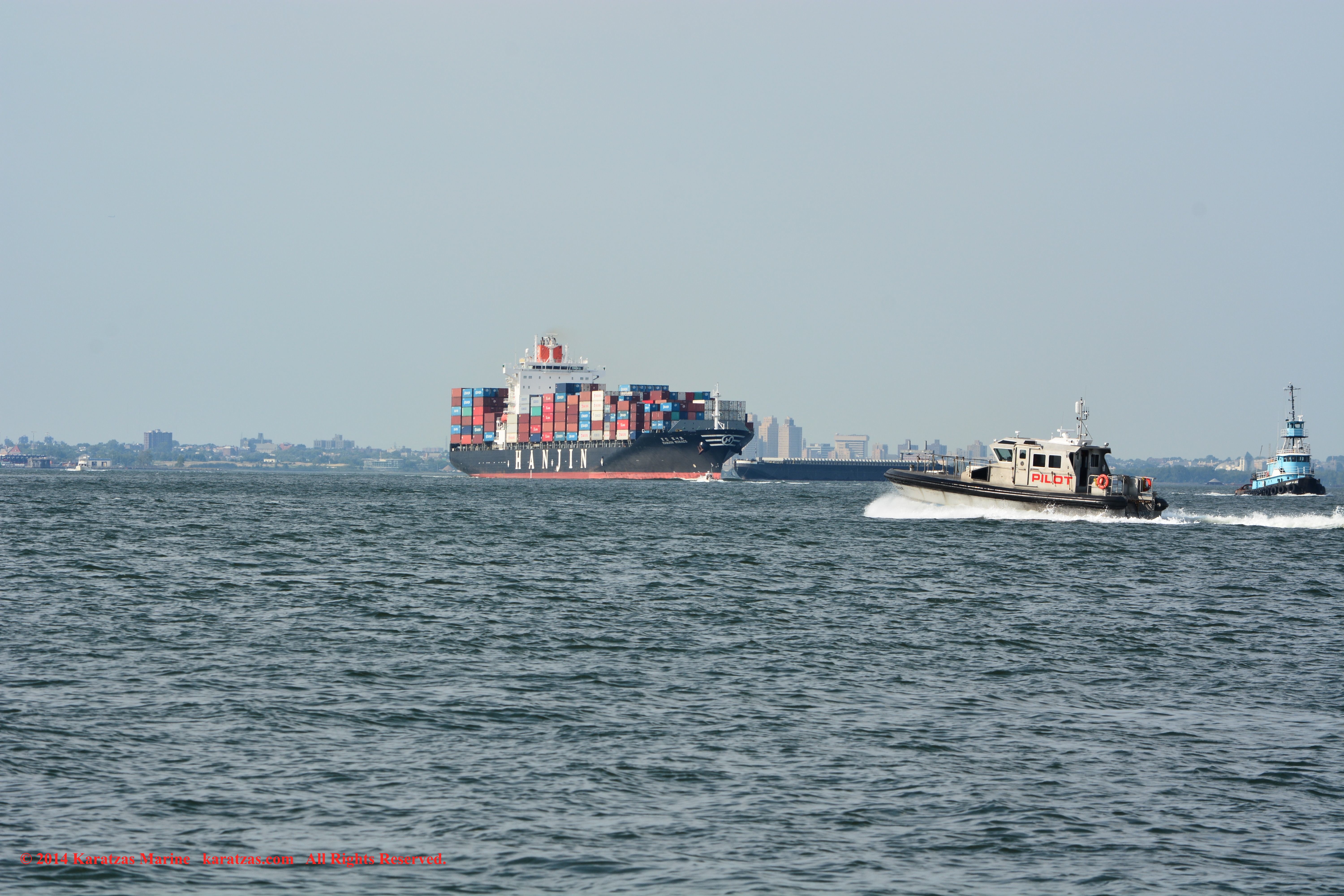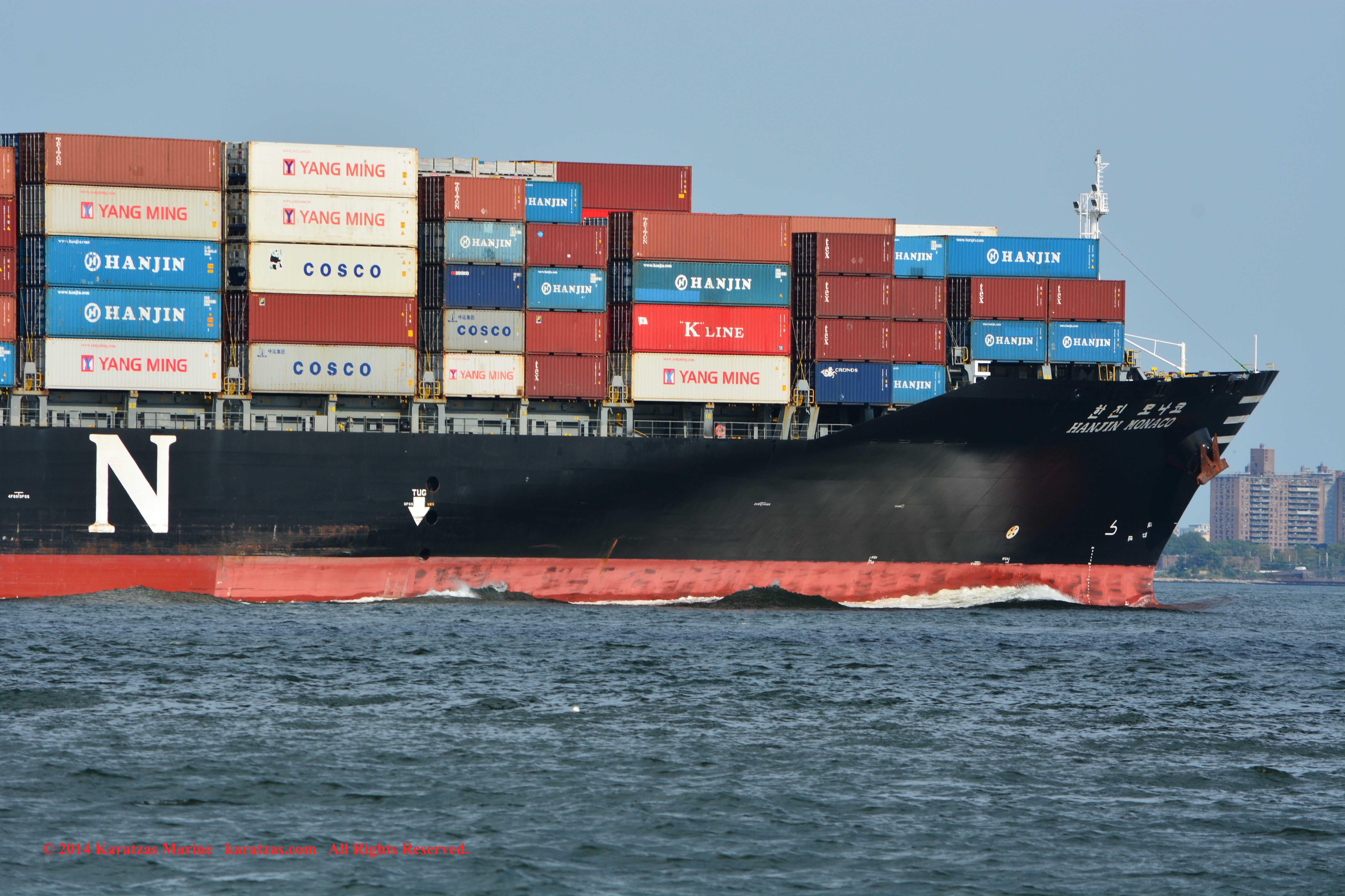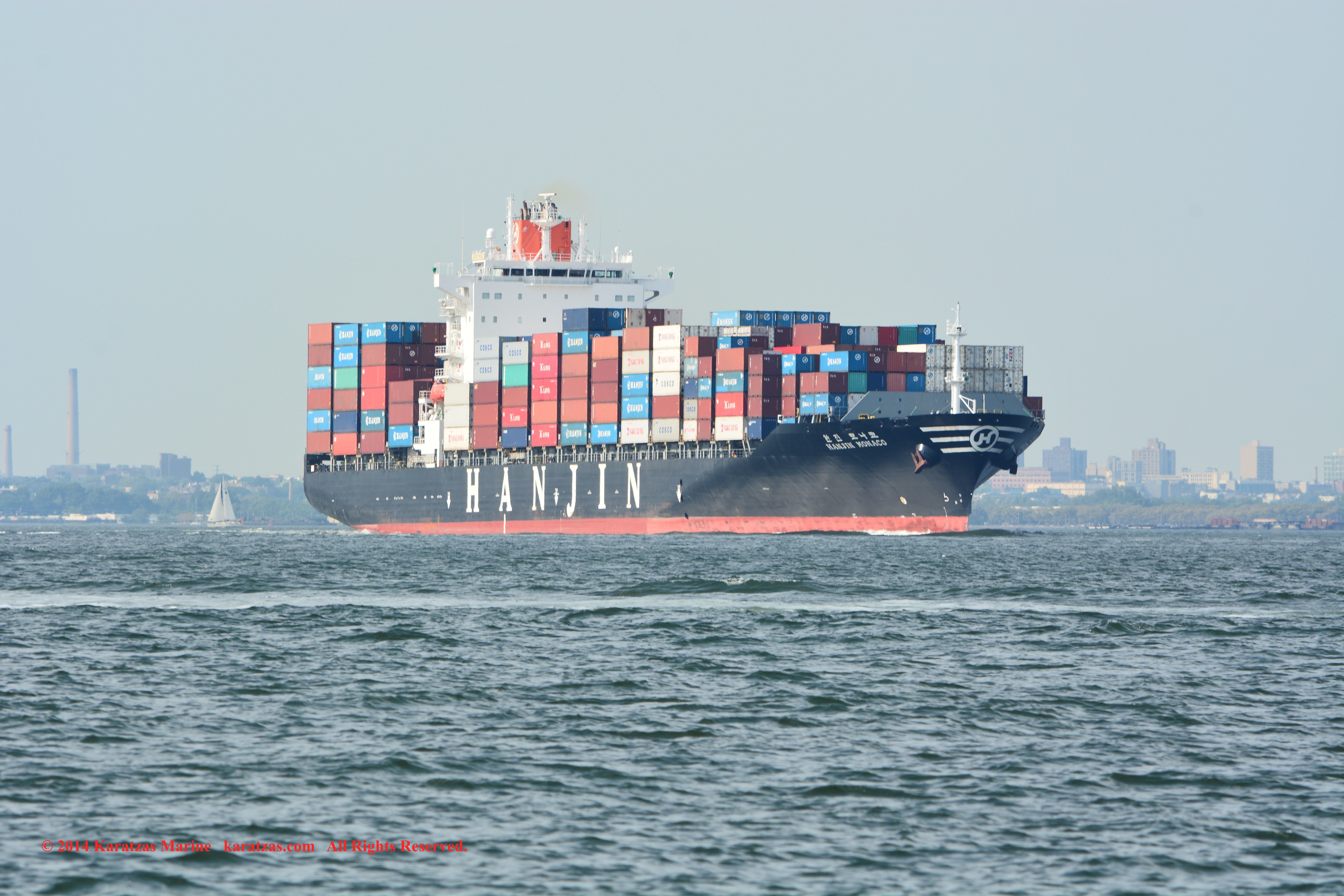 Panamax containership MV ‘Hanjin Monaco’ (4,300 TEU, built in 2009 at Samsung Heavy) departing New York Harbor. karatzas.com