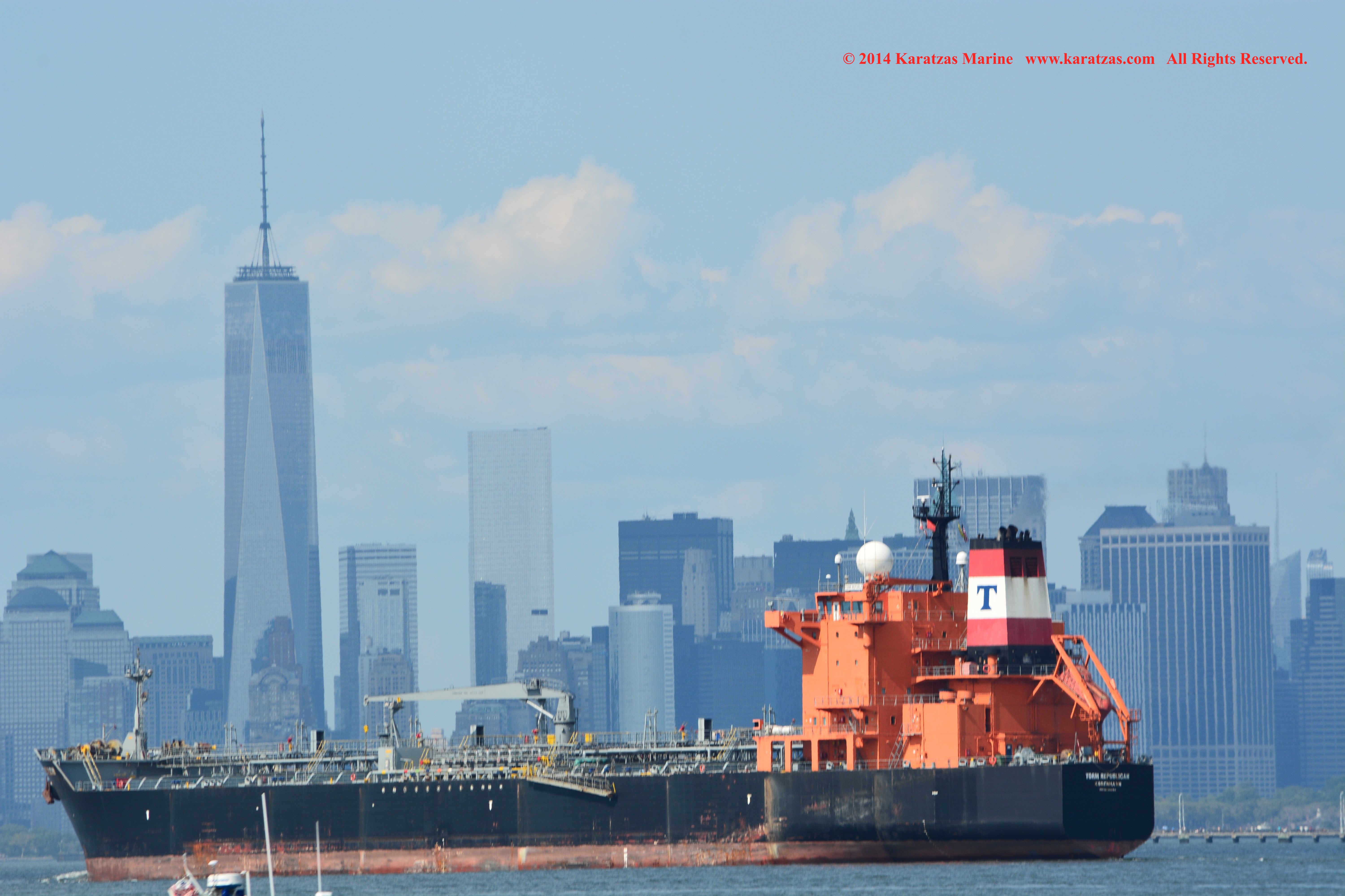 Chemical & Products Tanker MT ‘TORM REPUBLICAN’ (built at Hyundai Mipo in 2006, 47,000 DWT, IMO III); Downtown Manhattan skyline with World Trade Center karatzas.com