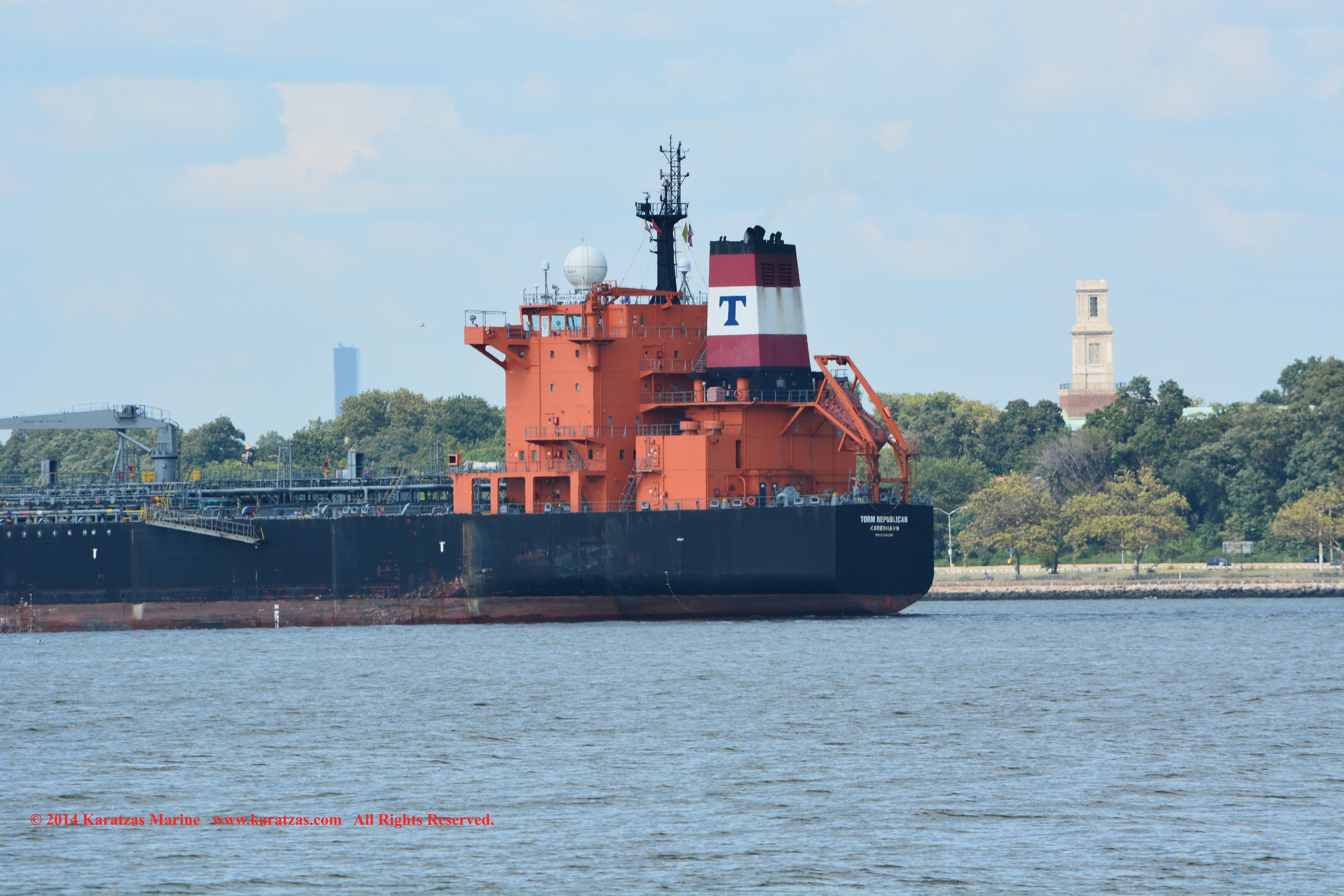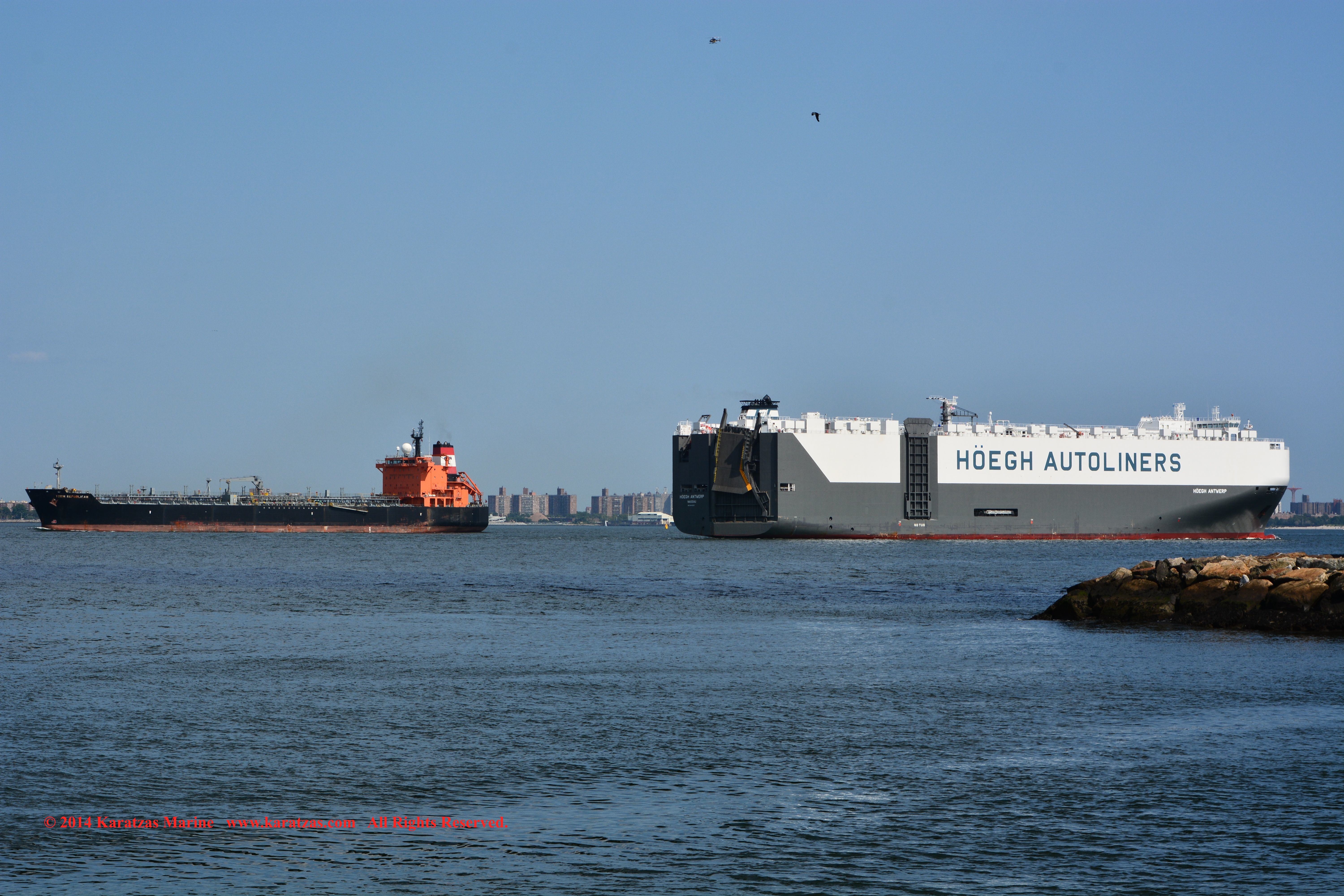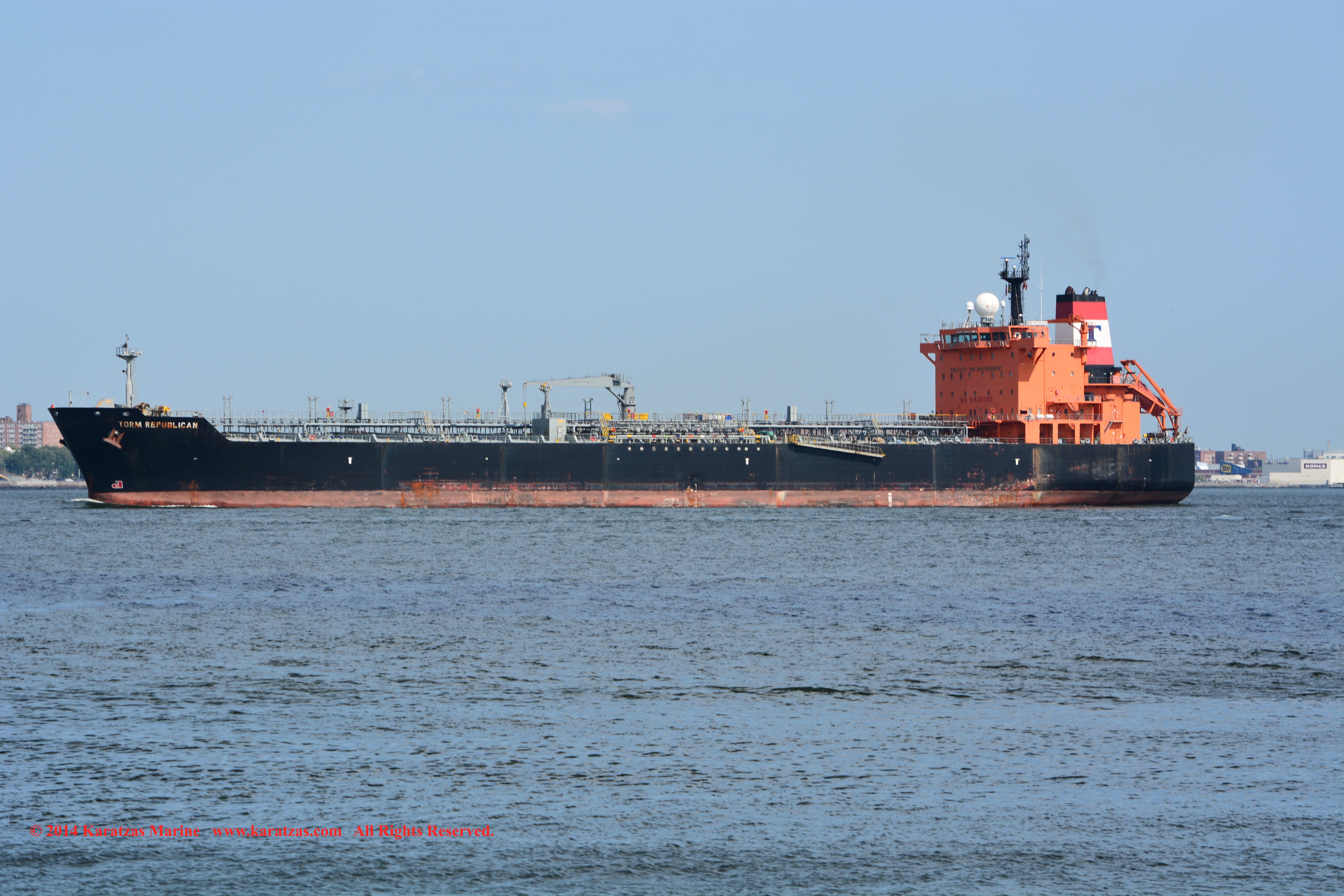 Chemical & Products Tanker MT ‘TORM REPUBLICAN’ (built at Hyundai Mipo in 2006, 47,000 DWT, IMO III); crossing paths with Car Carrier MV ‘HOEGH ANTWERP’ (outbound New York Harbor) karatzas.com