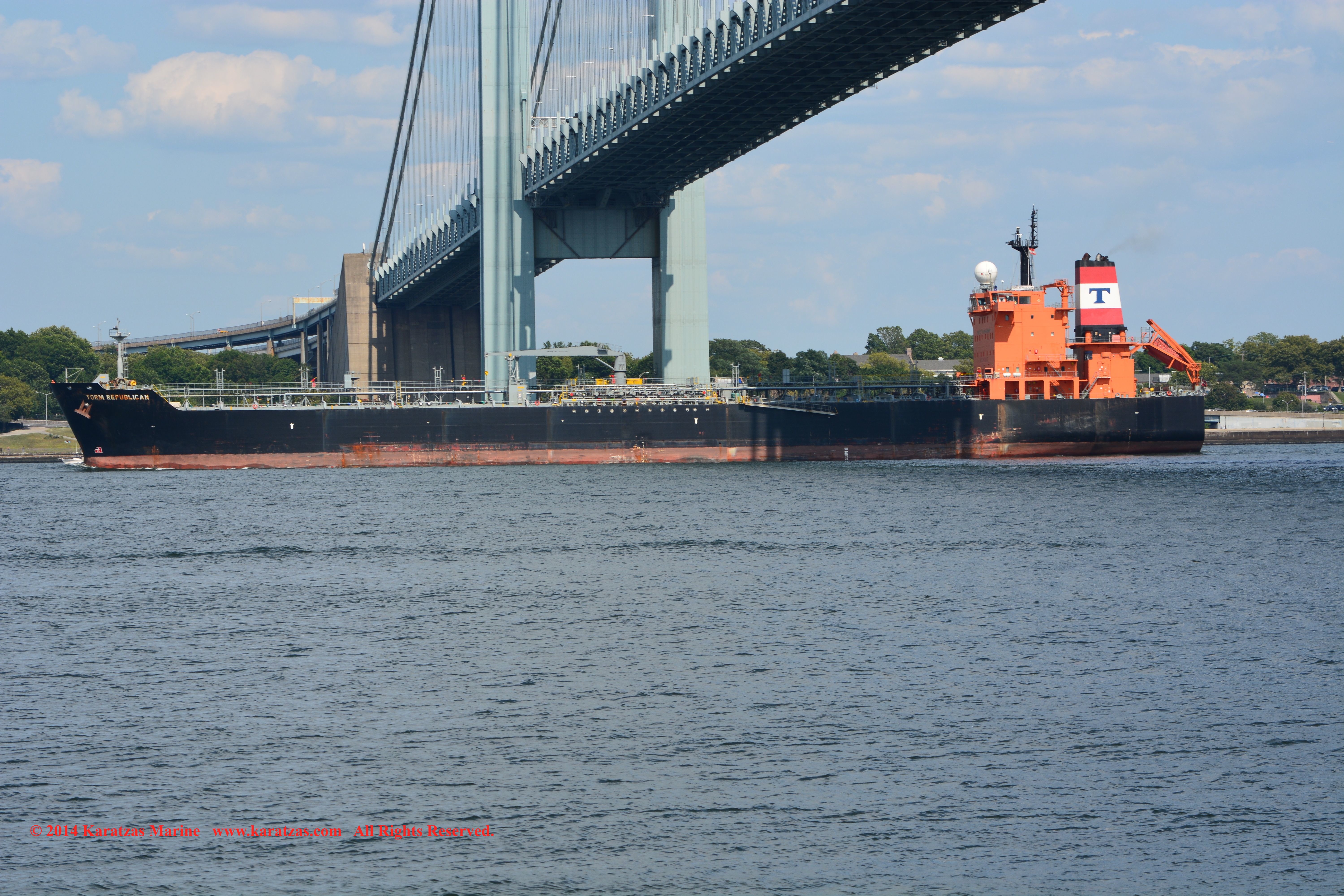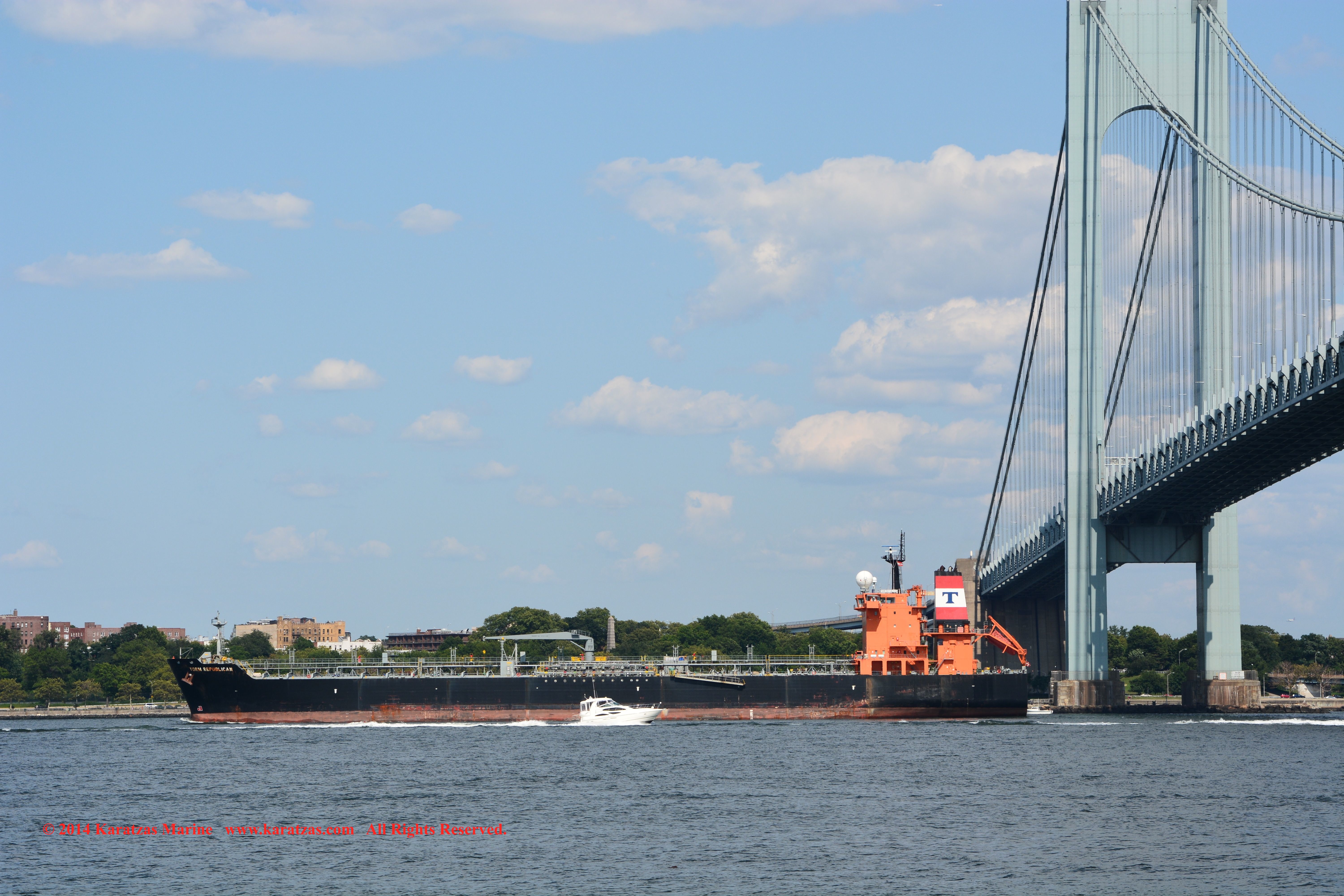 Chemical & Products Tanker MT ‘TORM REPUBLICAN’ (built at Hyundai Mipo in 2006, 47,000 DWT, IMO III); under Verrazano-Narrows Bridge; karatzas.com