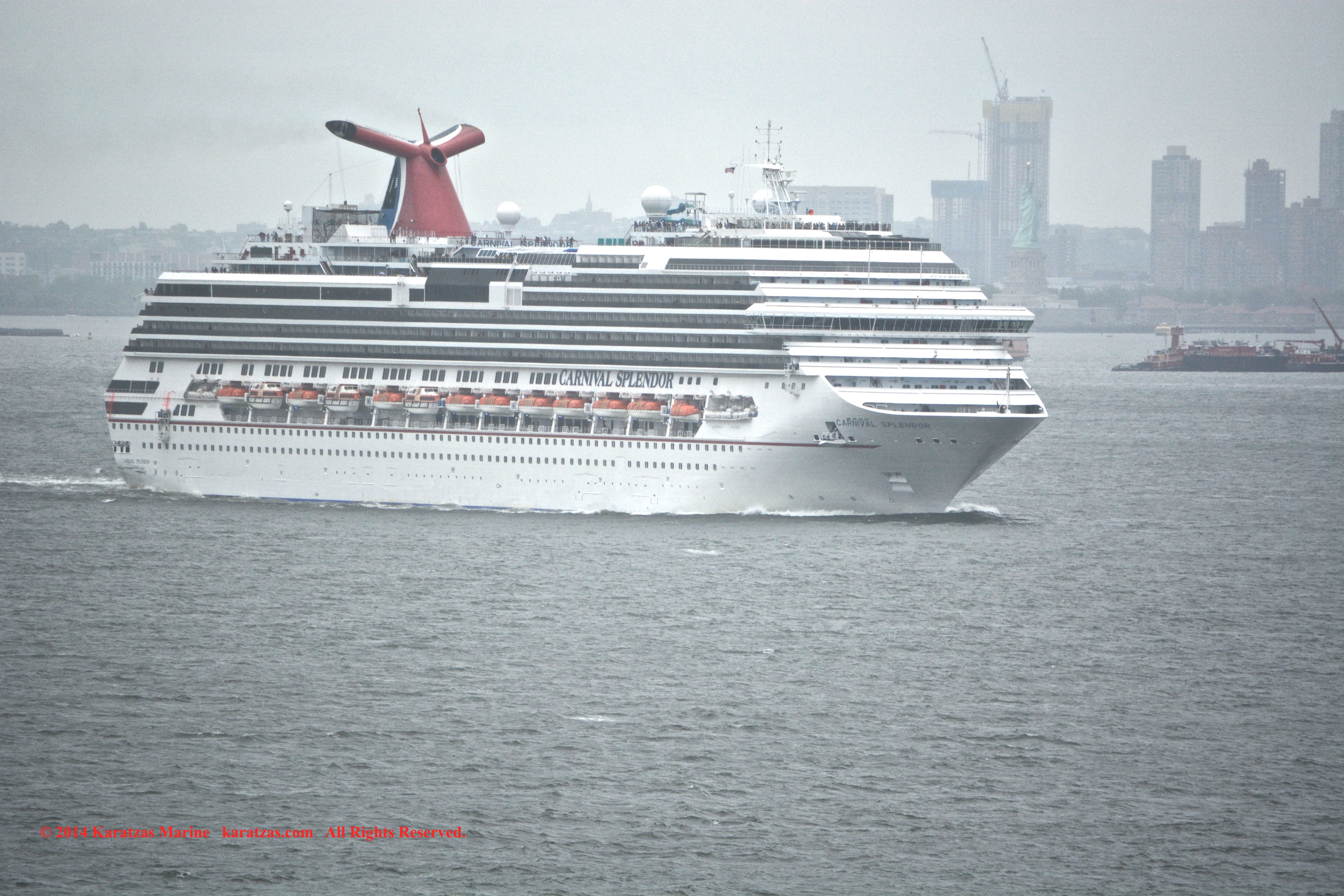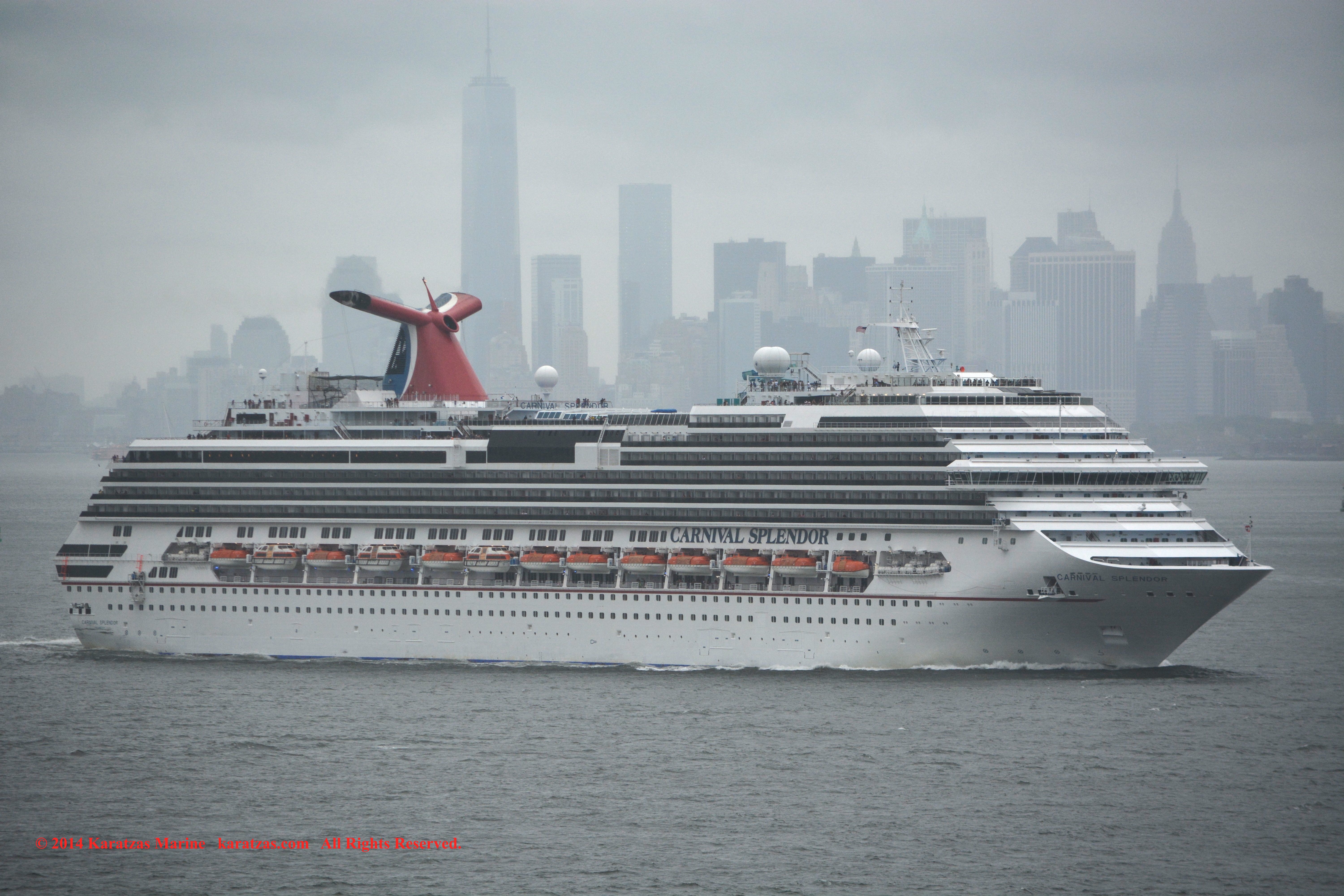 Cruiseship ‘Carnival Splendor’ departing New York on a rainy summer afternoon; Bon Voyage! karatzas.com