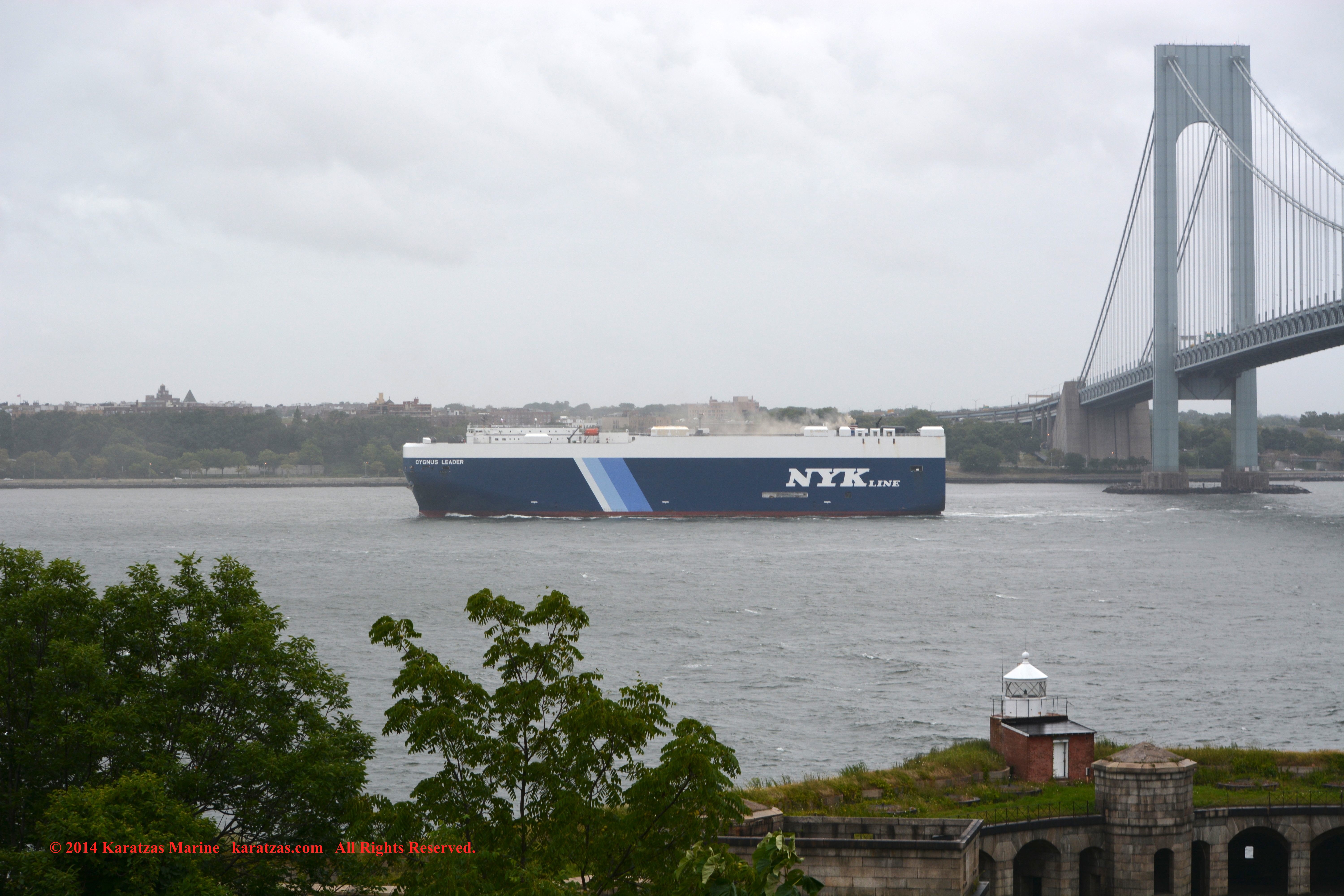 Car Carrier MV ‘Cygnus Leader’ arriving at New York Harbor on rainy summer afternoon. Verrazano-Narrows Bridge. karatzas.com
