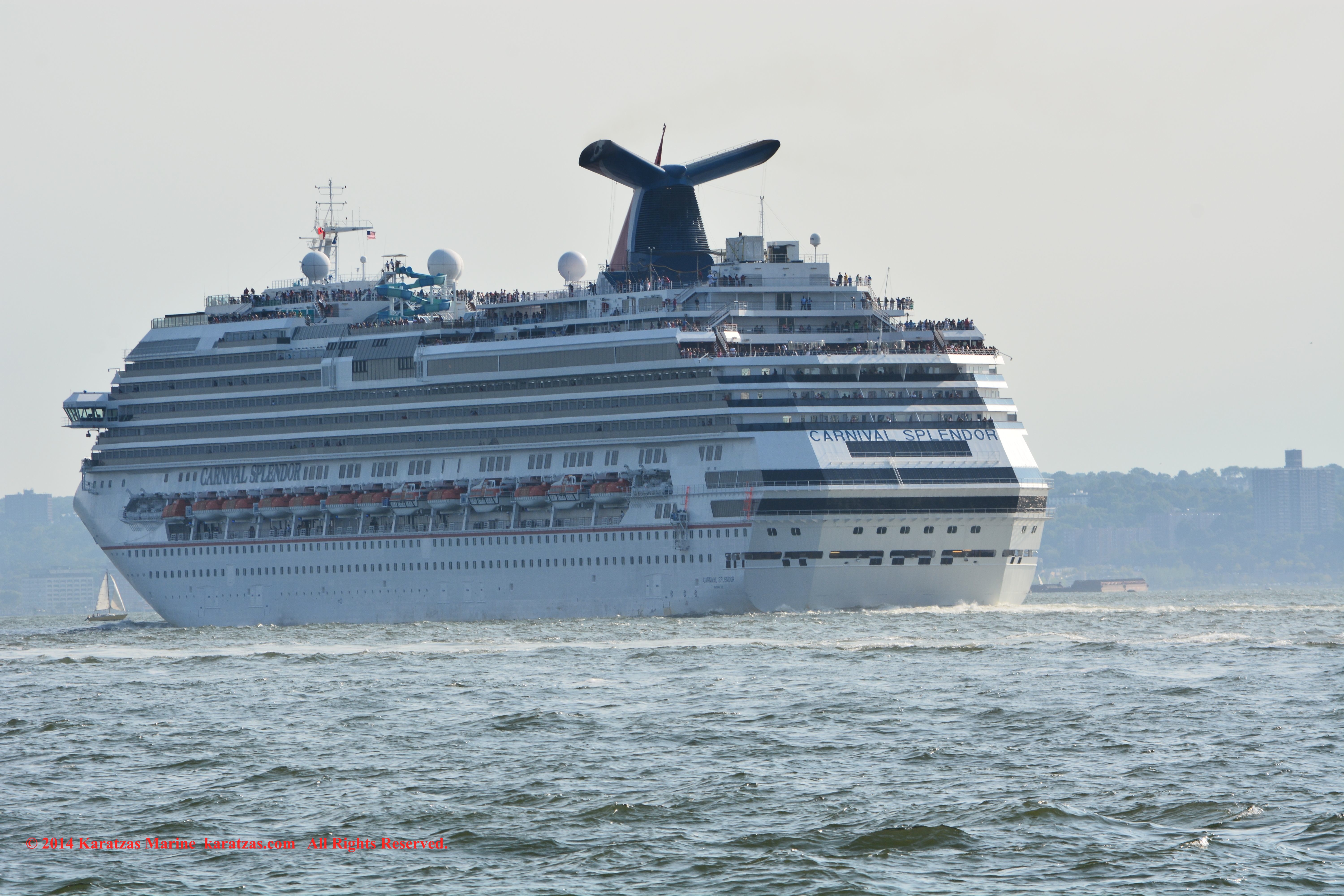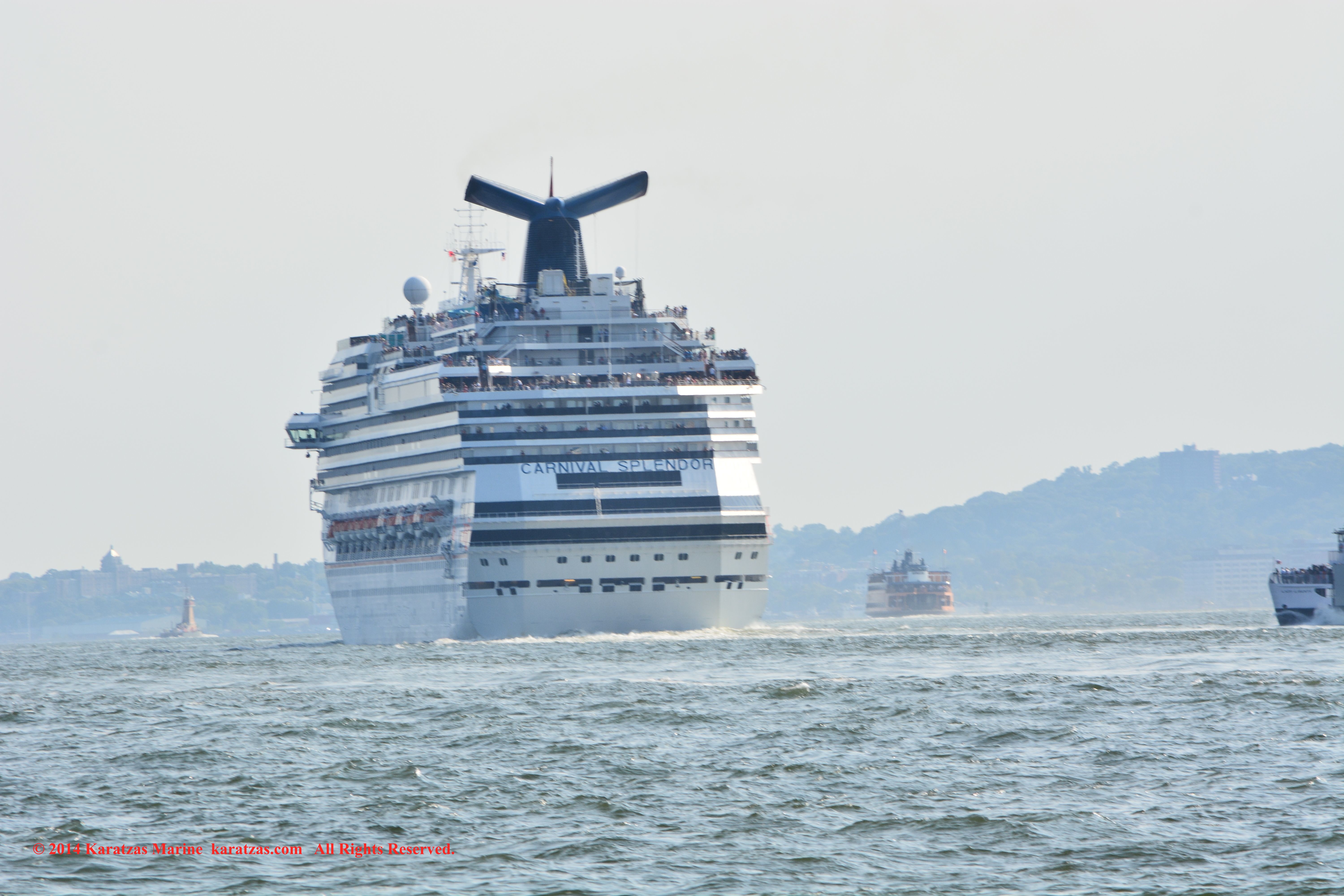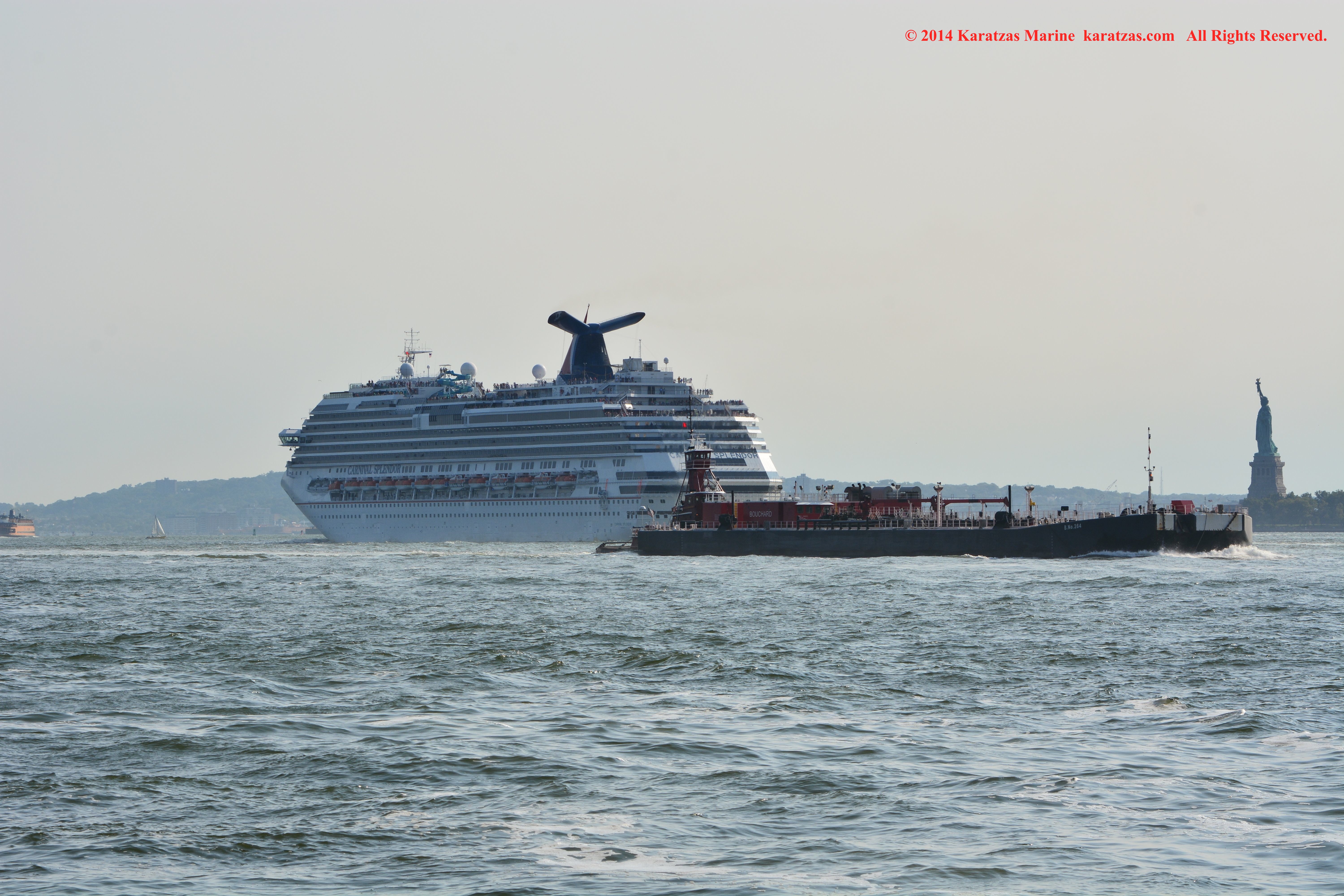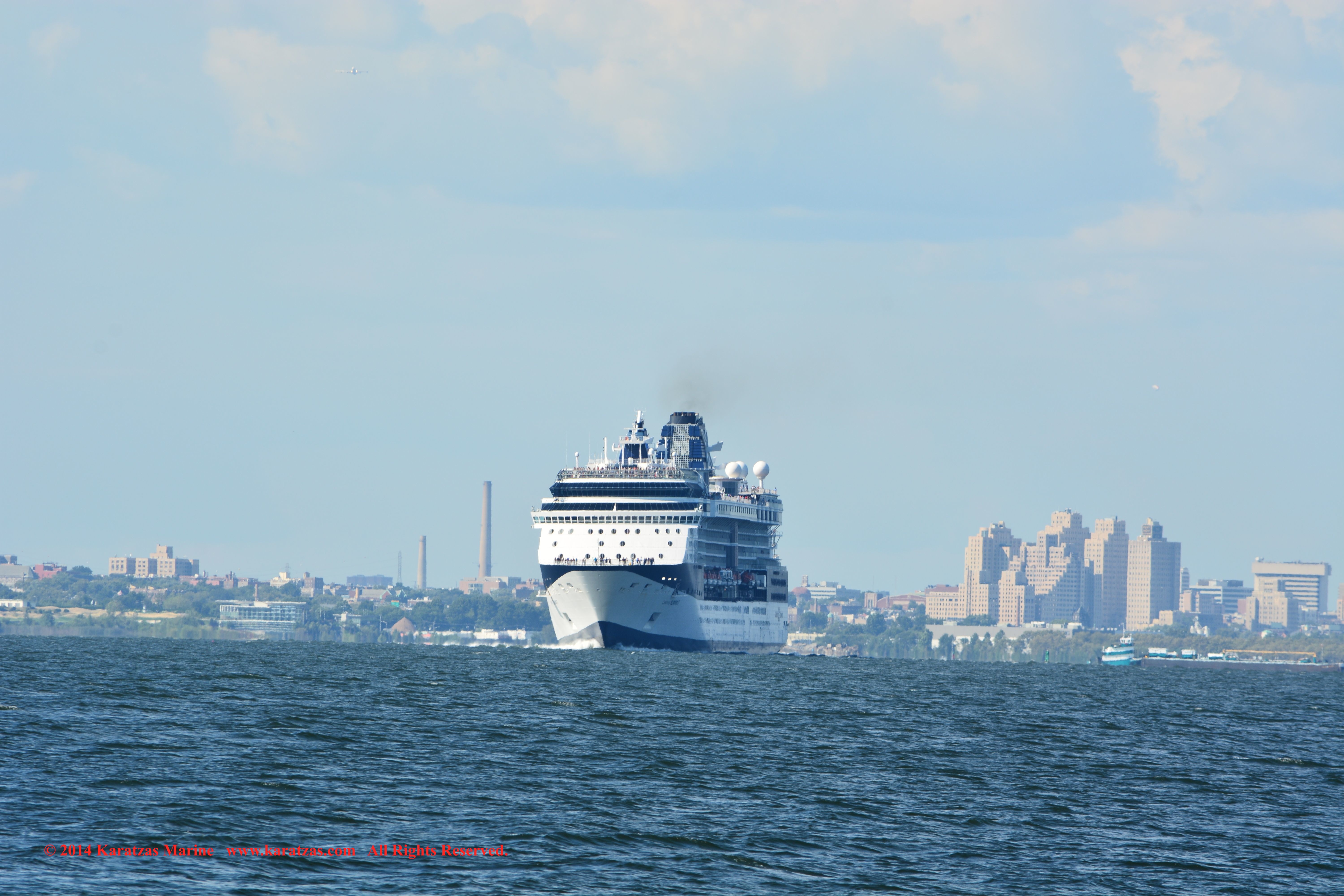U.S. Flag Containership MV ‘Sea-land Eagle’ (4,000 TEU, built at I.H.I. in 1997) arriving at New York Harbor on summer afternoon. Cruiseship MV ‘Celebrity Summit’ outbound. karatzas.com