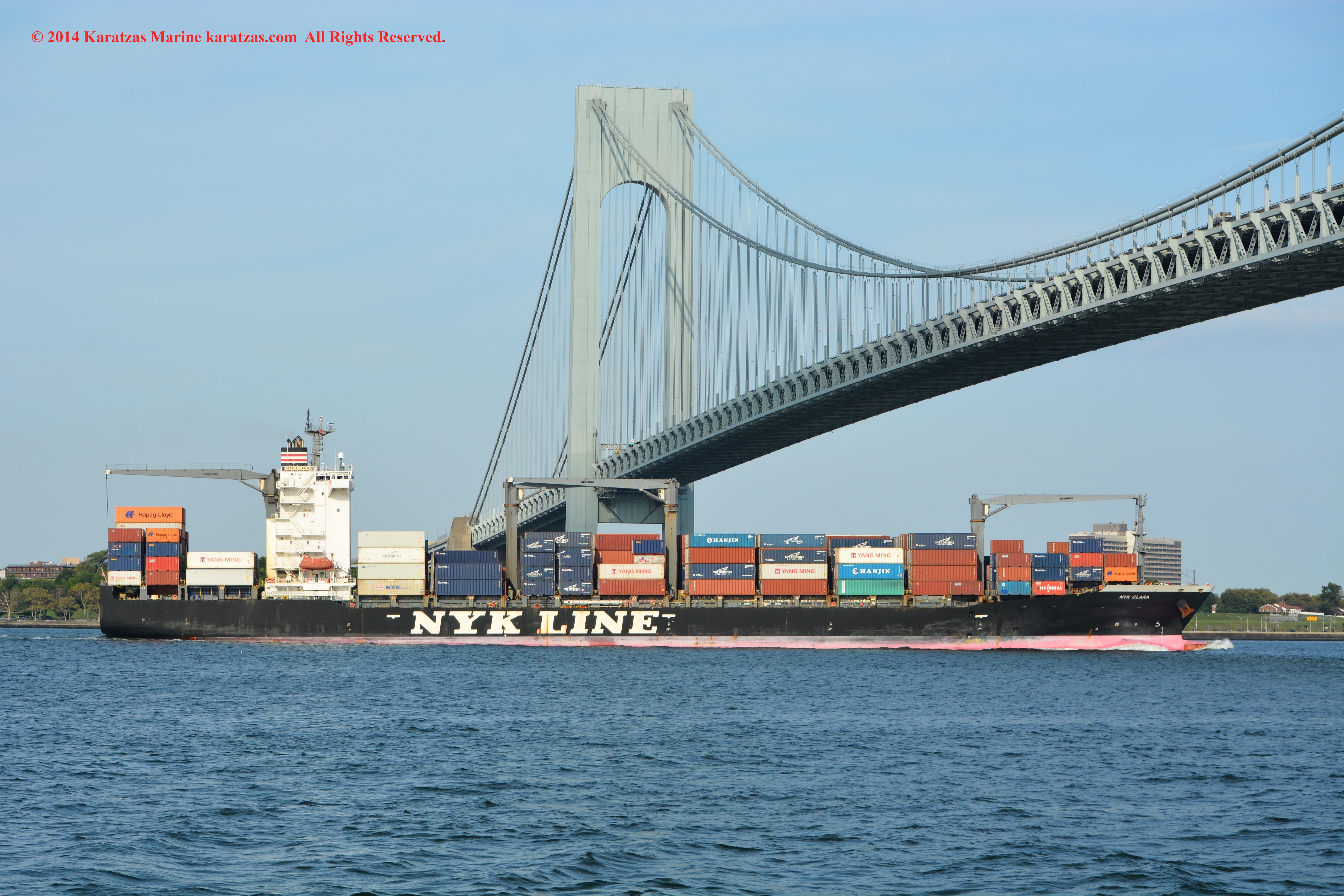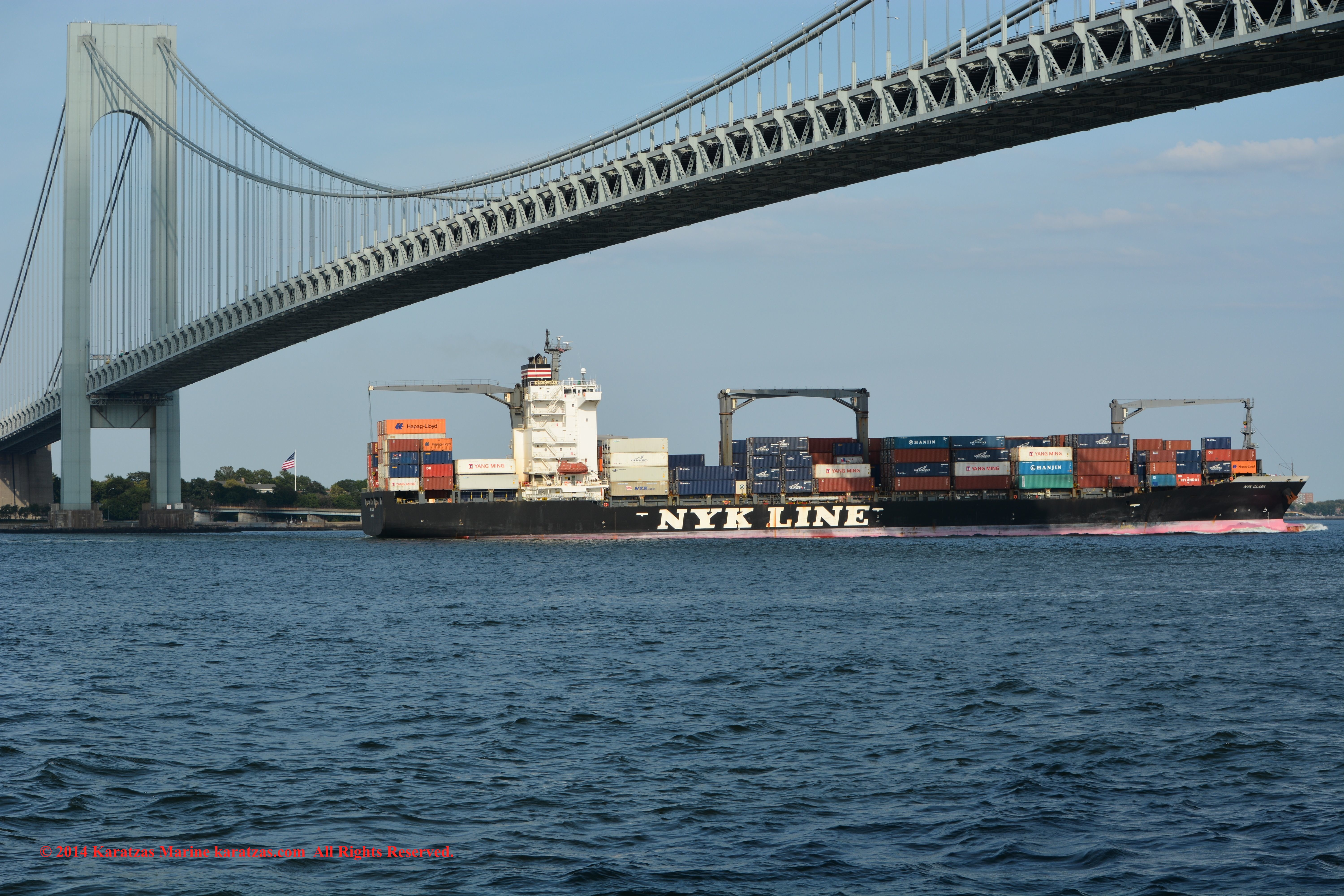 U.S. Flag Containership MV ‘Sea-land Eagle’ (4,000 TEU, built at I.H.I. in 1997) arriving at New York Harbor on summer afternoon. Under the Verrazano-Narrows Bridge. karatzas.com