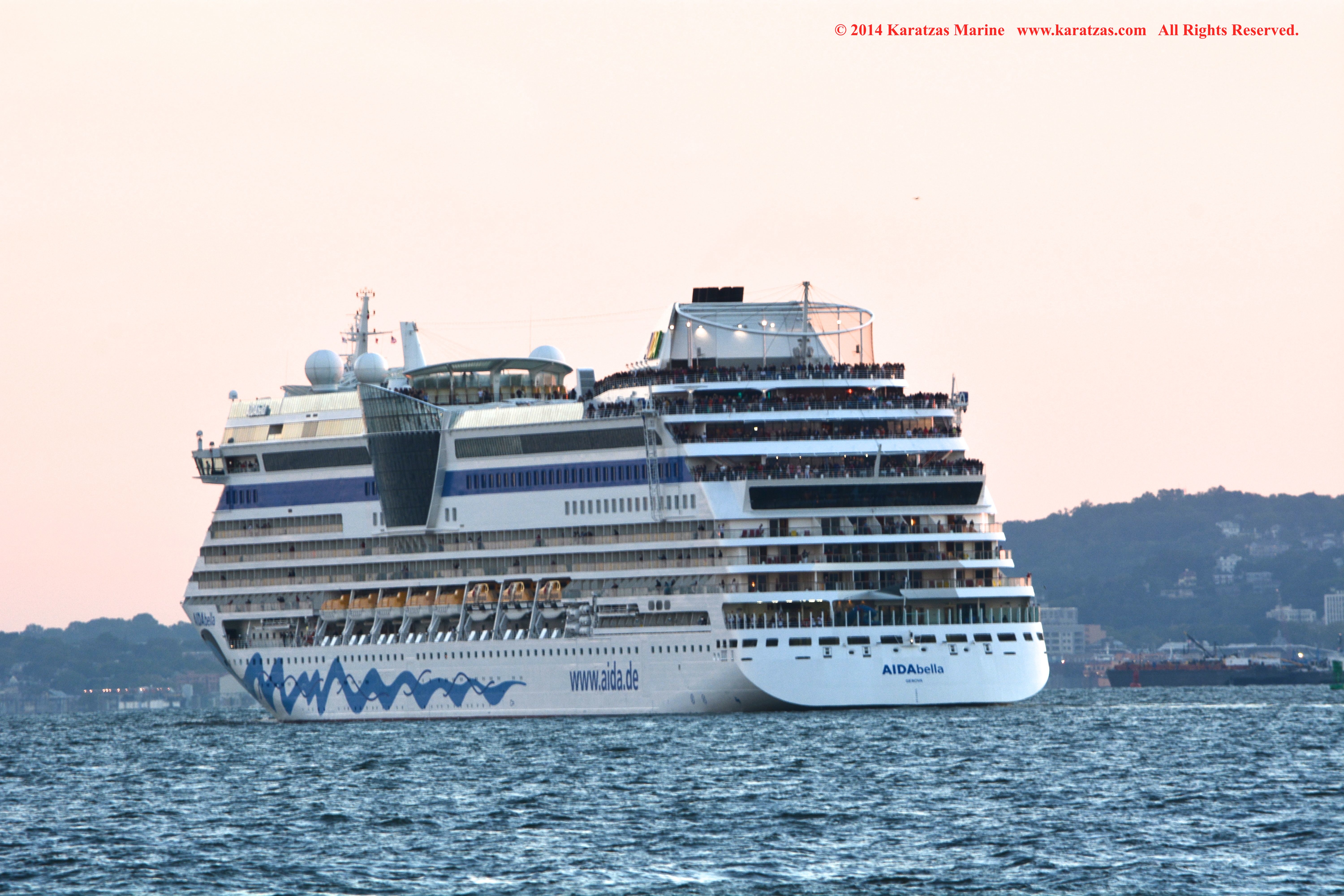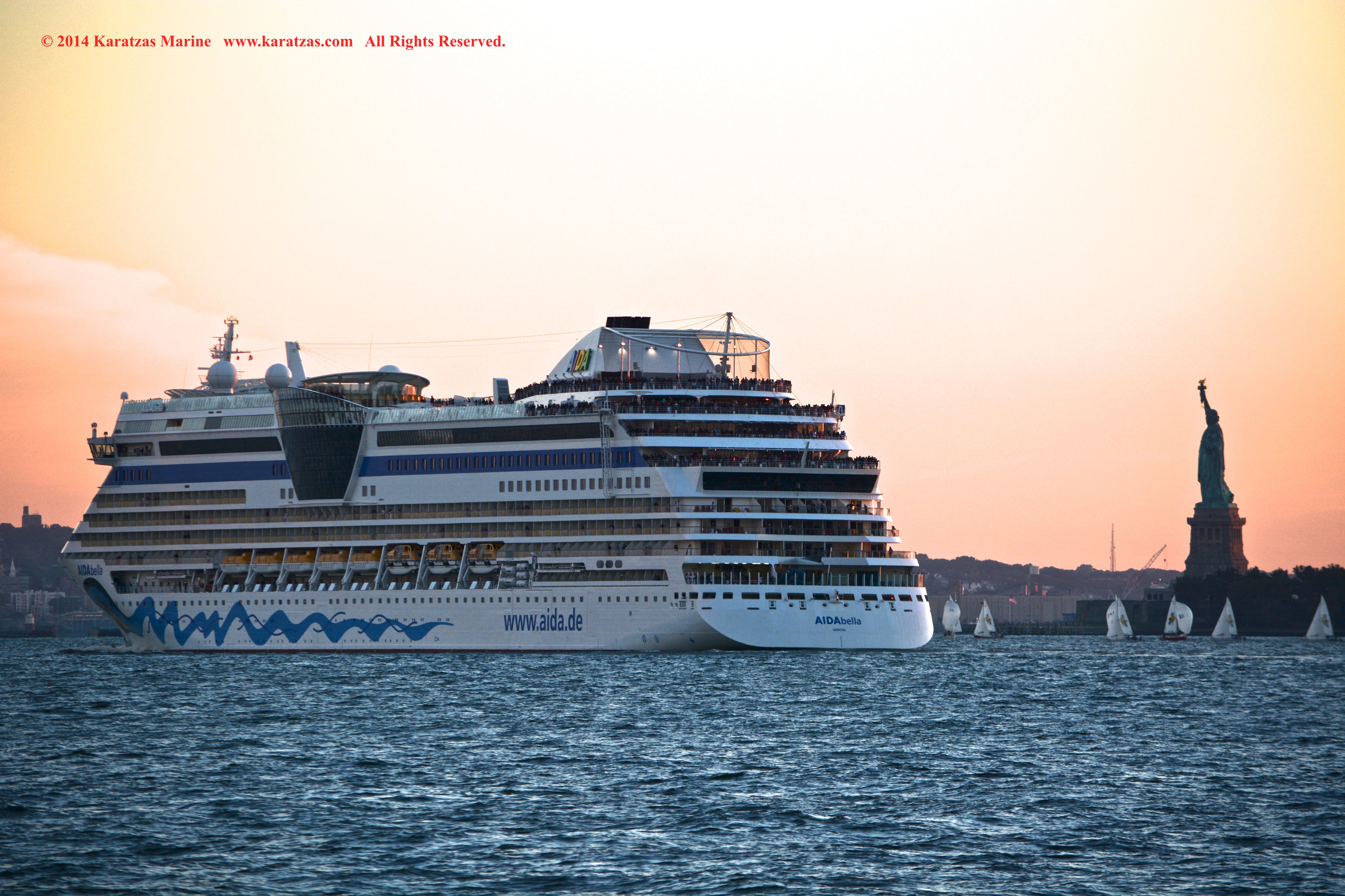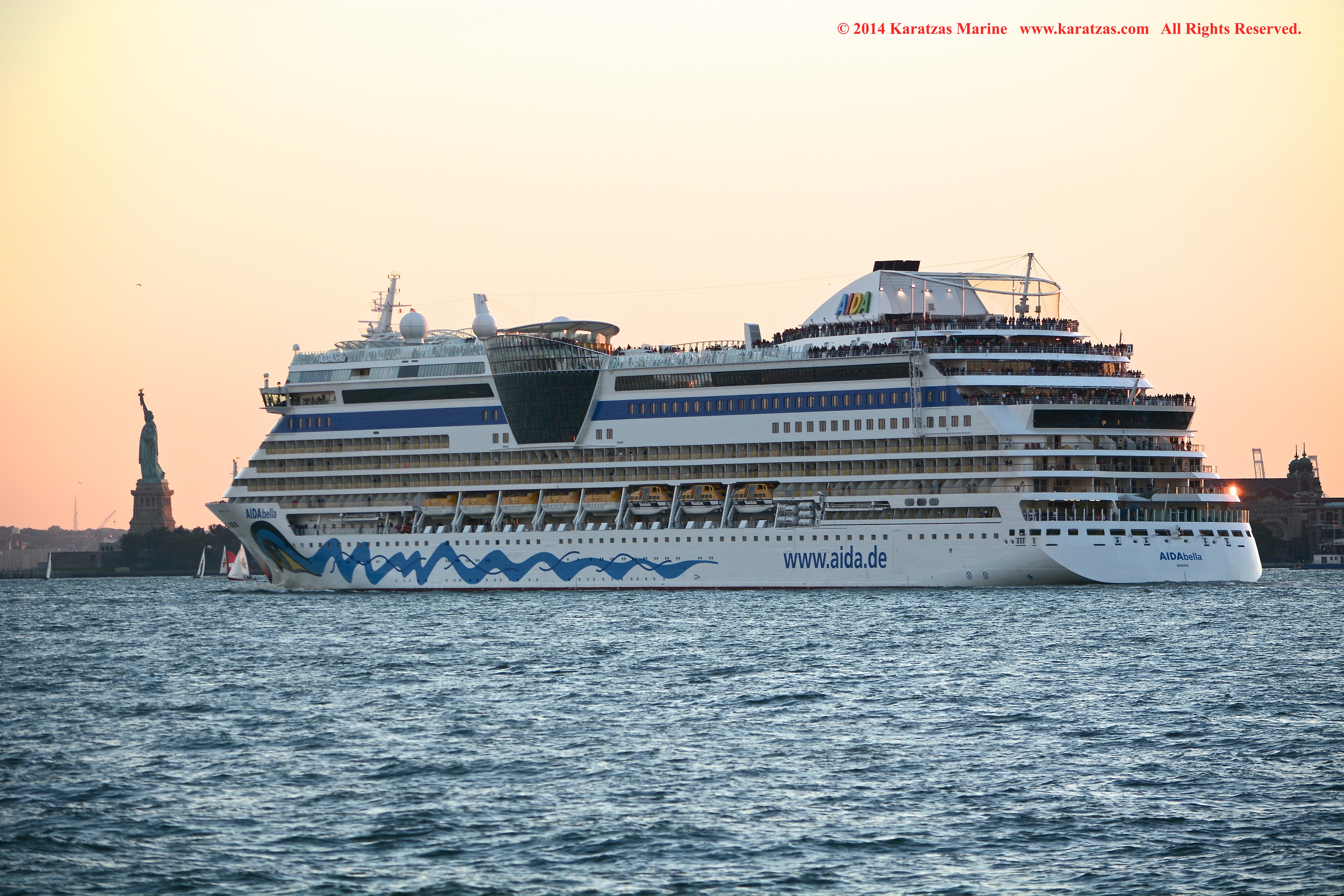 Cruiseship MV ‘AIDABella’ (2,300 berths, built in 20o8 at Meyer Werft in Germany) departing New York on sunny fall afternoon. http://www.karatzas.com