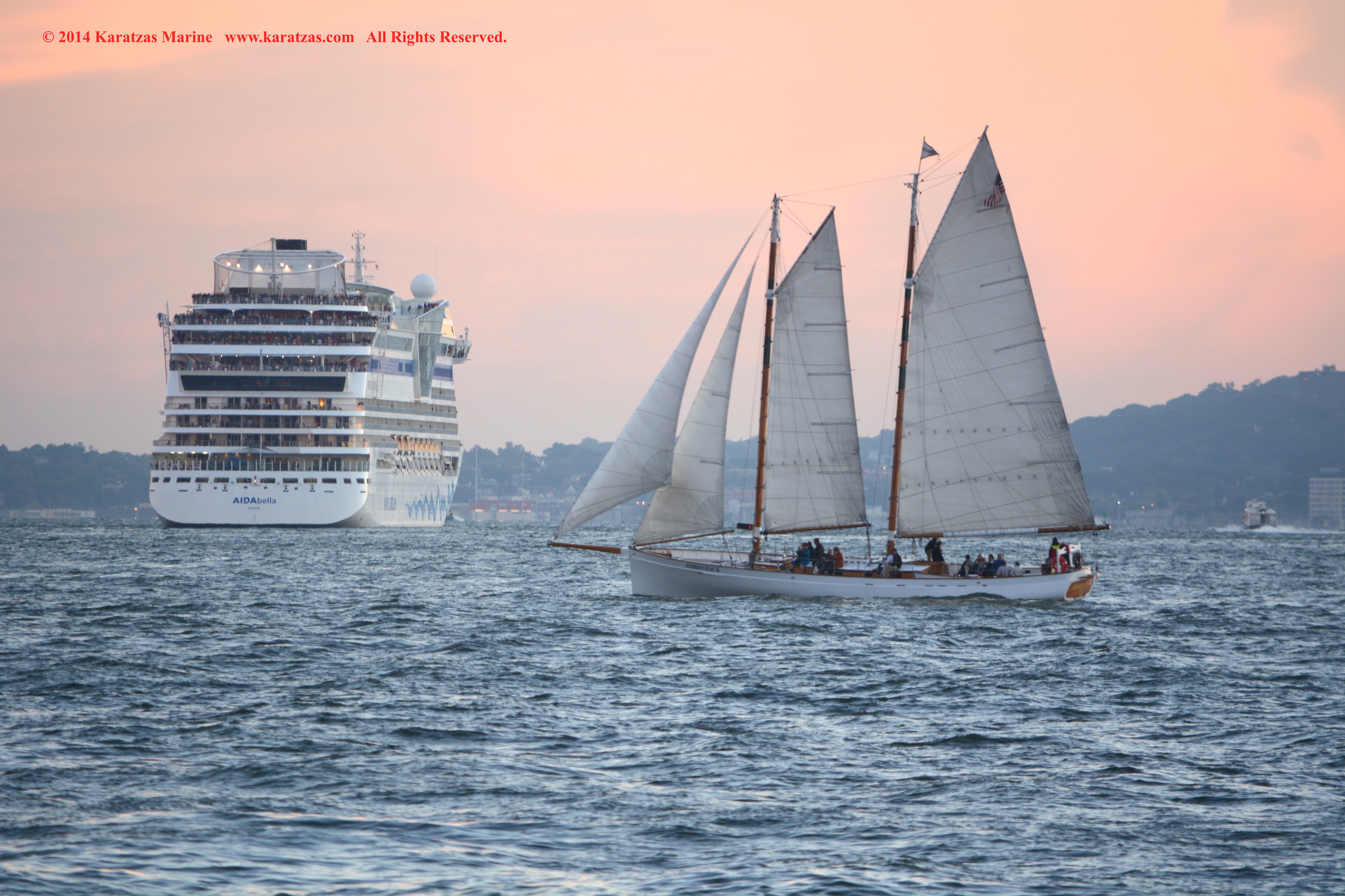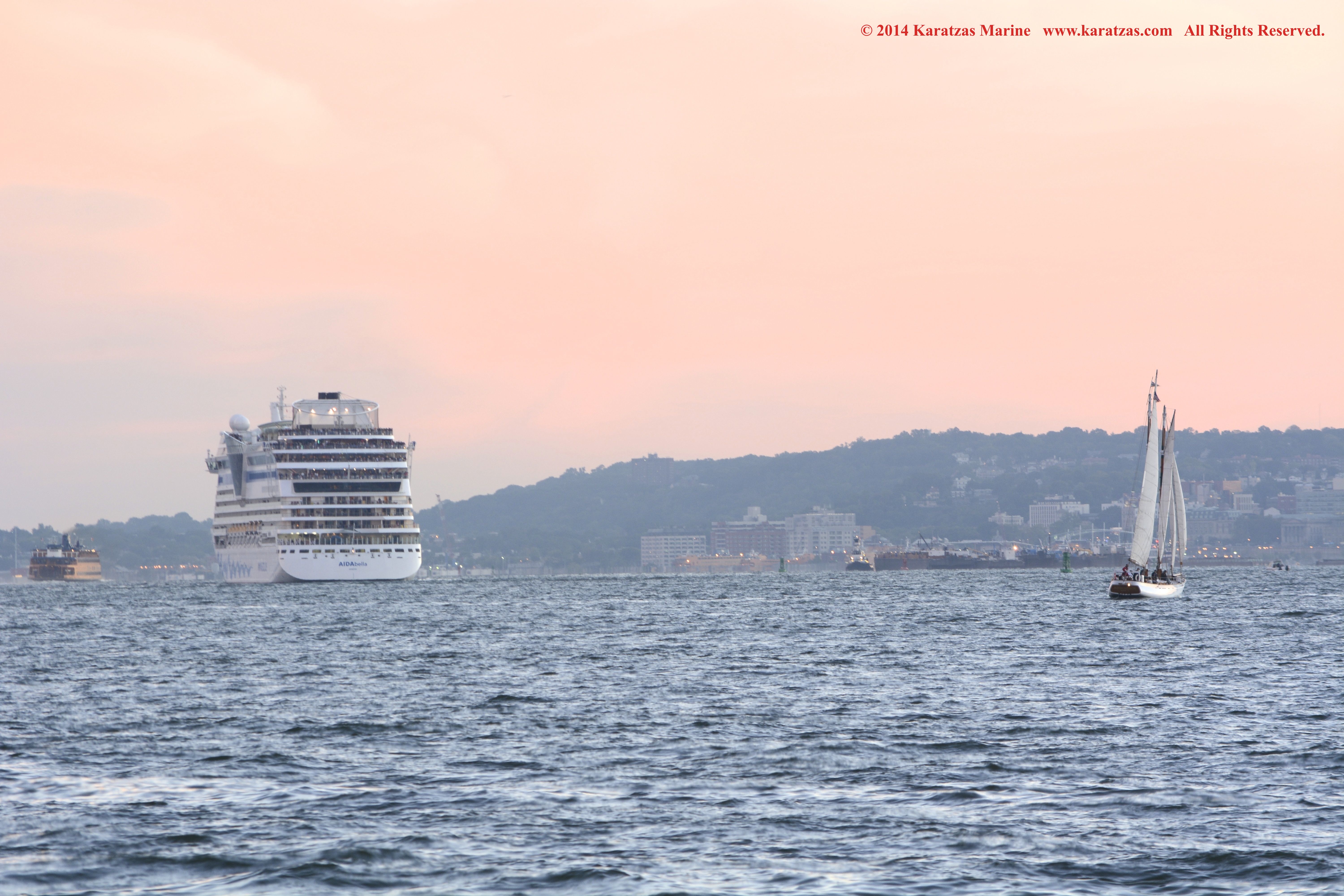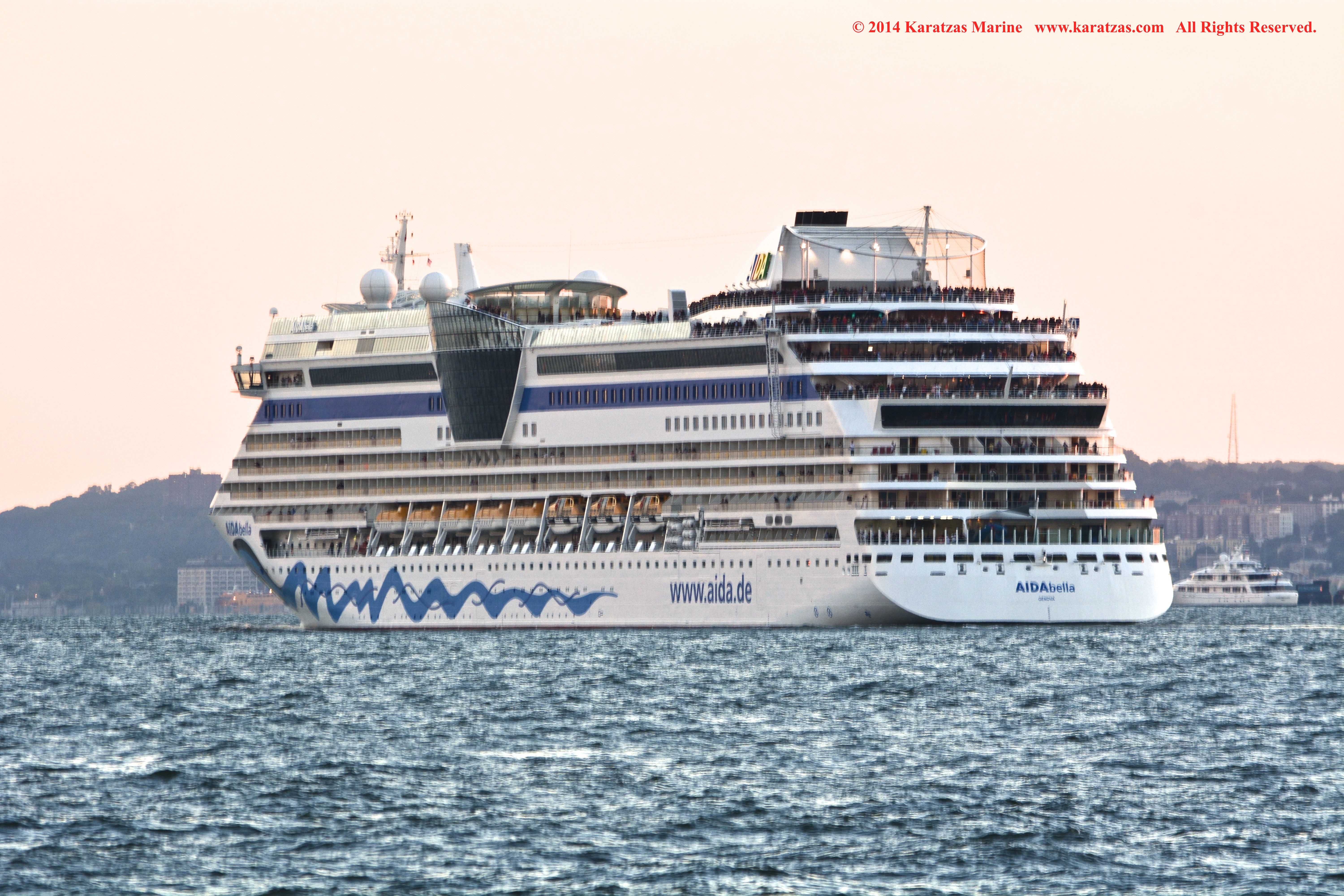 Cruiseship MV ‘AIDABella’ (2,300 berths, built in 20o8 at Meyer Werft in Germany) departing New York on sunny fall afternoon. http://www.karatzas.com