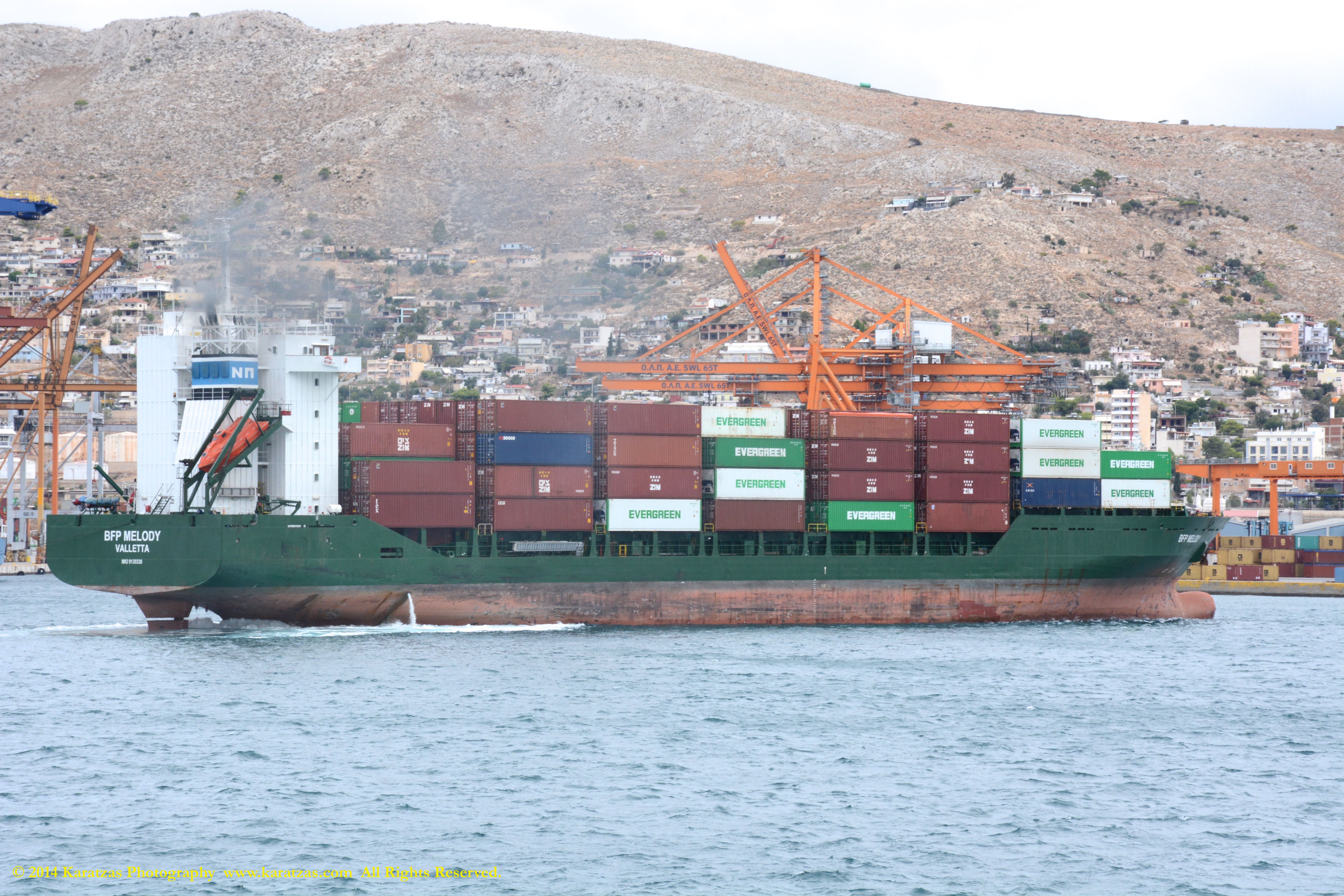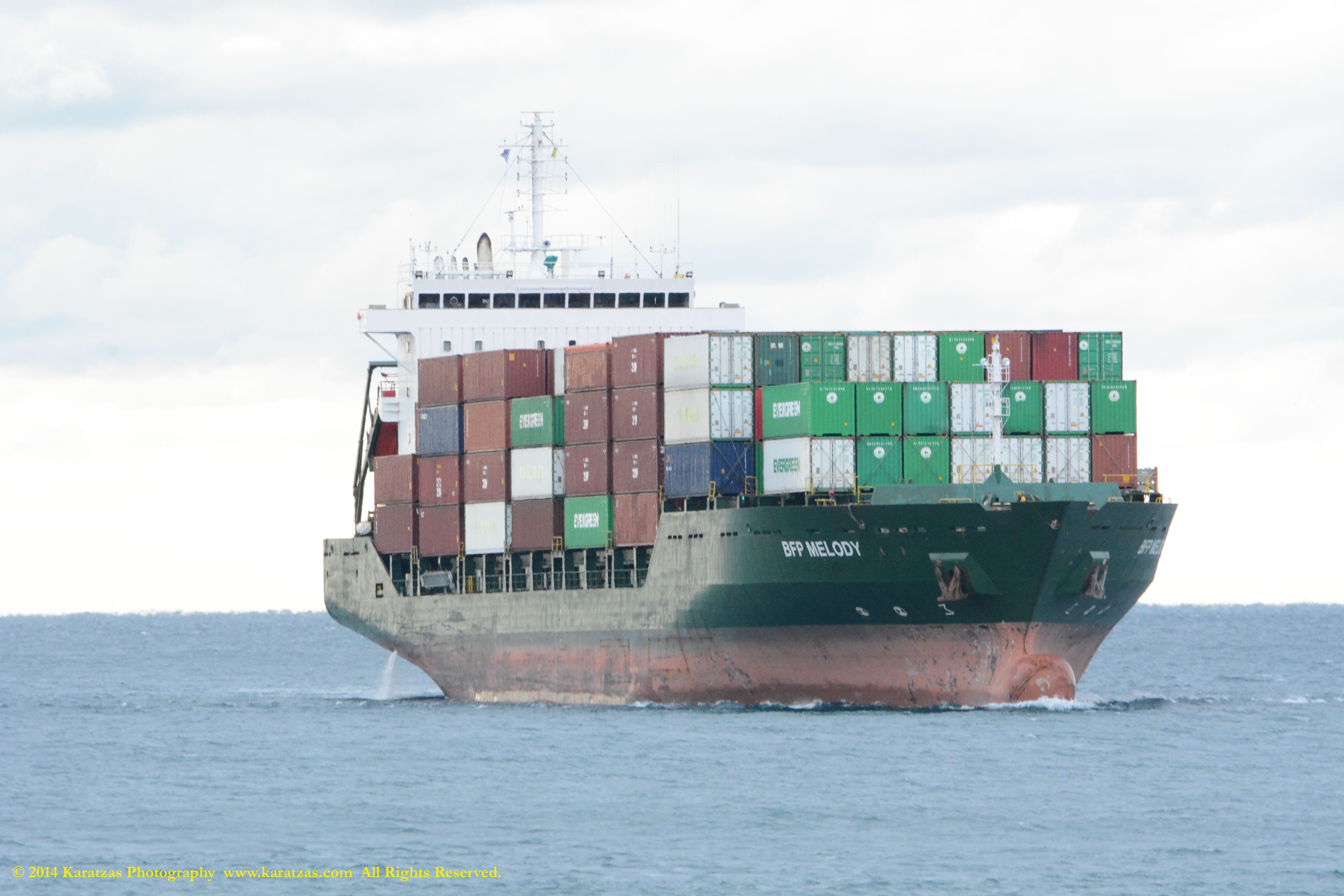 Feedermax Containership ‘BFP Melody’ (980-TEU, built in 1998 at Astillero Barreras, Spain) entering Port of Piraeus. Not many commercial ships have been built in Spain, which makes the vessel a rare view! Sixty-three vessels were built from this builder! http://www.karatzas.com