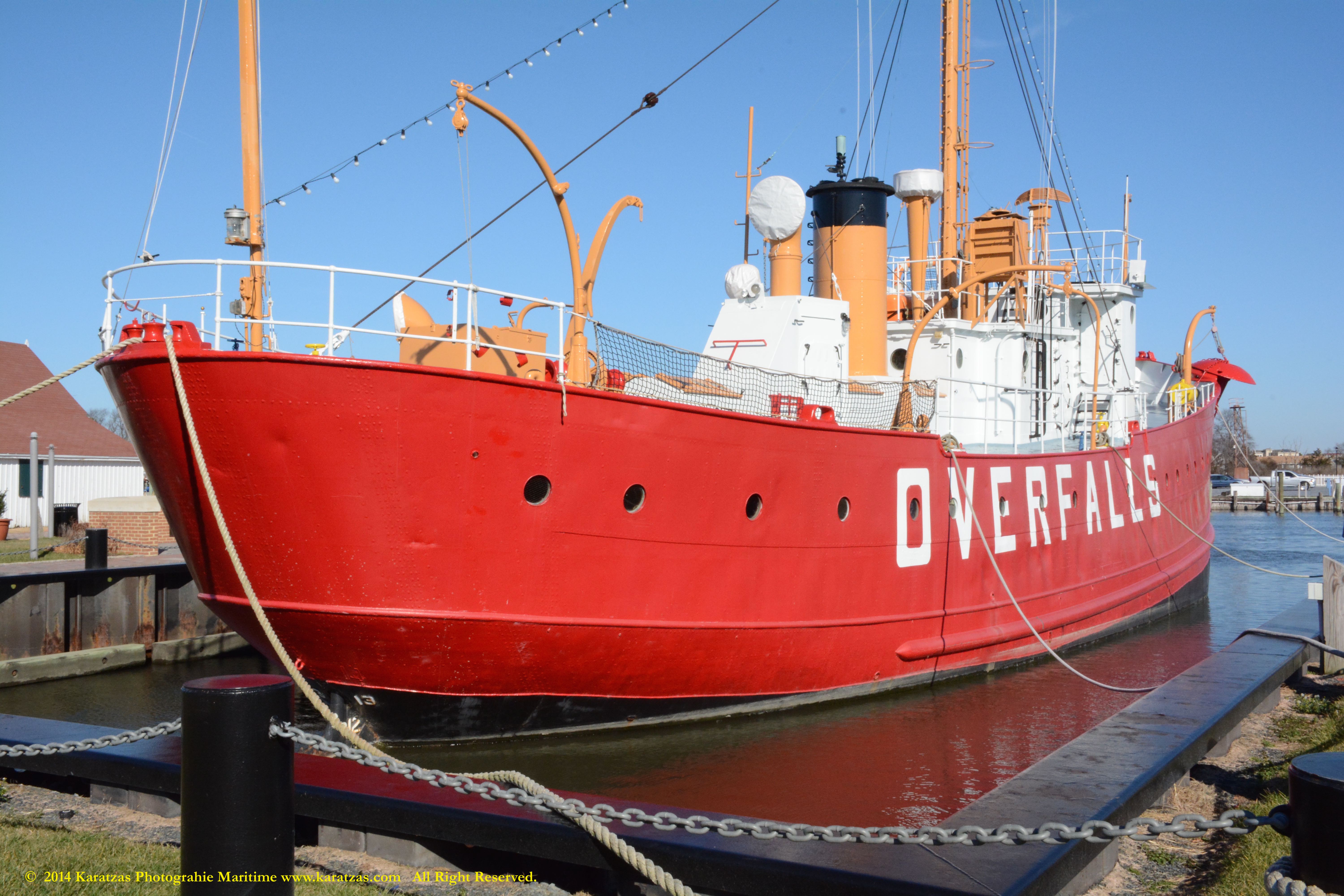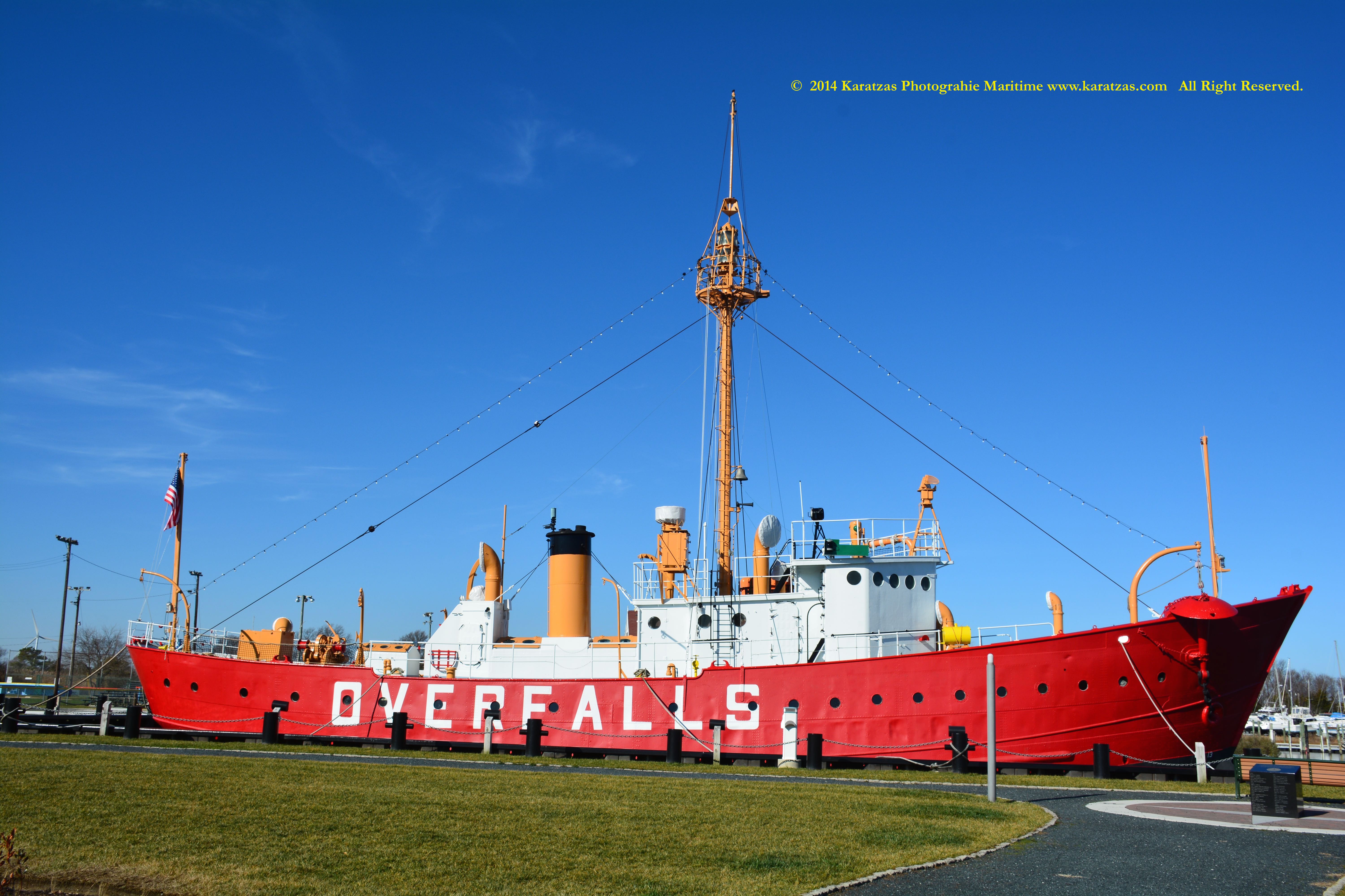 The last lightship to be built by the pioneering U.S. Lighthouse Service (USLHS) in 1938, today ‘Overfalls’ is one of the last surviving floating lighthouses serving as a museum ship and open to the public. Designated as a National Historic Landmark, she’s located in Lewes, Delaware. http://www.karatzas.com