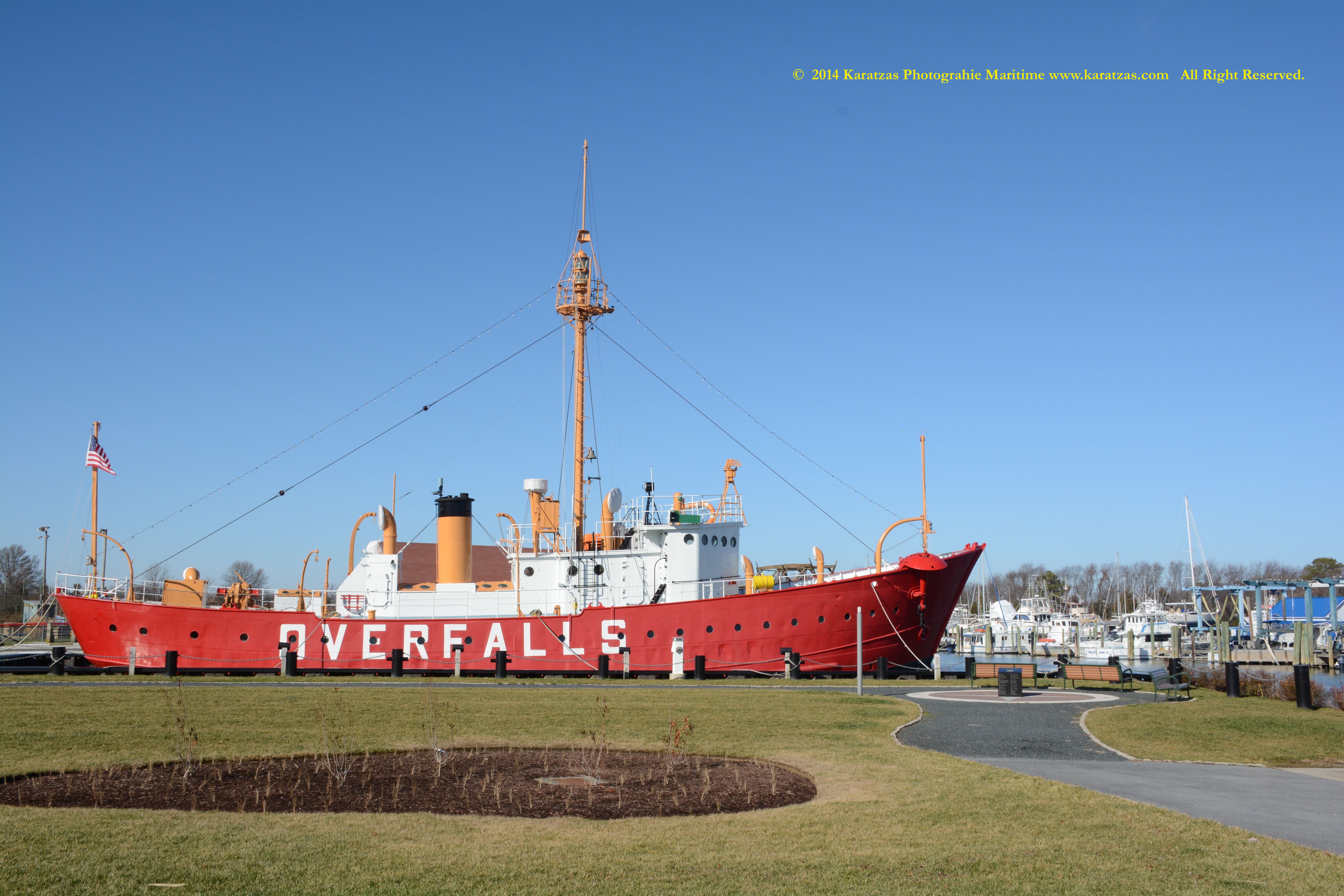 MODERN HISTORY In 1973, the Coast Guard donated the ship to the Lewes Historical Society (LHS) to serve as a floating museum in Lewes, Delaware. LHS brought her to her current location on the canal in downtown Lewes and painted on a new station name, OVERFALLS, in honor of the lightship station closest to Lewes, in the mouth of Delaware Bay where lightships had served as a mid-channel marker from 1898 to 1960 when the station was discontinued.