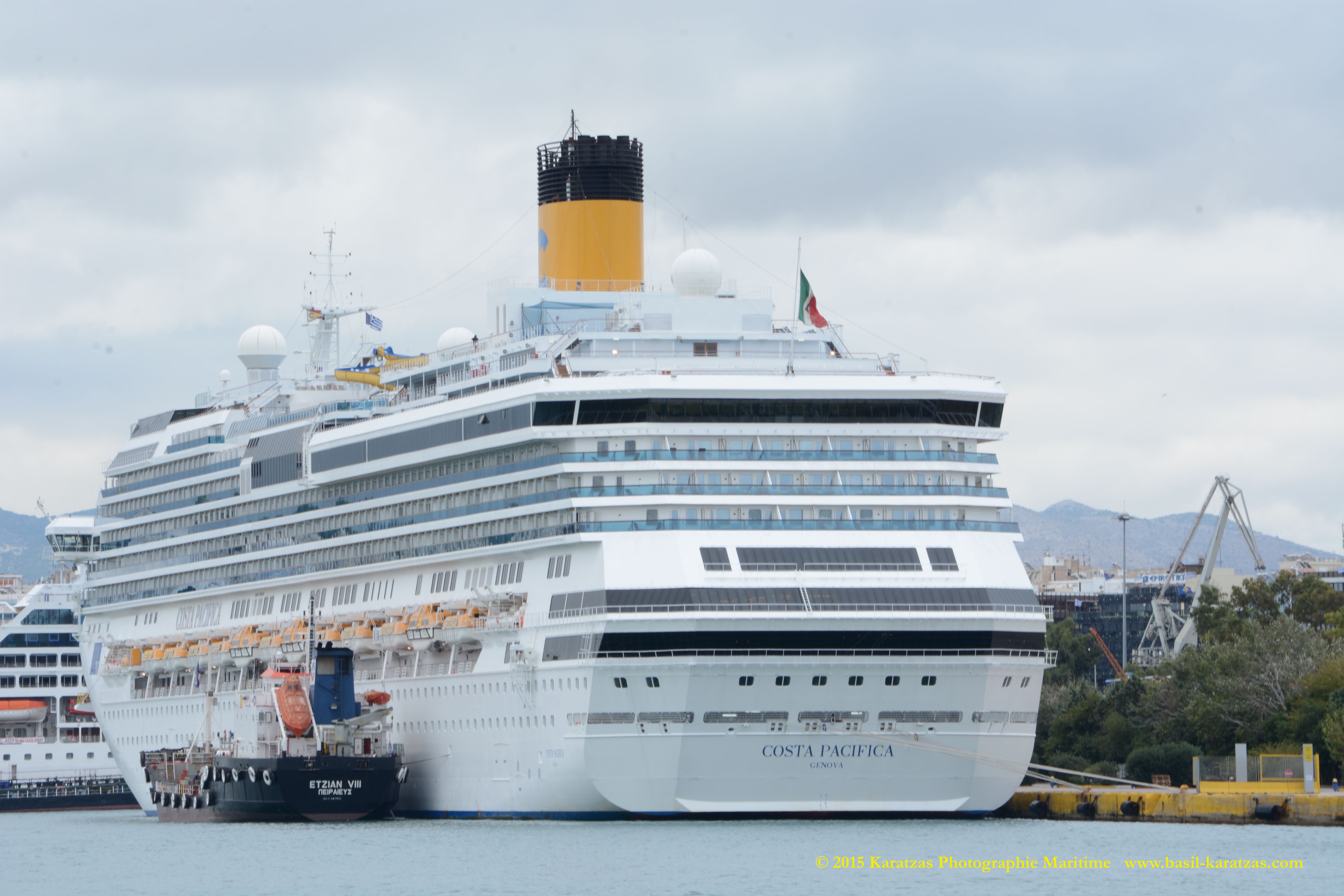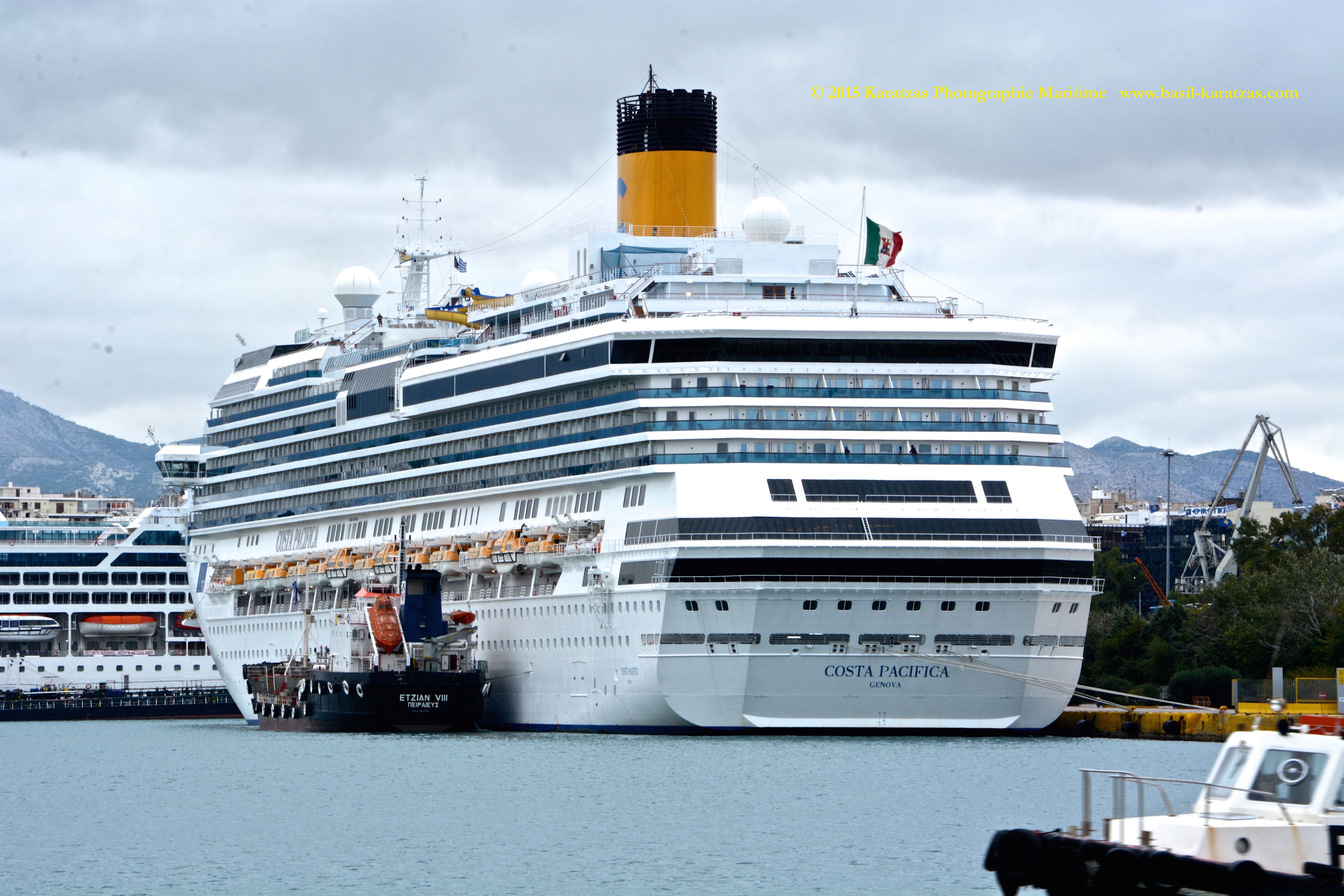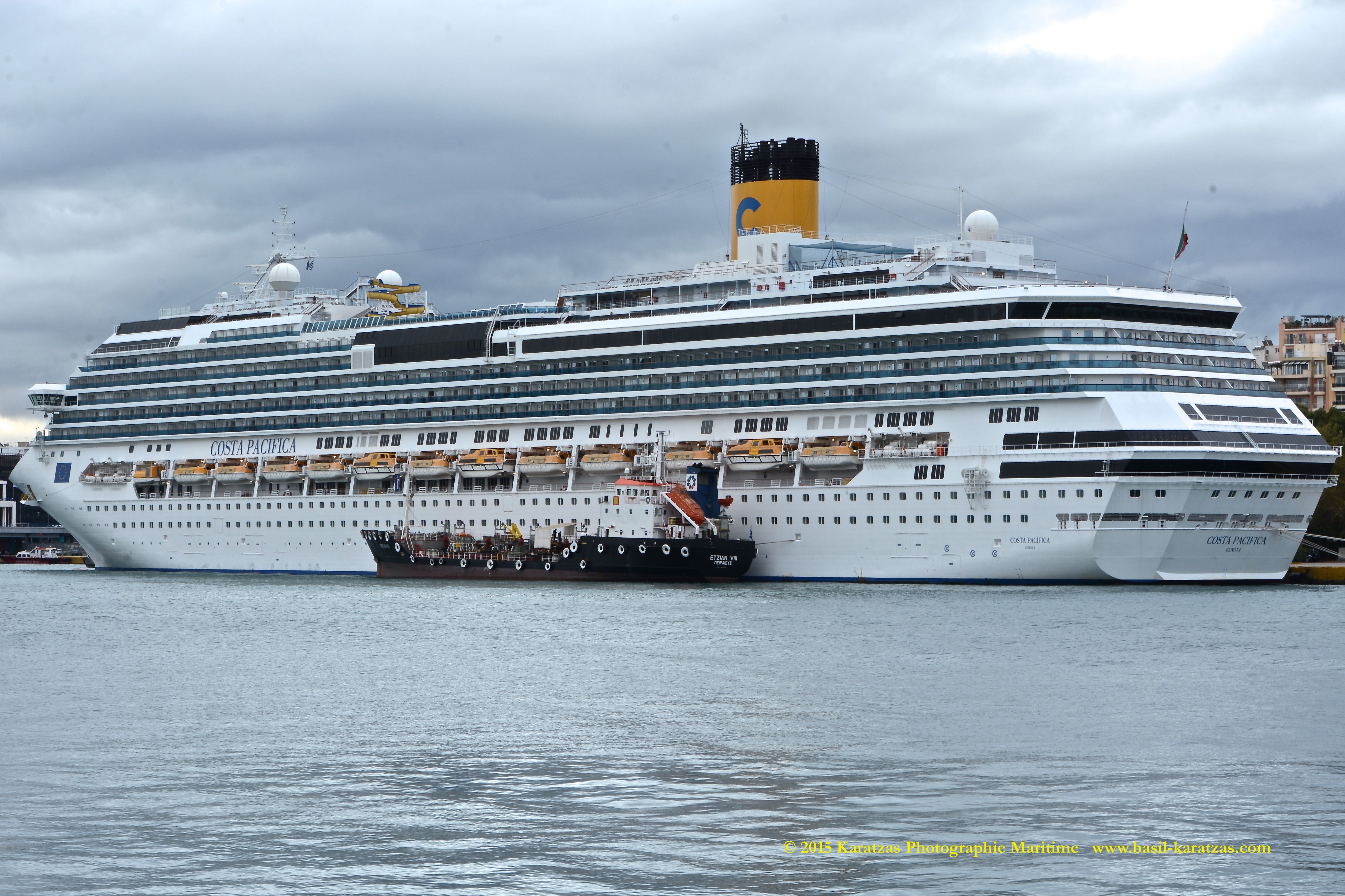 Built in 2009 by Fincantieri, 3,800-berth cruiseship ‘Costa Pacifica’ in Port of Piraeus in October 2014. Karatzas Photographie Maritime