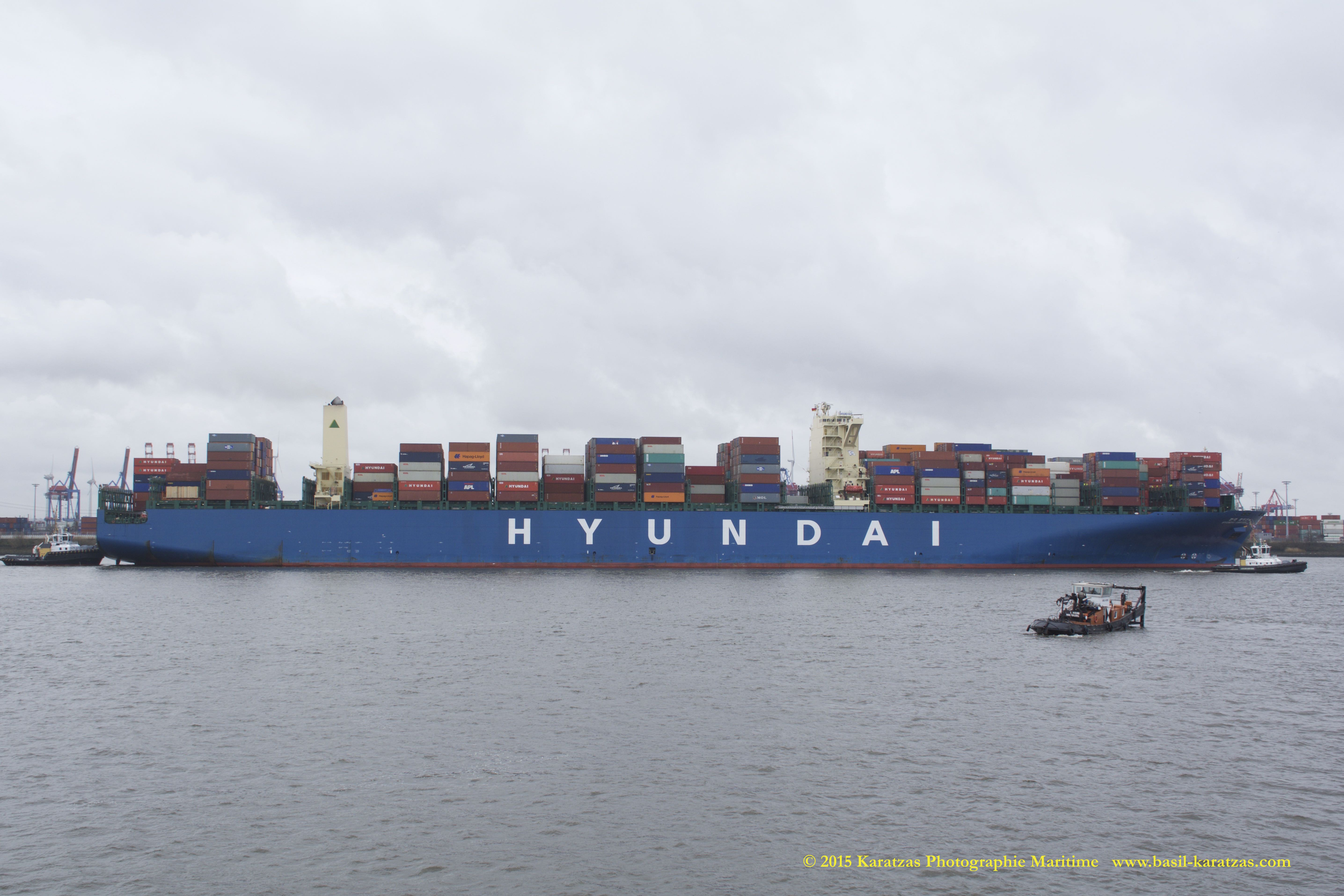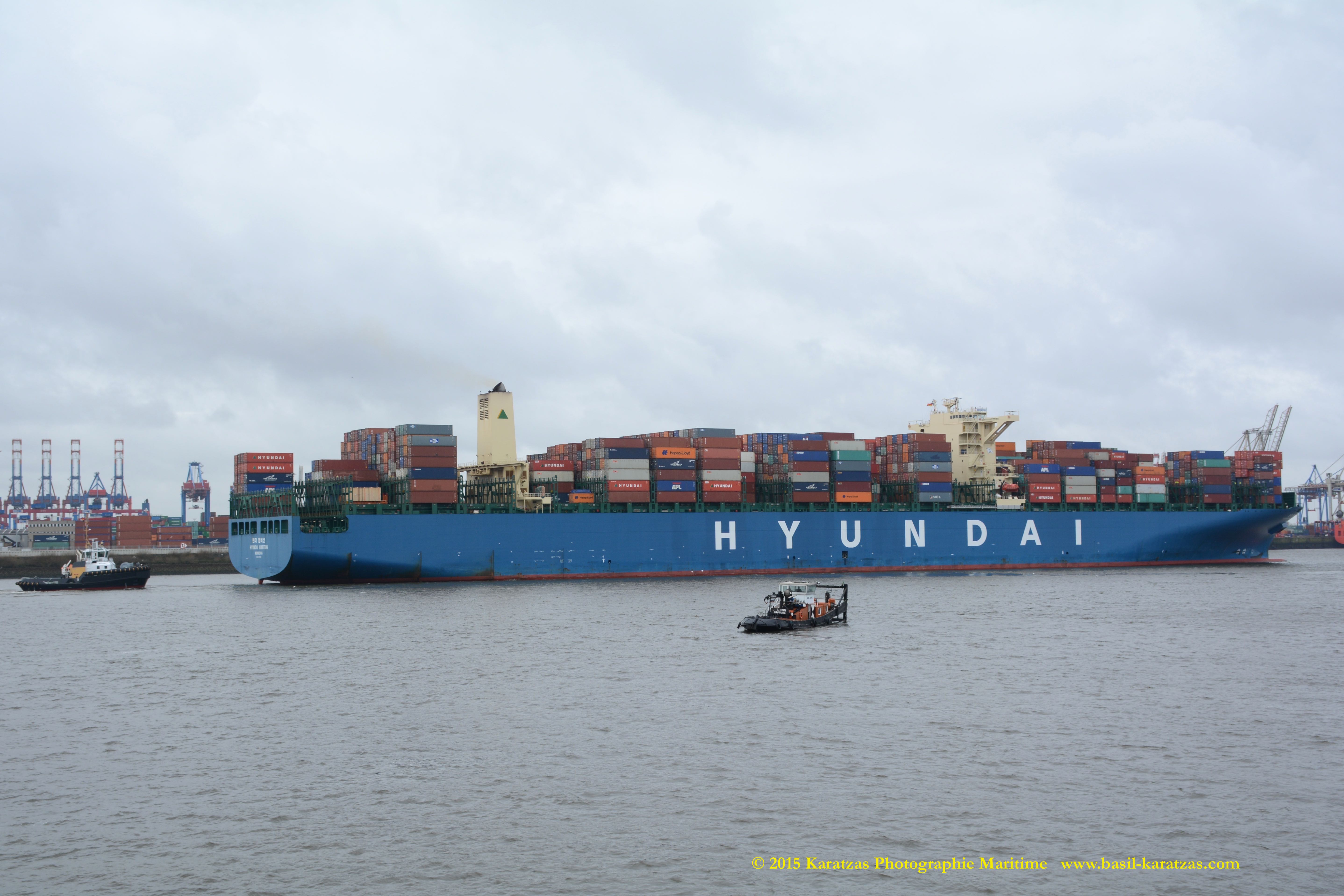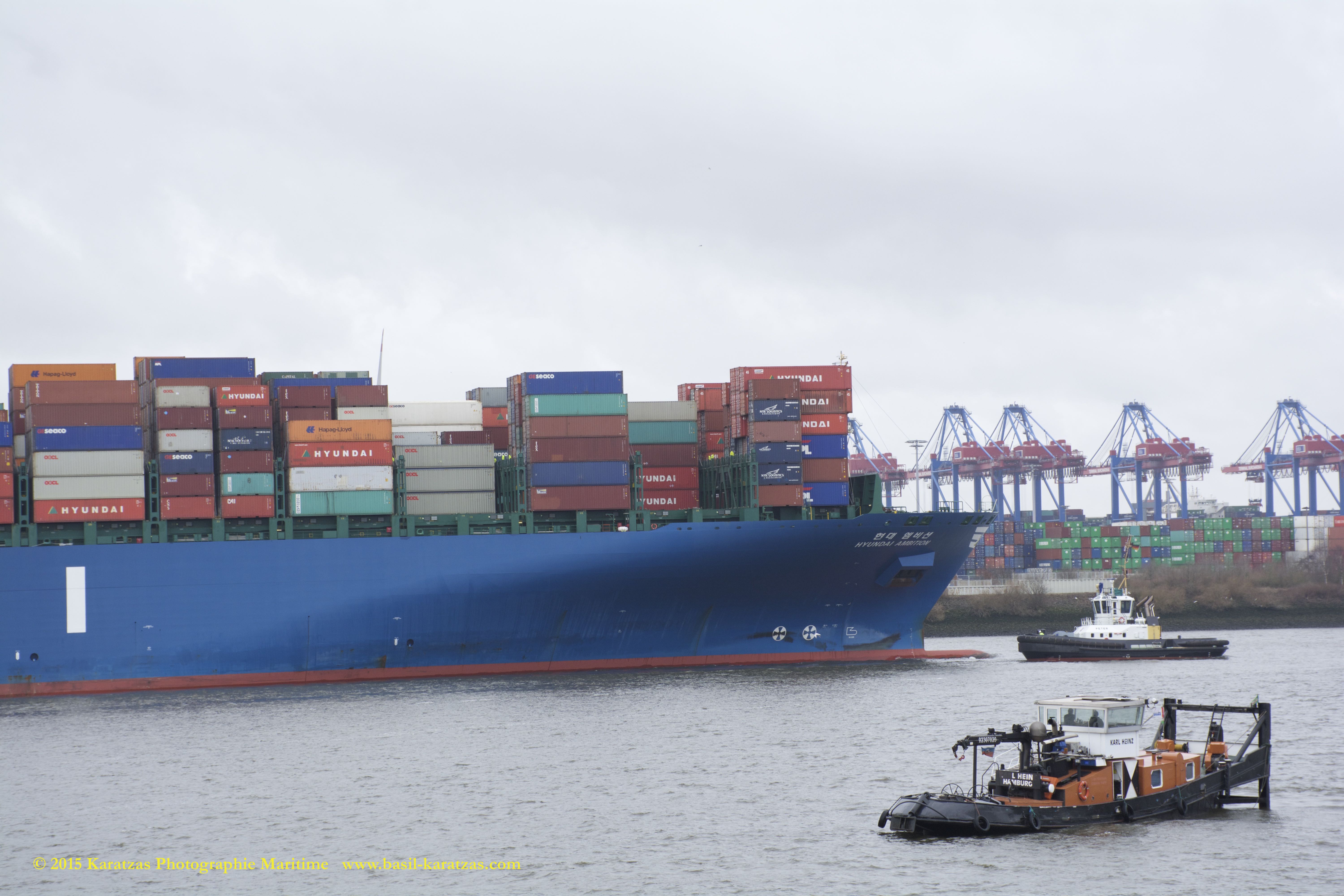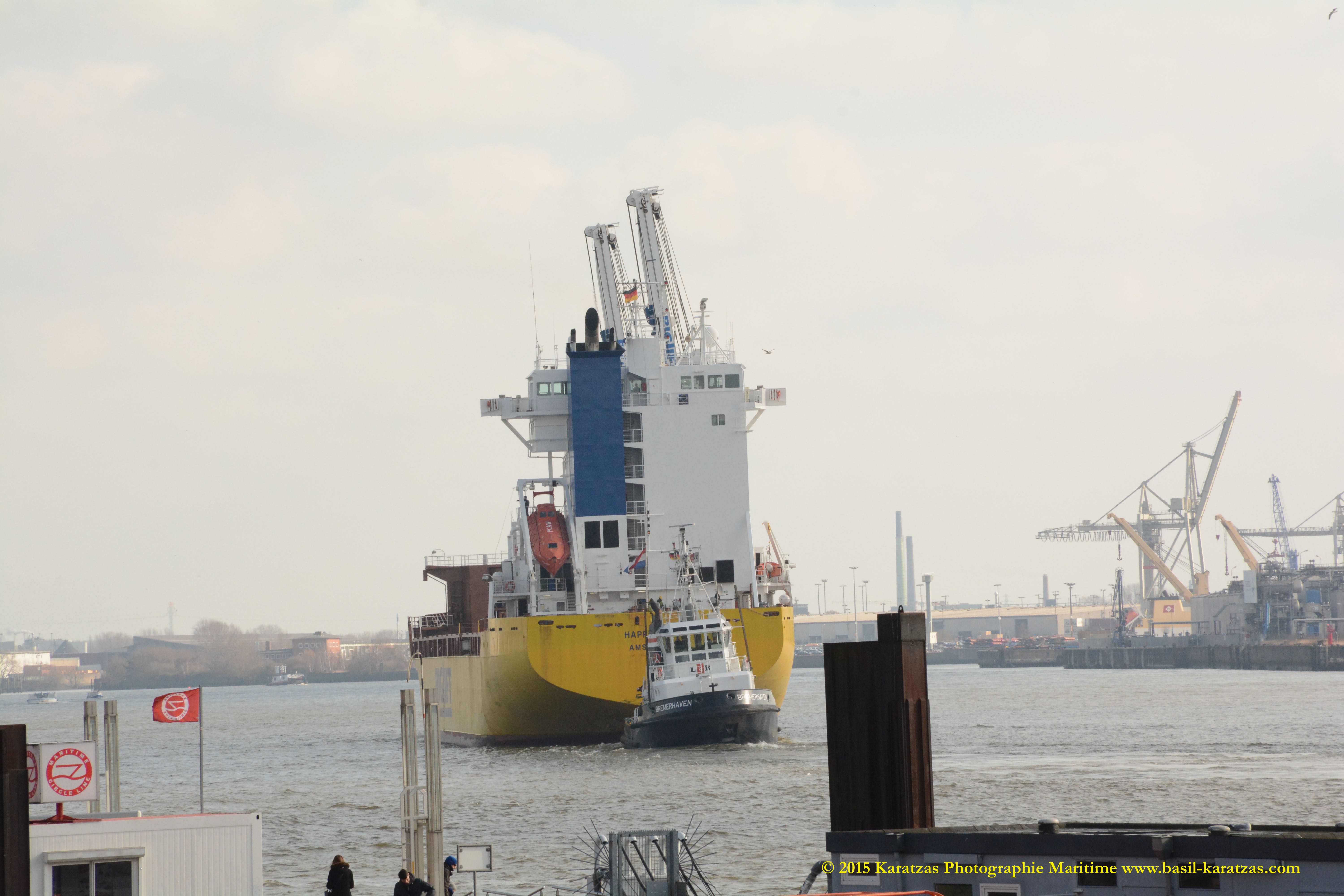 Brightly painted heavylift vessel MV ‘Happy River’ (16,000 dwt, 2x400T cranes, 1997, built at De Merwede, The Netherlands) calling the Port of Hamburg in March 2015. http://www.karatzas.com