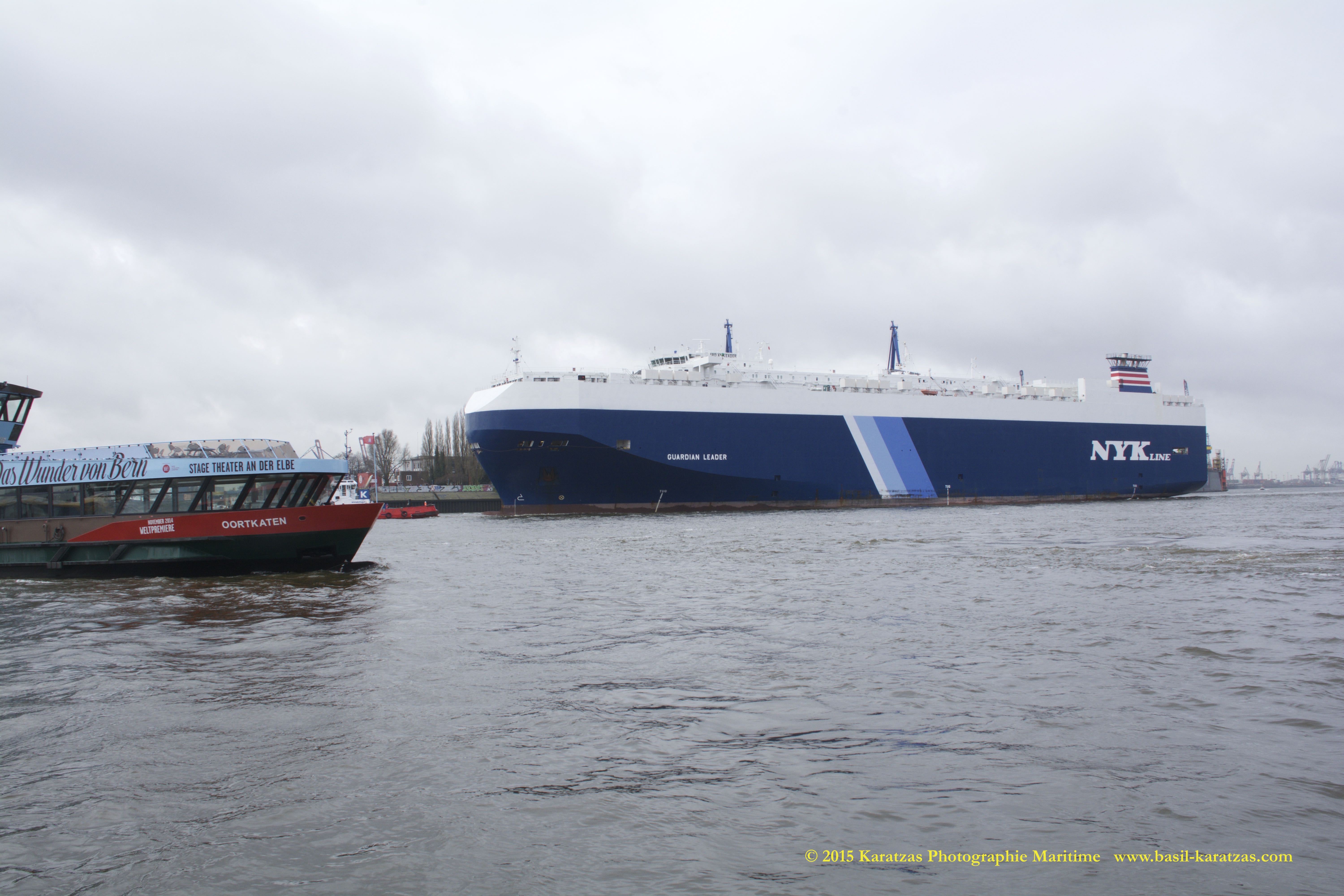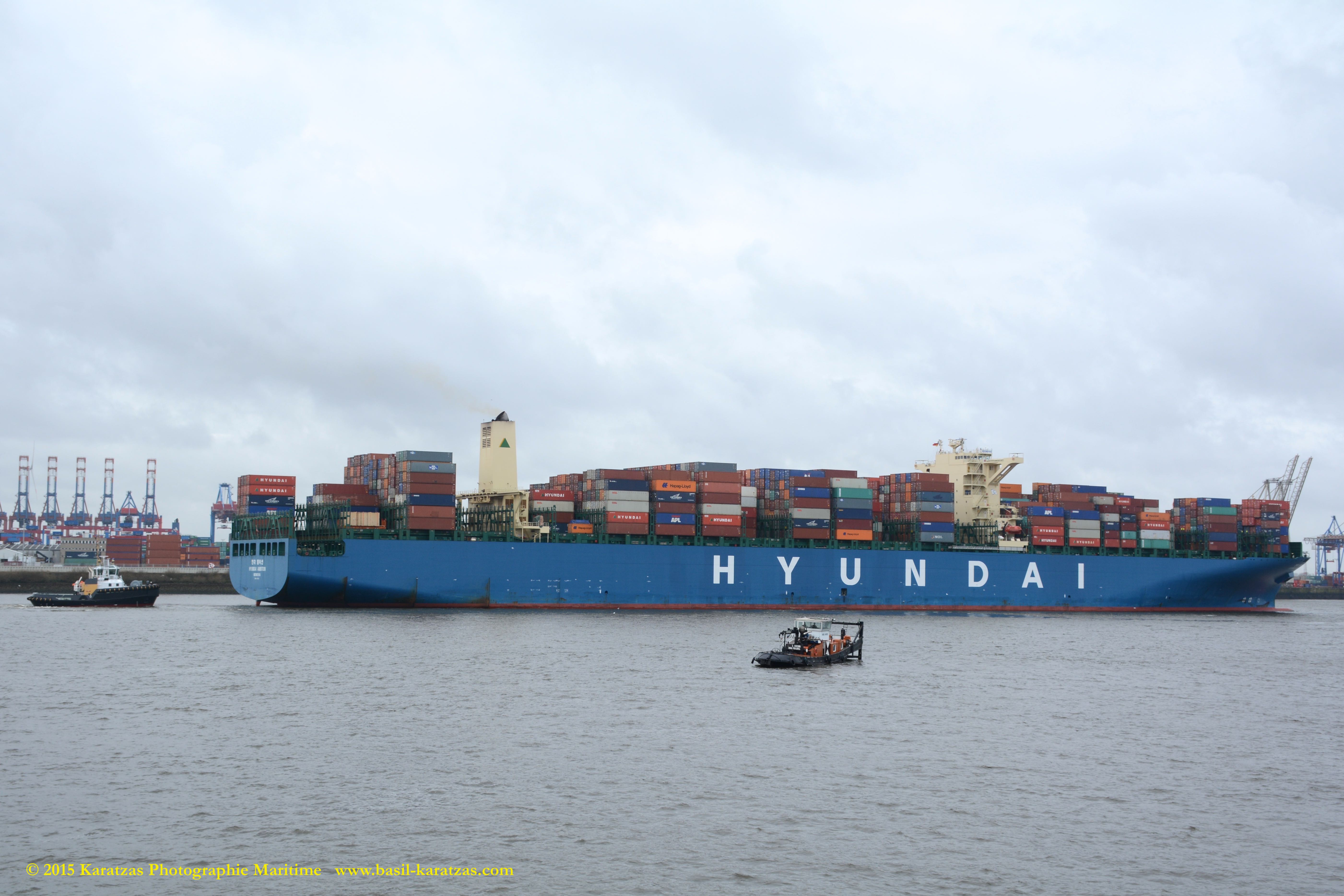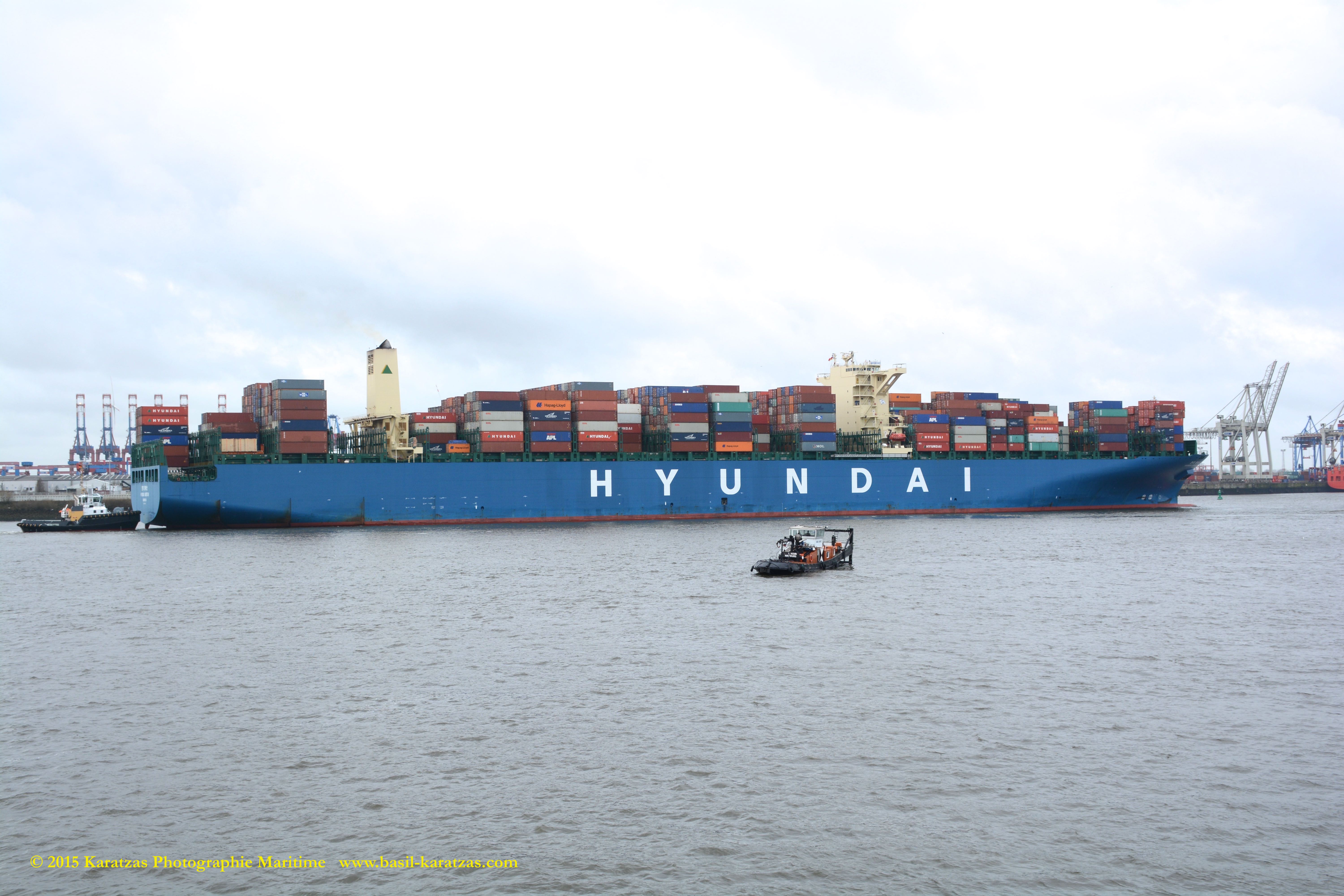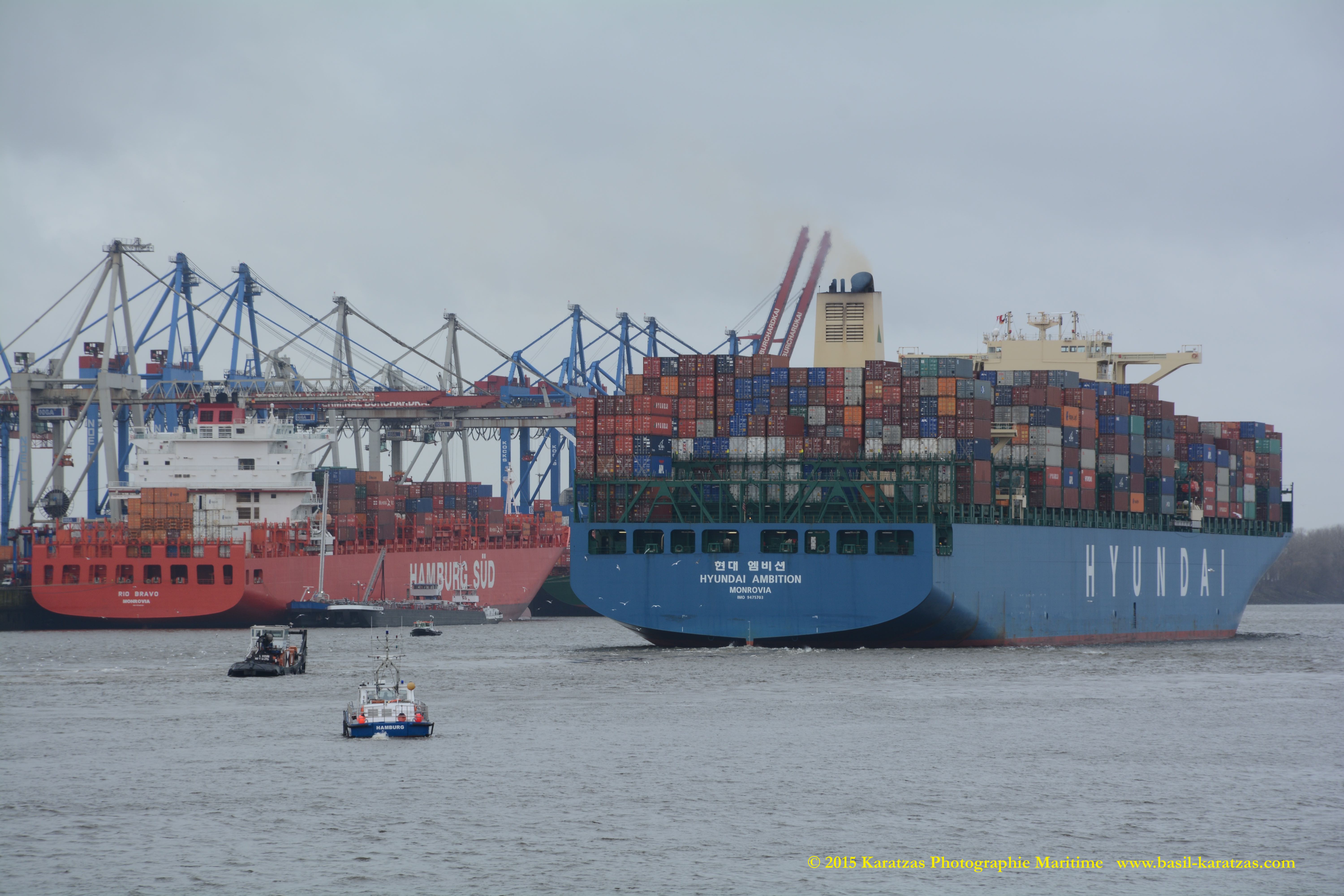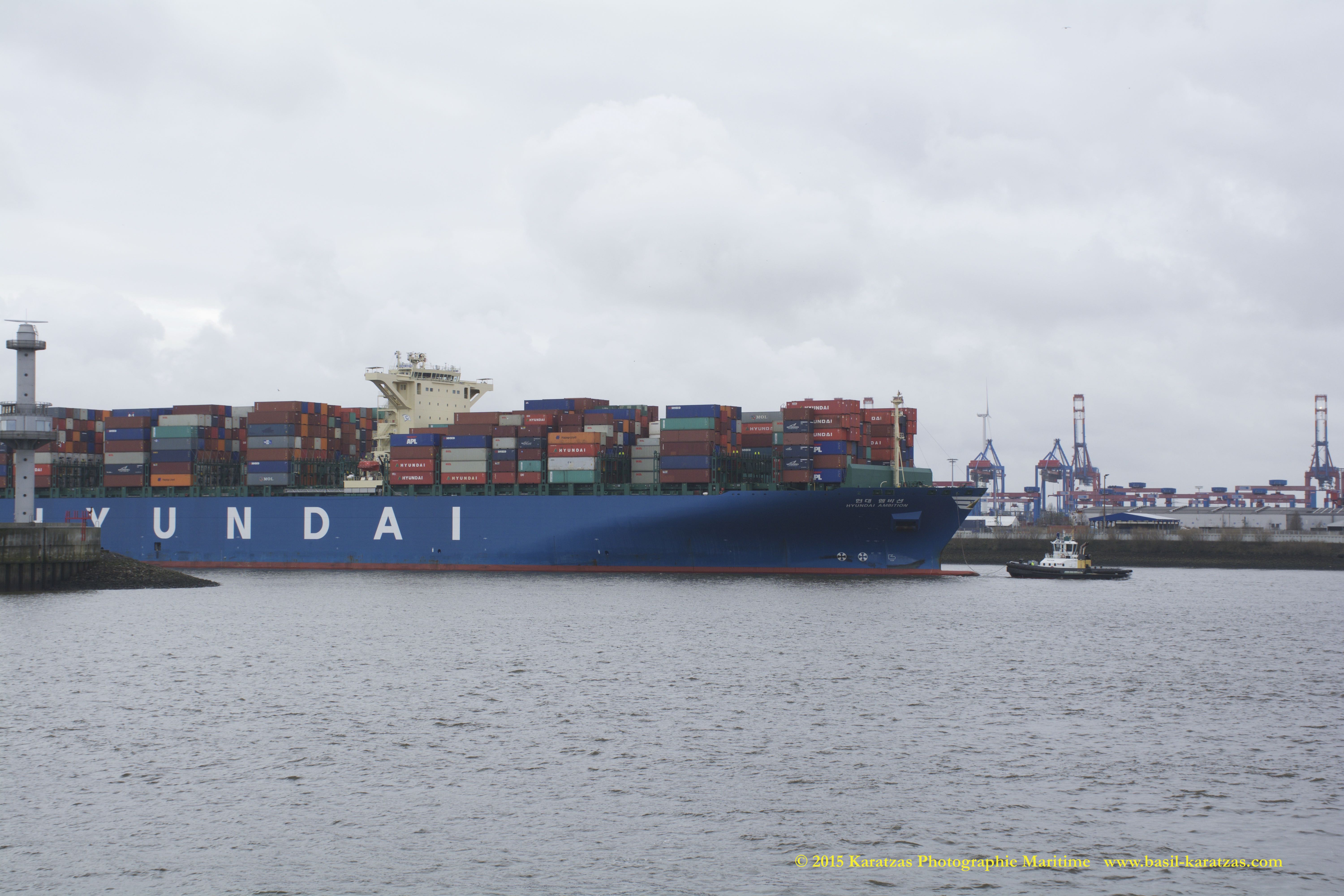 Brightly painted heavylift vessel MV ‘Happy River’ (16,000 dwt, 2x400T cranes, 1997, built at De Merwede, The Netherlands) calling the Port of Hamburg in March 2015. http://www.karatzas.com