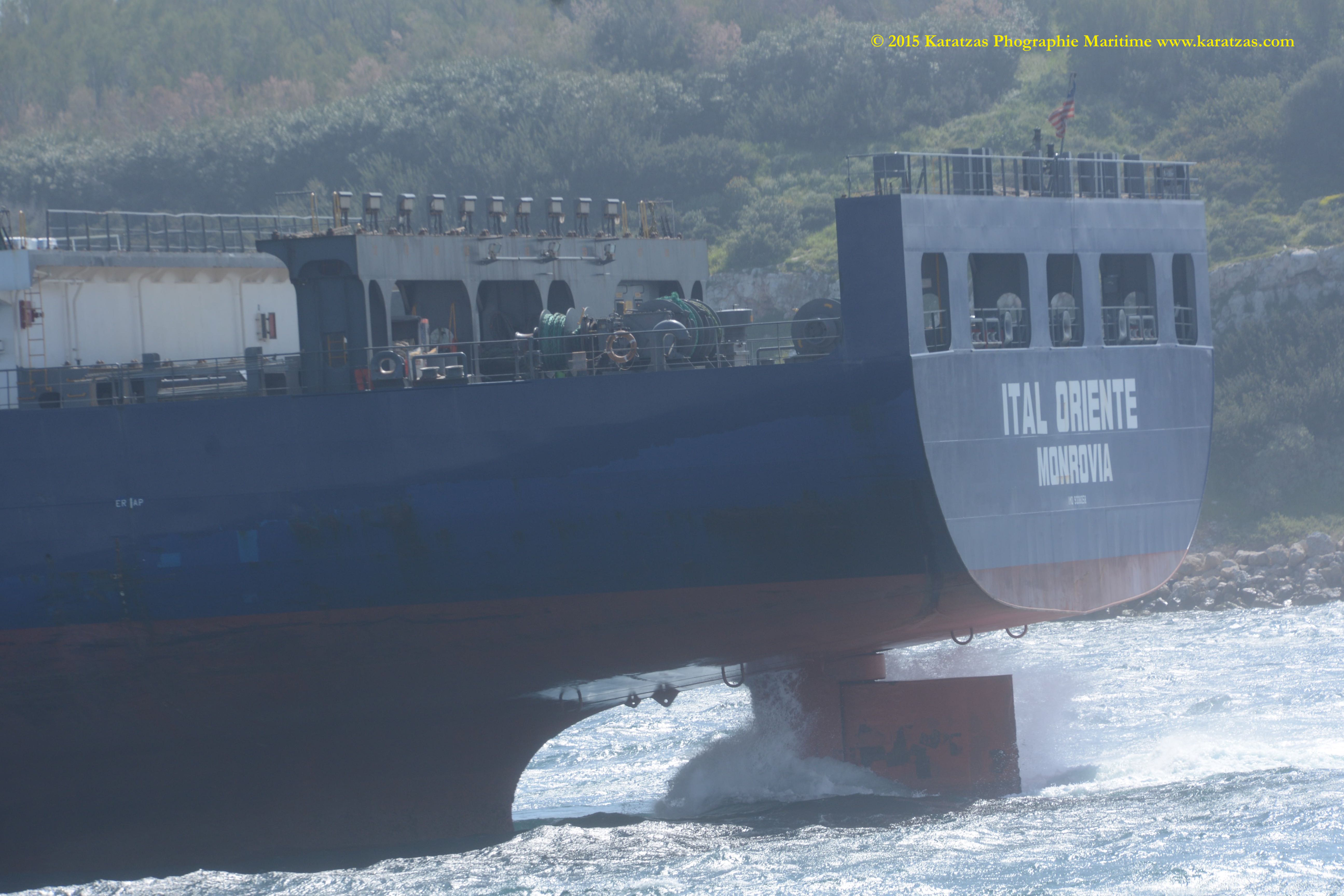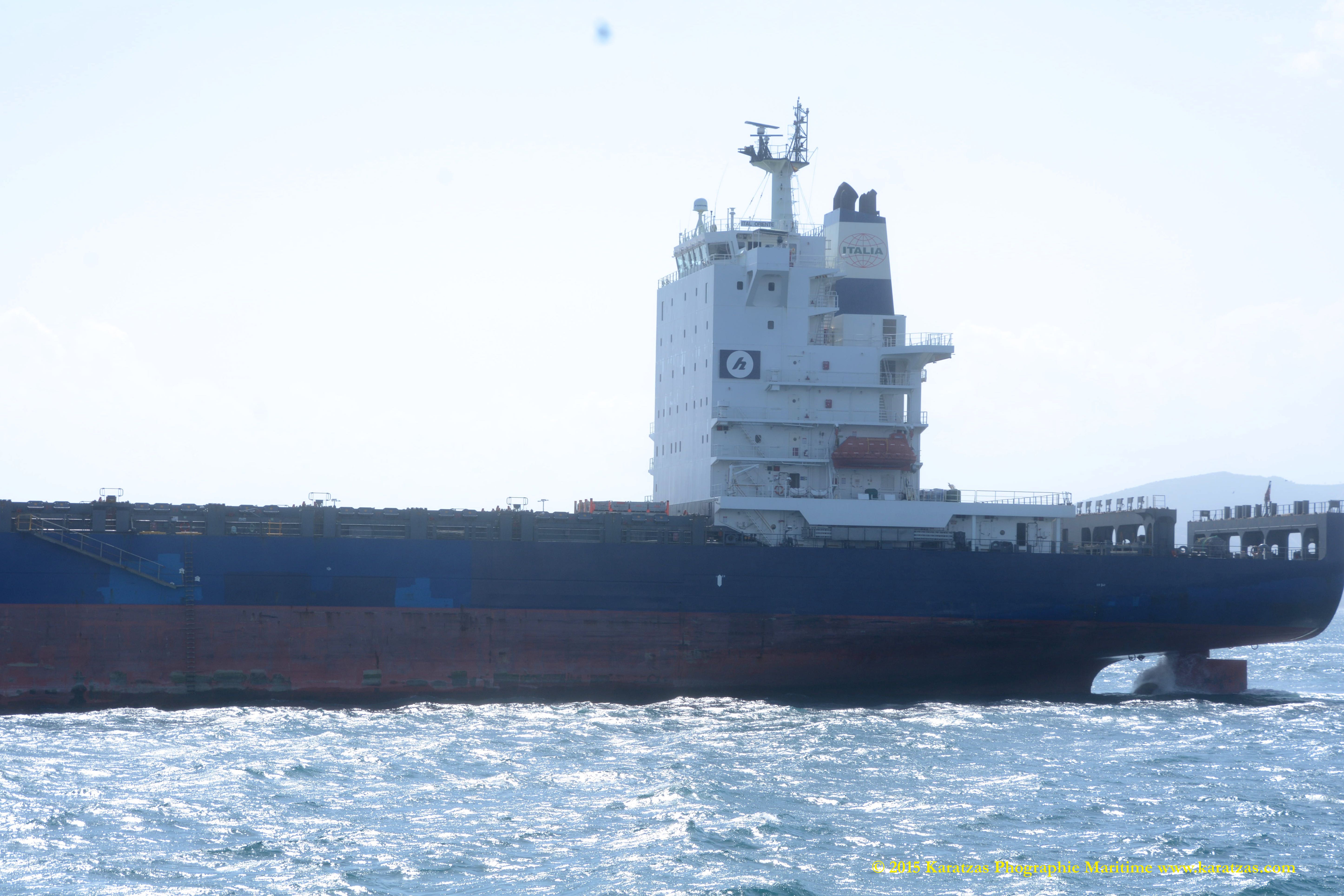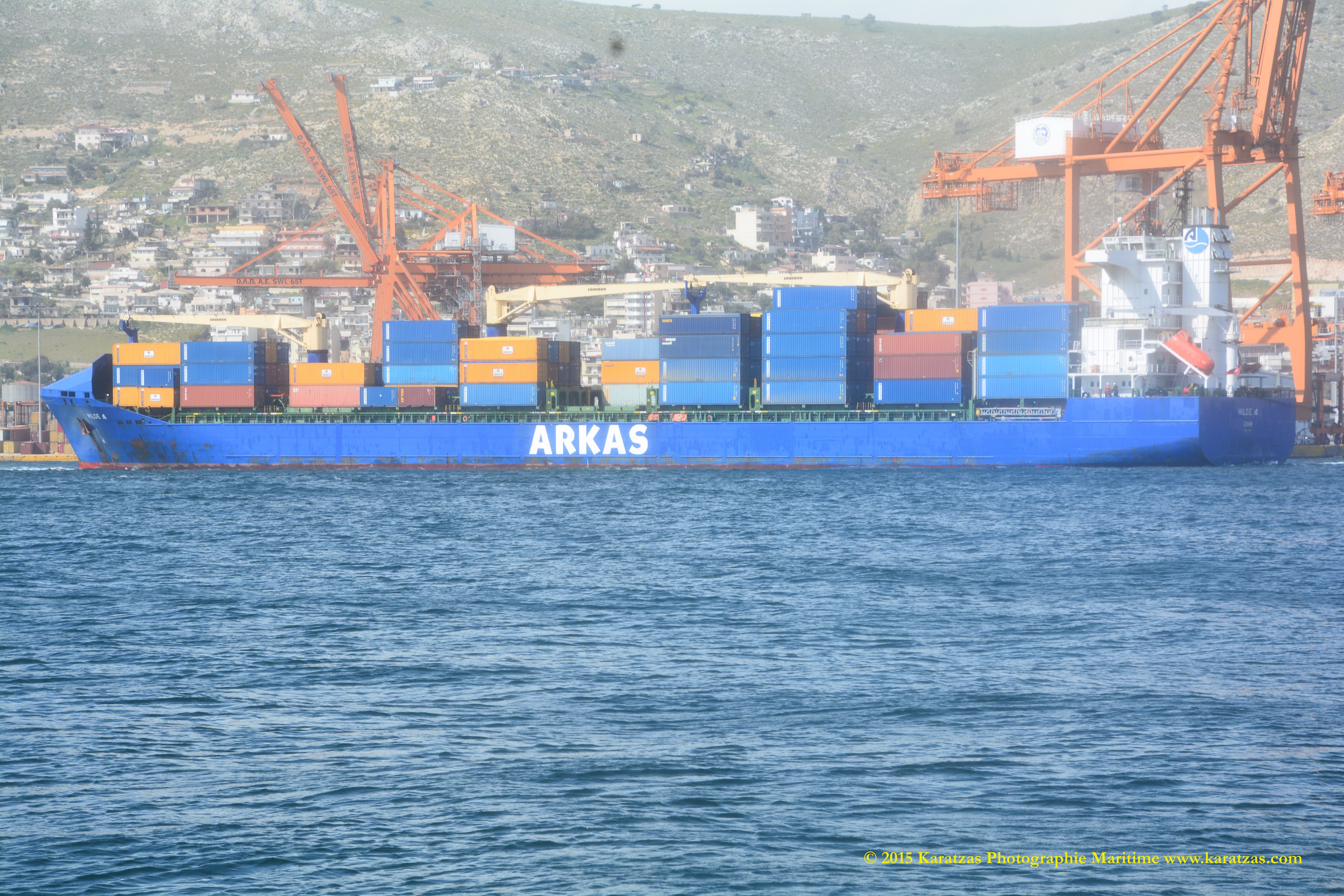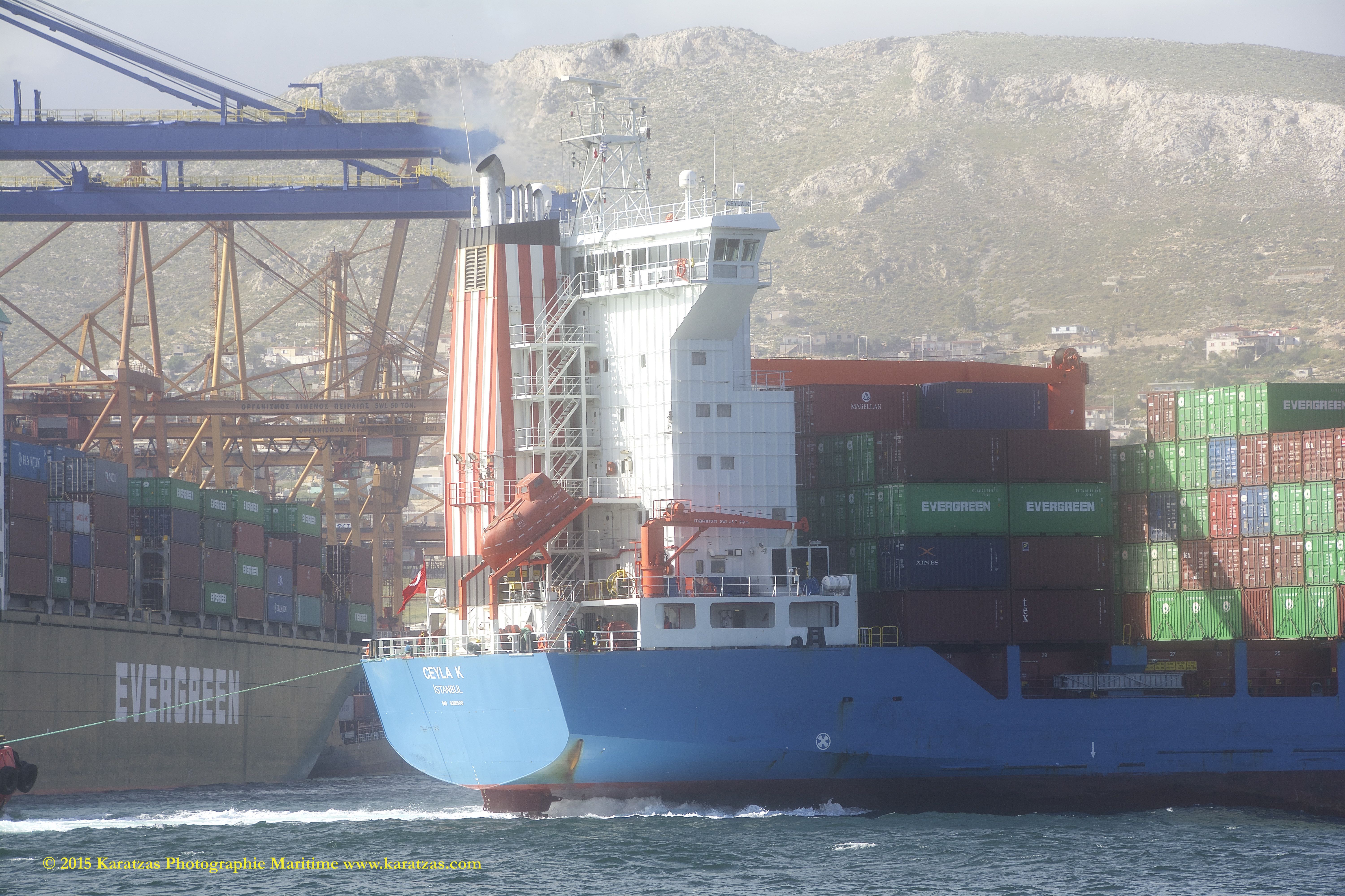 Built at Hyundai Mipo in 2007, ca 2,800-teu gearless containership MV ‘ITAL ORIENTE’ (owned by Hartmann Schiffahrts G.m.b.H. & Co. K.G., and operated by Italia Marittima SpA.) departing Port of Piraeus in April 2015. Karatzas Photographie Maritime.