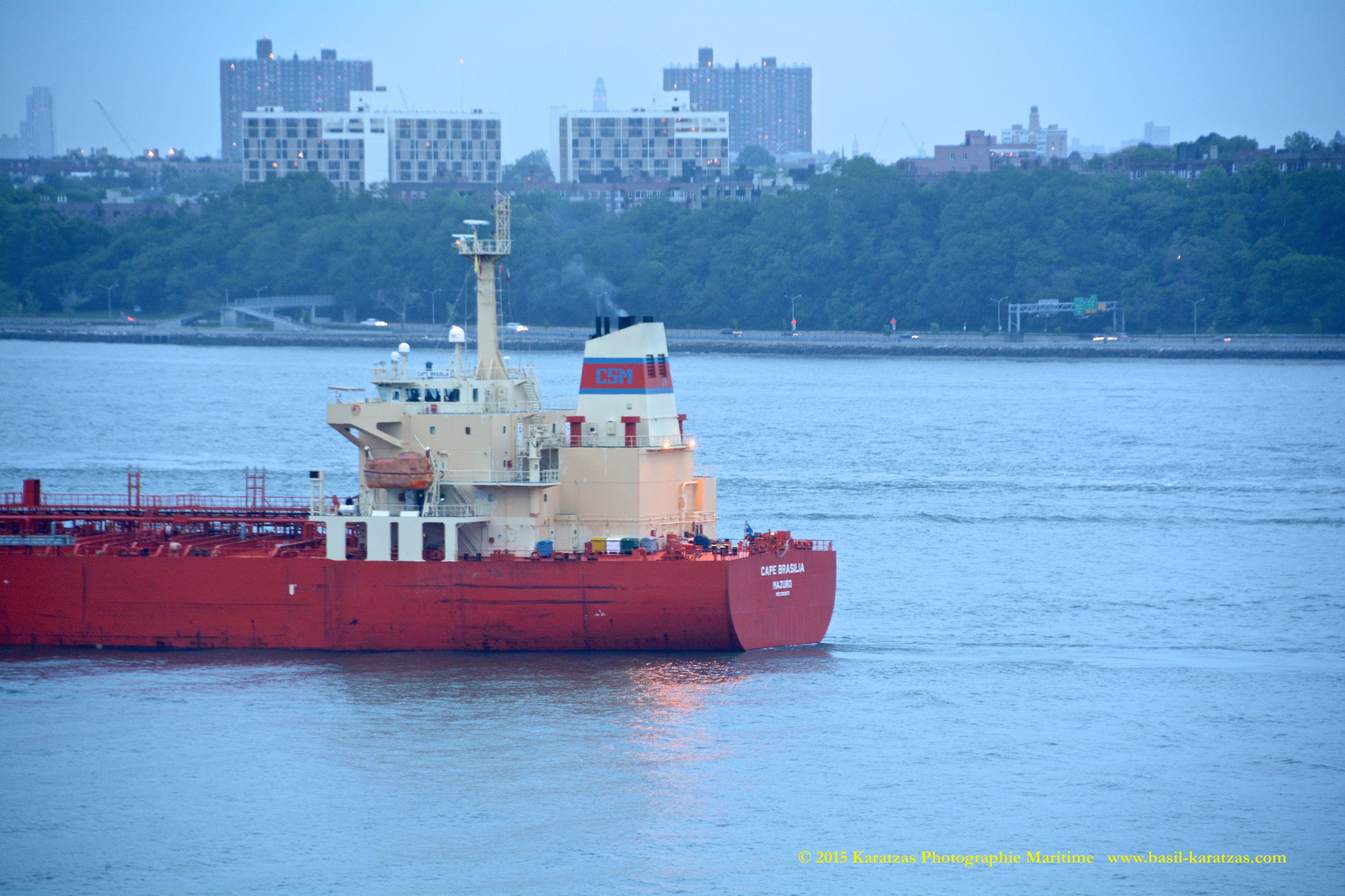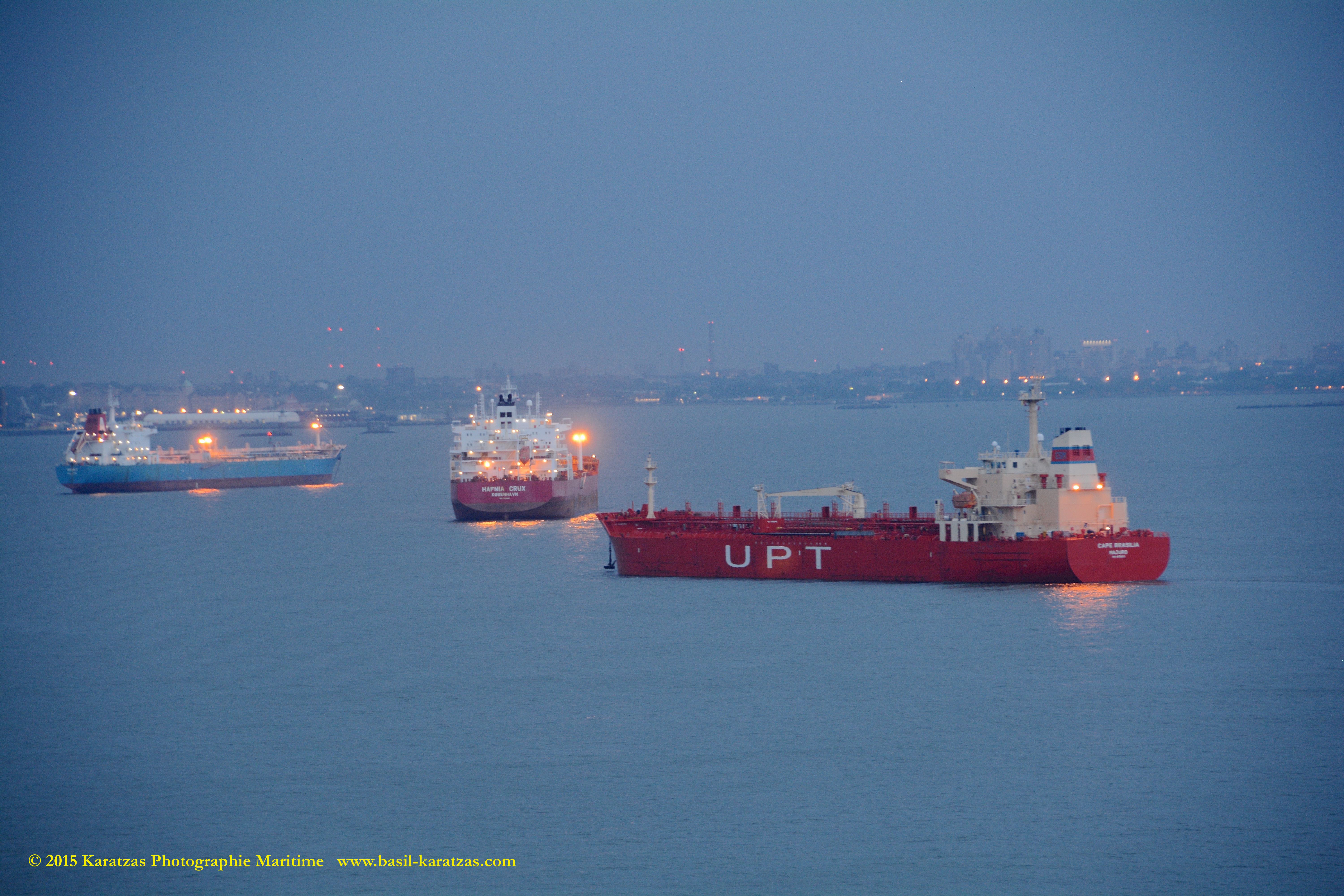 Post-panamax Containership ‘Sealand Washington’ (owned by Costamare in Greece and operated by Maersk Line) departing New York Harbor; crossing paths with inbound Products tanker ‘Orwell’. Karatzas Photographie Maritime