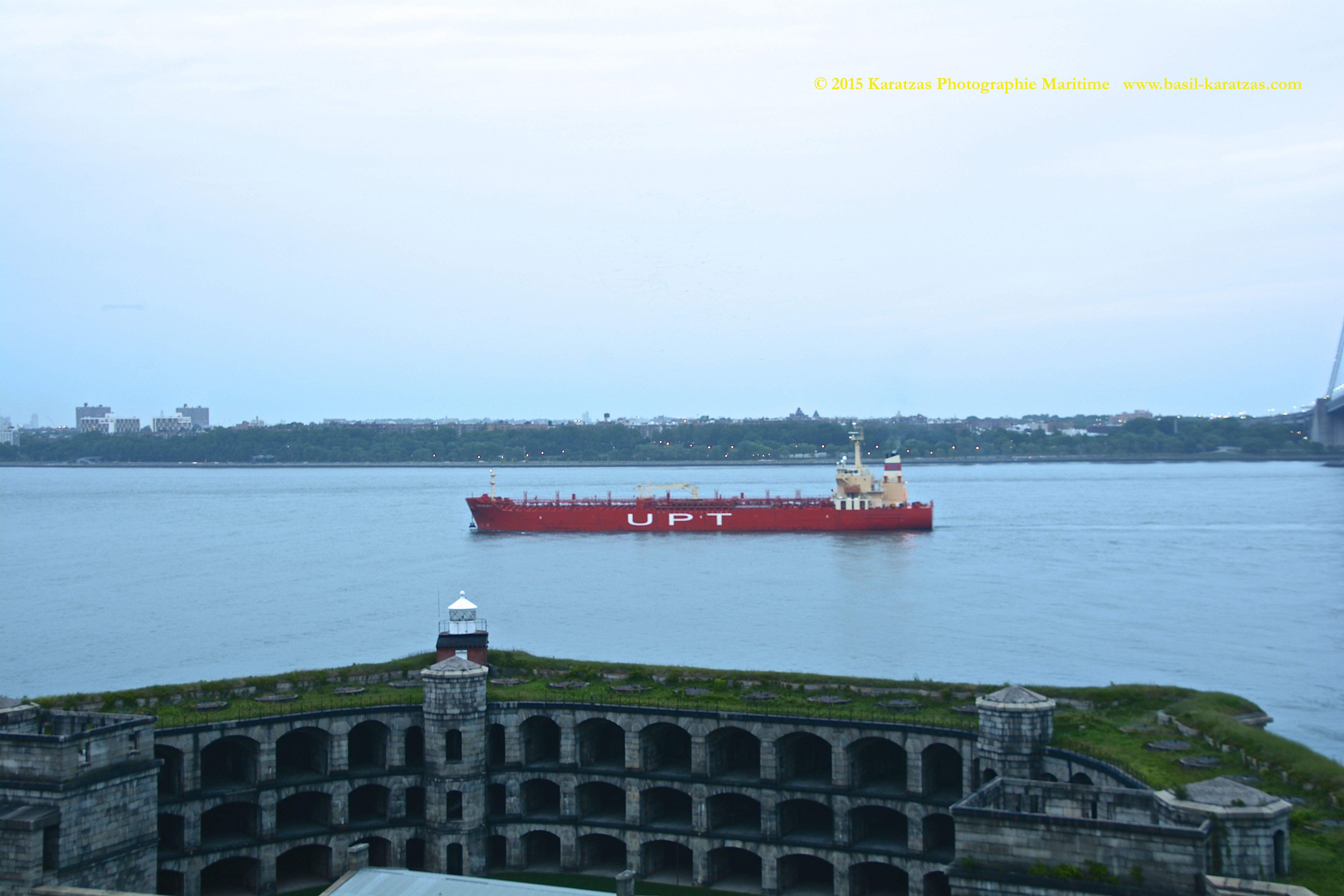 Post-panamax Containership ‘Sealand Washington’ (owned by Costamare in Greece and operated by Maersk Line) departing New York Harbor; crossing paths with inbound Products tanker ‘Orwell’. Fort Wadsworth to the right. Karatzas Photographie Maritime