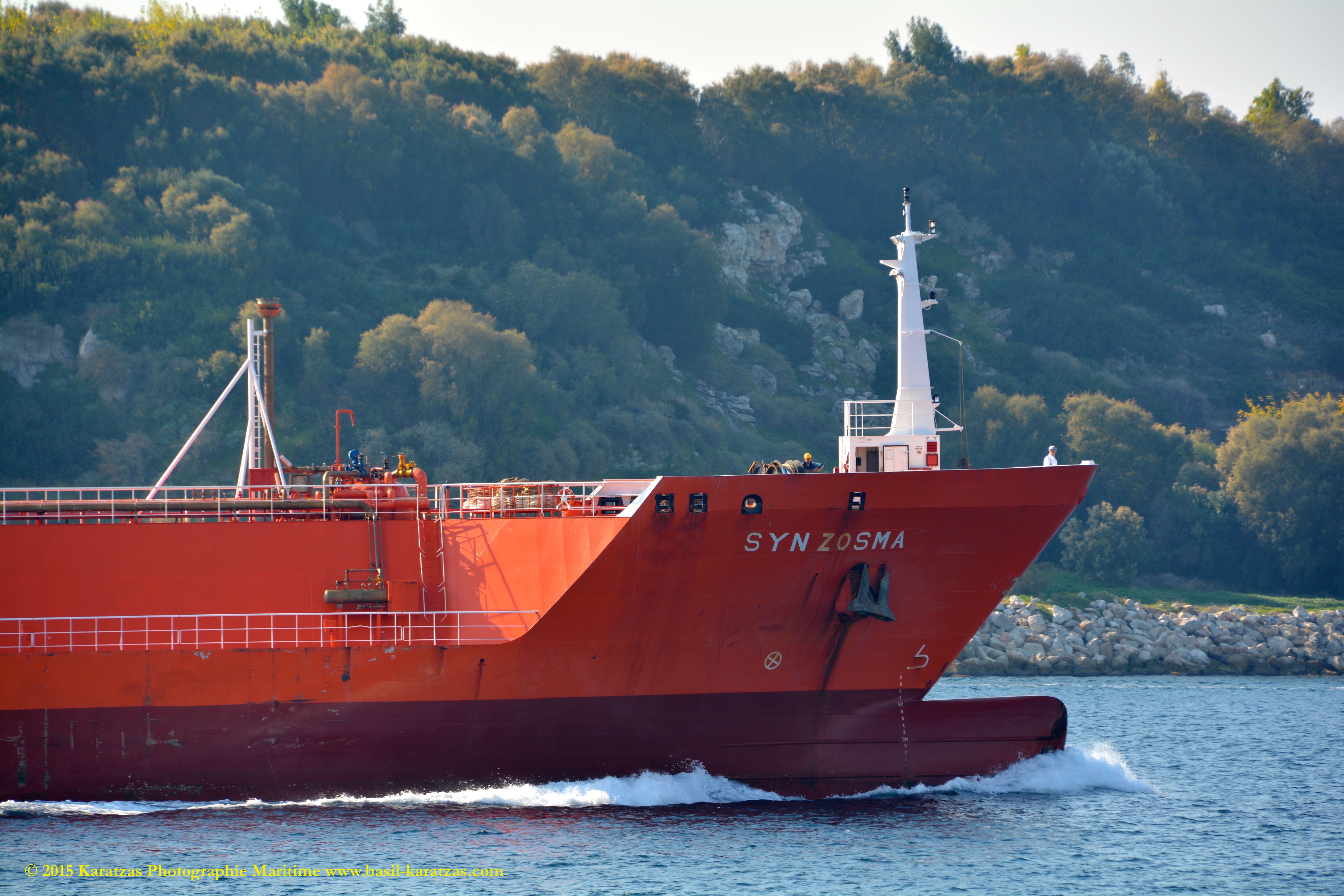 Italian-built, -flagged, -owned gas tanker MT ‘Syn Zosma’ (4,000 cbm, Cantieri Navali, 1999) entering the Port of Piraeus on sunny autumn day. Image credit: Karatzas Photographie Maritime.