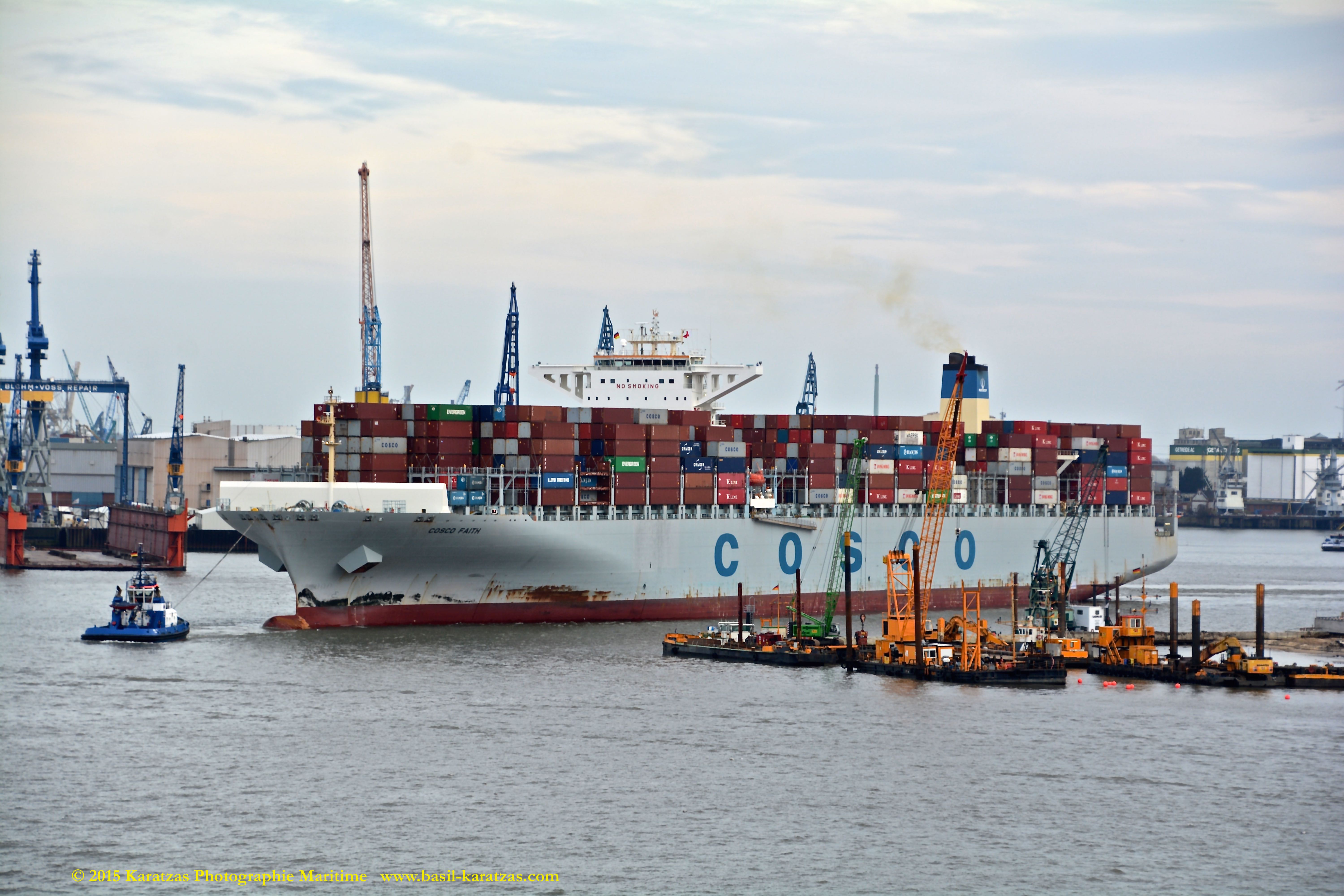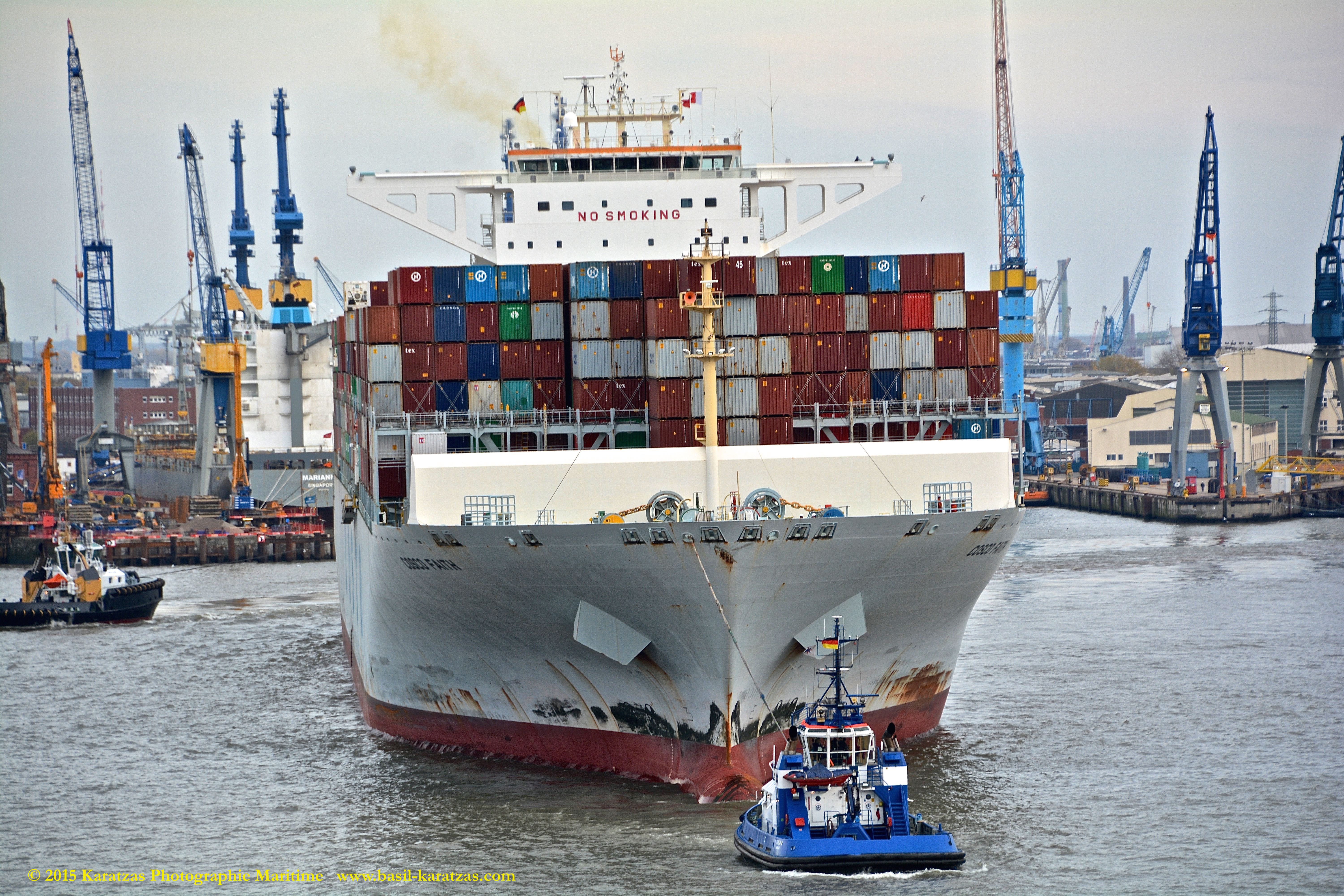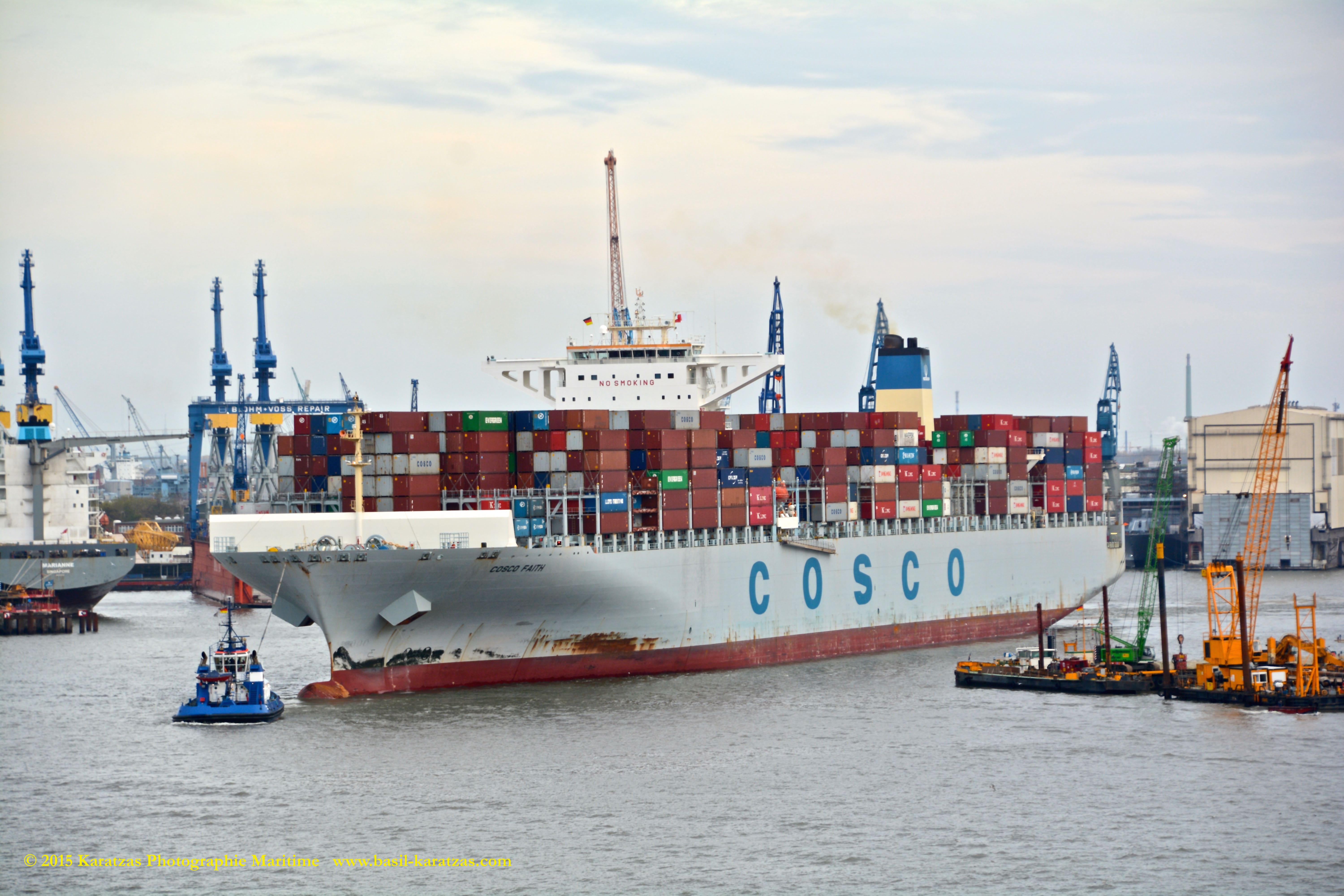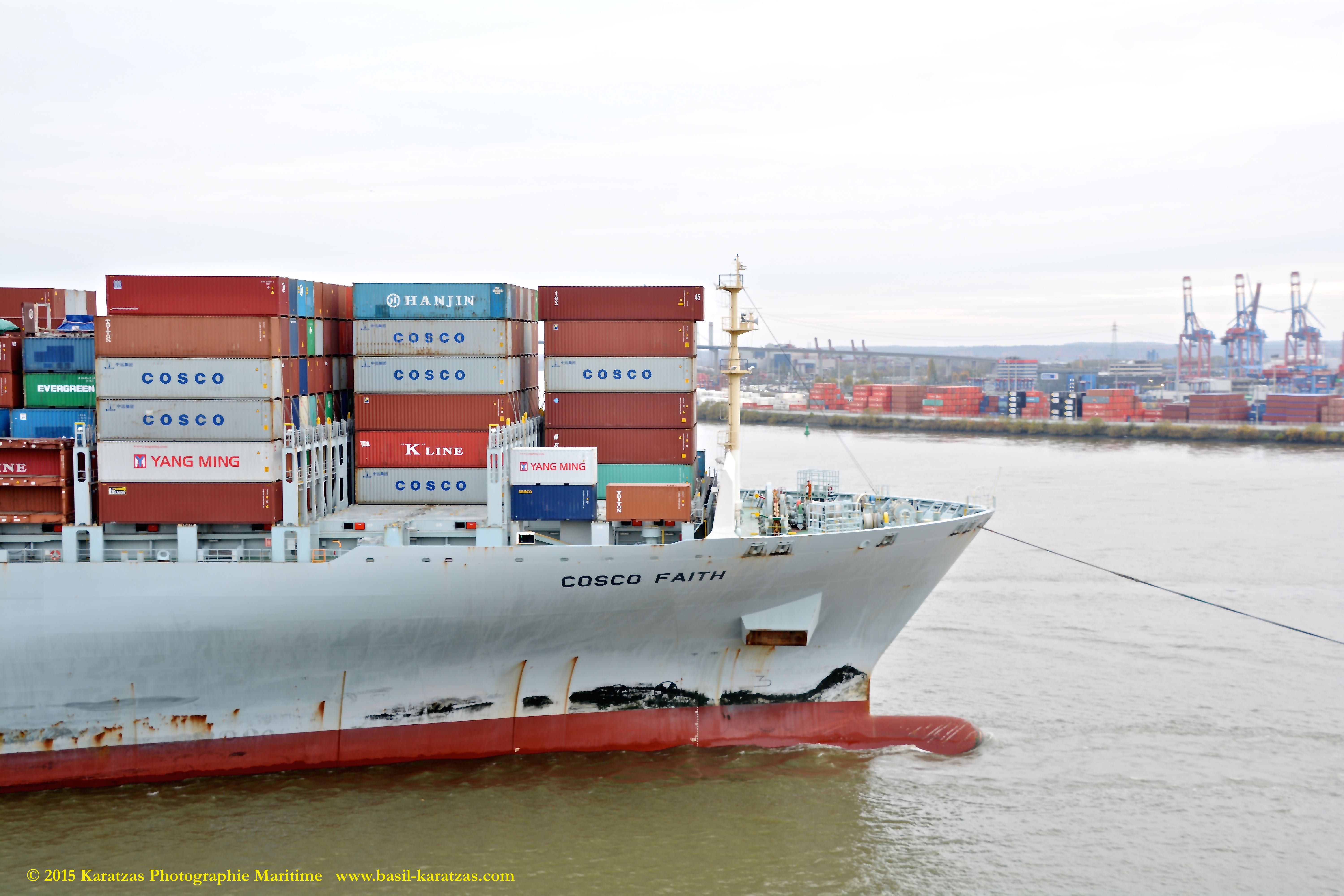 Images of Containership MV ‘COSCO Faith’ departing Port of Hamburg Post-panamax Containership, appr. 13,100 TEU, built in 2012
