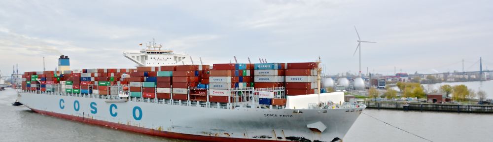 Images of Containership MV ‘COSCO Faith’ departing Port of Hamburg Post-panamax Containership, appr. 13,100 TEU, built in 2012