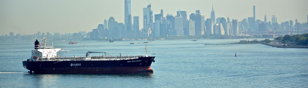 Japanese-built Product Tanker MT ‘Nord Intelligence’ departing New York Harbor on foggy summer morning. Image credit: Karatzas Images.