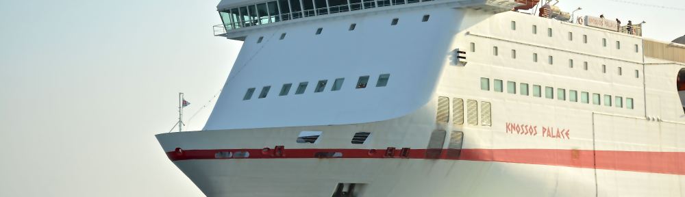 Portside view of the bow of the High Speed Ferry MV ‘Knossos Palace’ (2,200 pax, built at Fincantieri in 2000) entering the Port of Piraeus. Image credit: Karatzas Images
