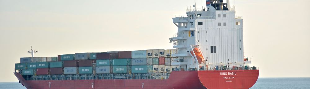 Perfectly named feeder containership MV ‘King Basil’ departing the Port of Piraeus. Image credit: Karatzas Images