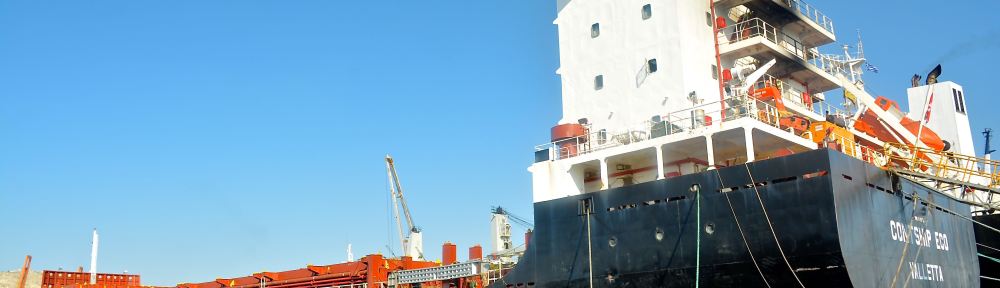 Feeder Containership MV ‘Contship Eco’ (750teu built in 2008 at Zhejiang Zhenxing) at Molos Drapetsonas in Piraeus. Image credit: Karatzas Images