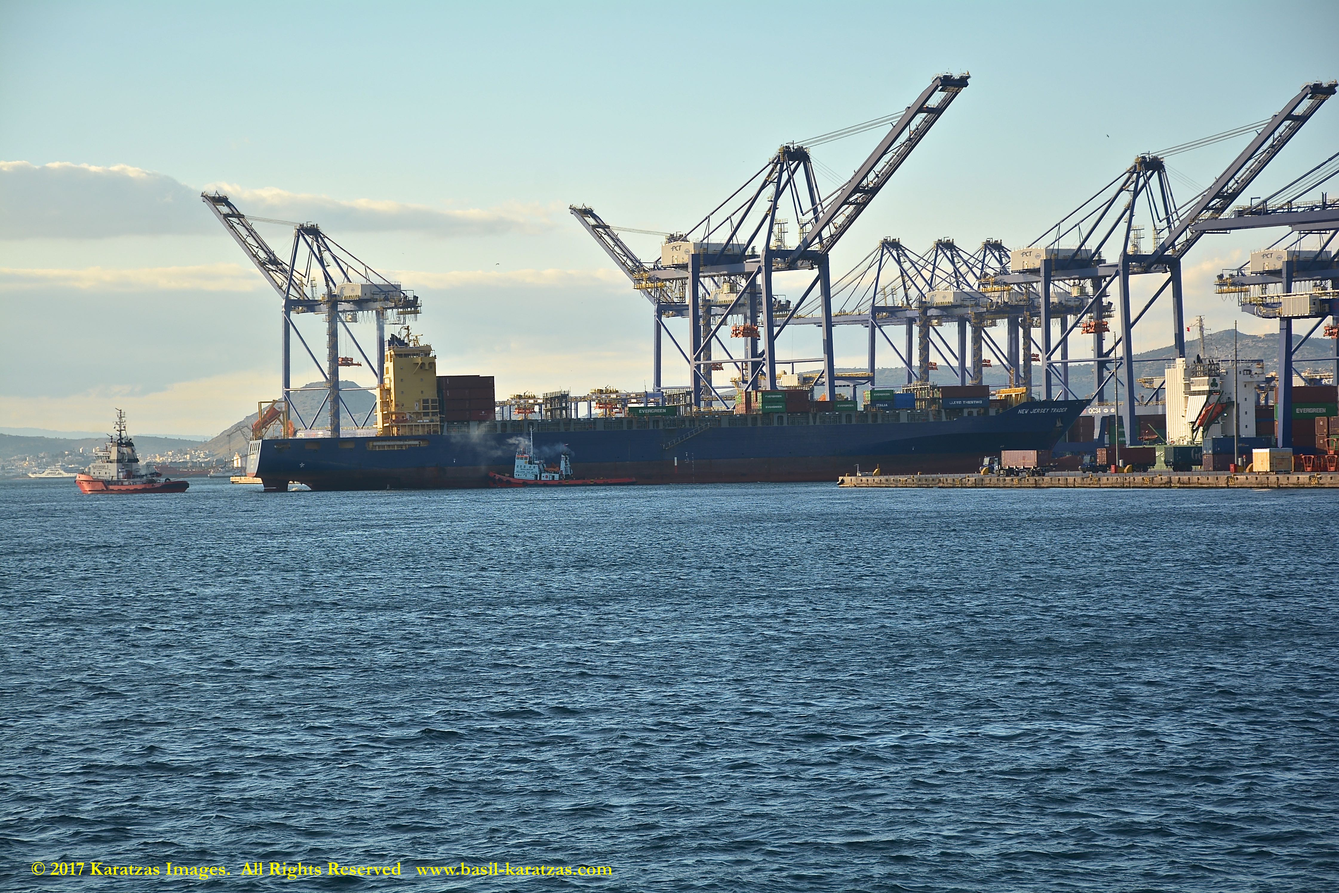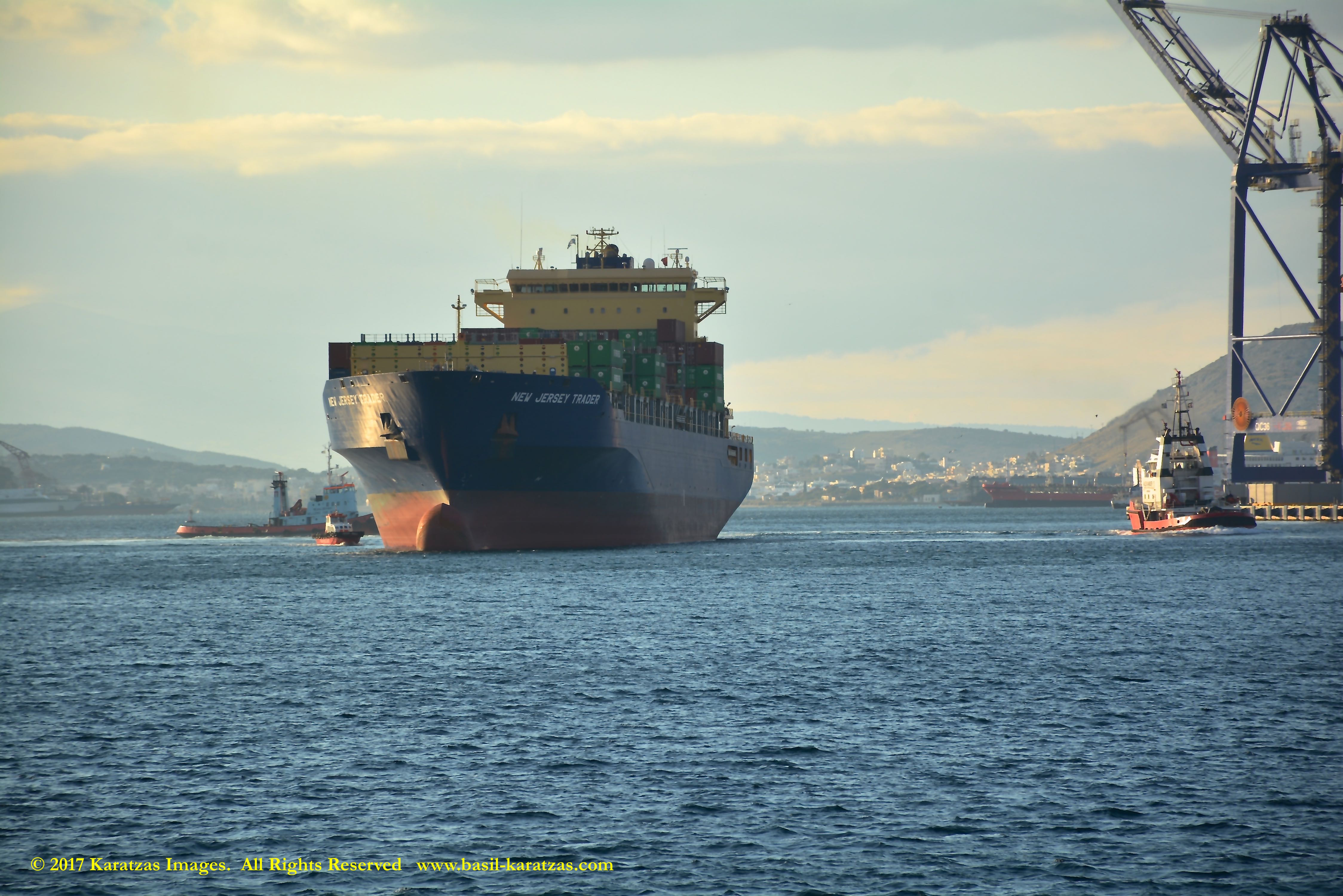 Feeder Containership MV ‘New Jersey Trader’ departing the Port of Piraeus