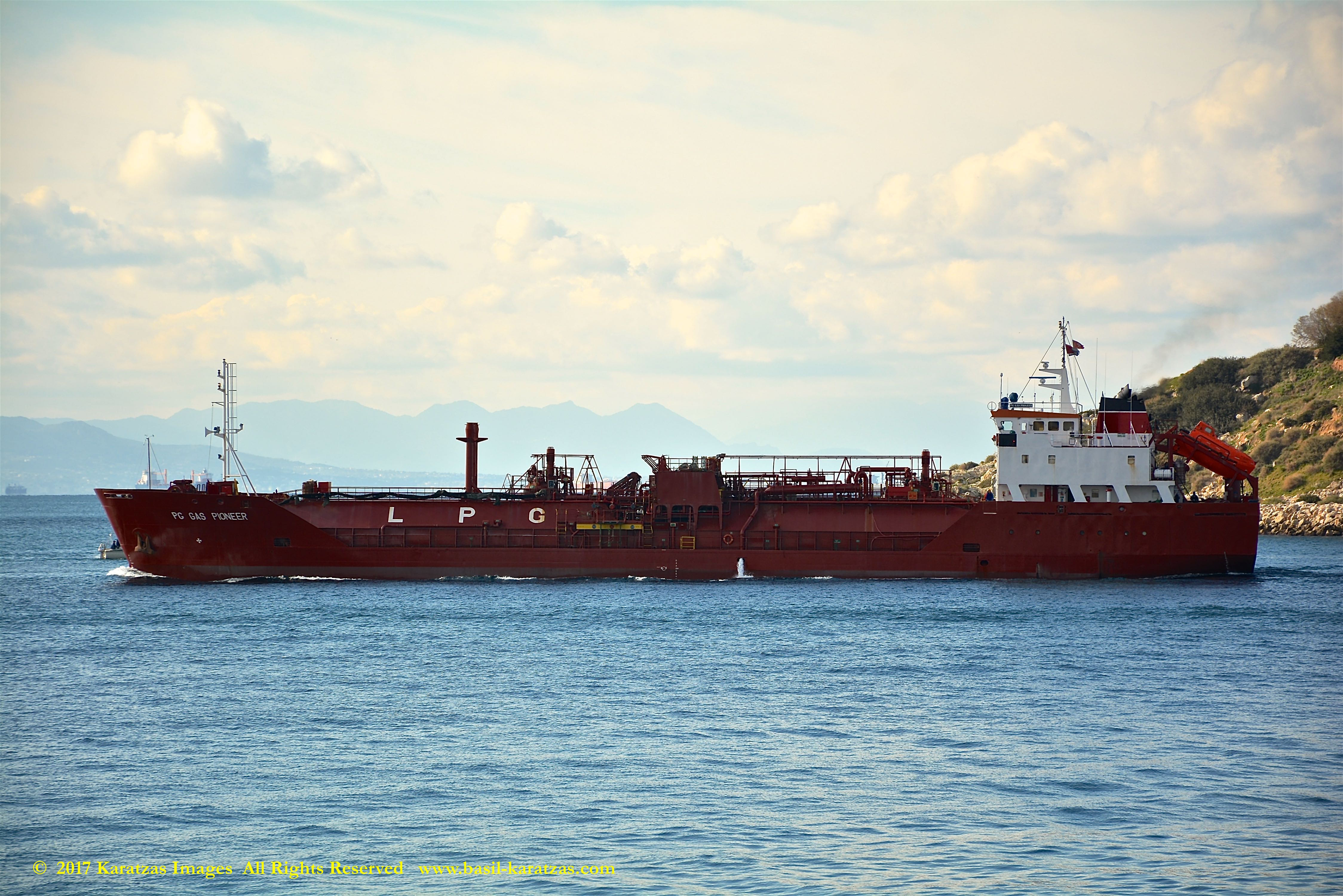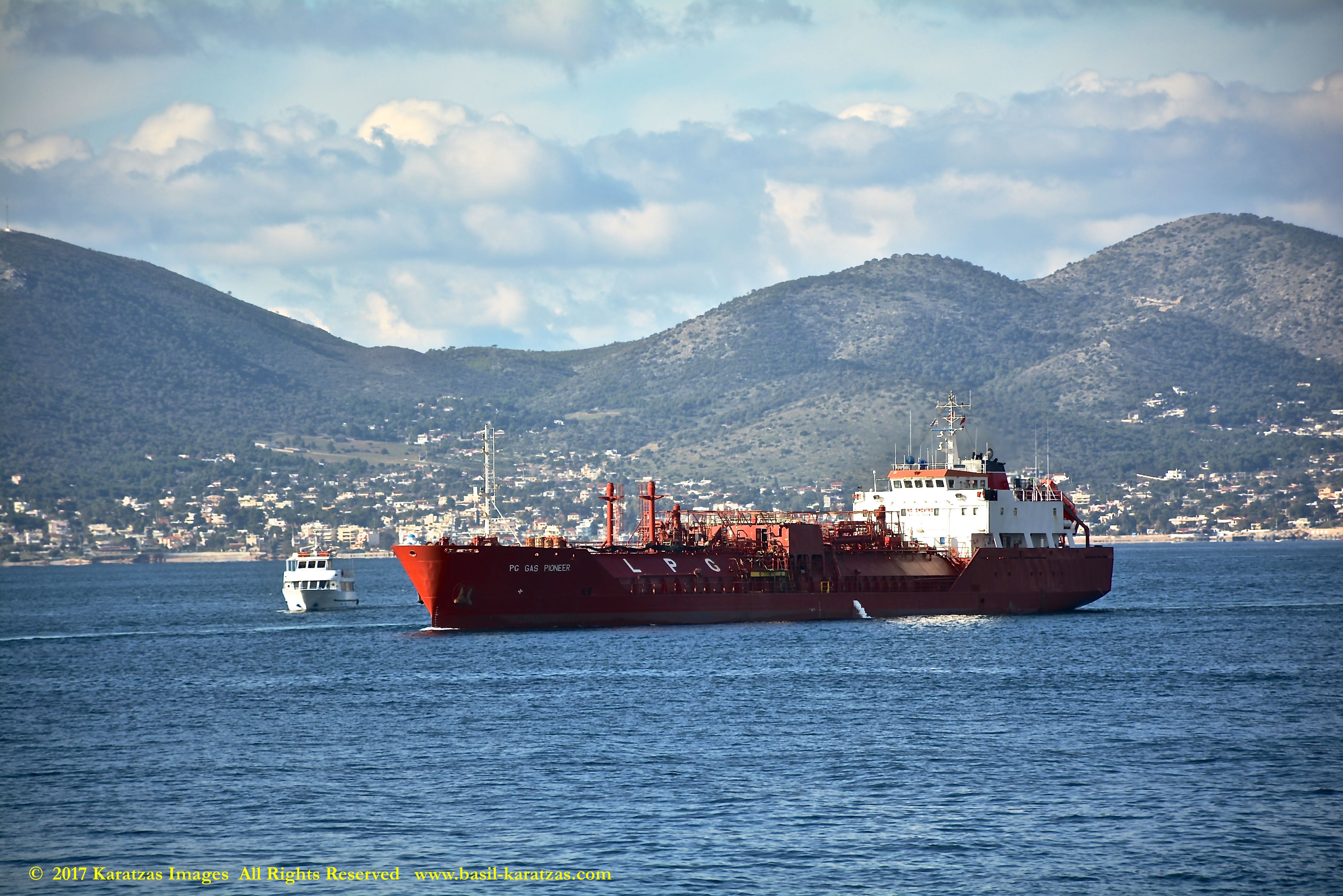 Built in 1991 in the United Kingdom by now defunct shipbuilder Richards Shipbuilders Ltd (est. 18760, vintage ice-class refrigerated LPG tanker MT ‘PG Gas Pioneer’ trading in the Port of Piraeus for her new owners, Anco Ltd. under the winter Aegean sun. Image credit: Karatzas Images