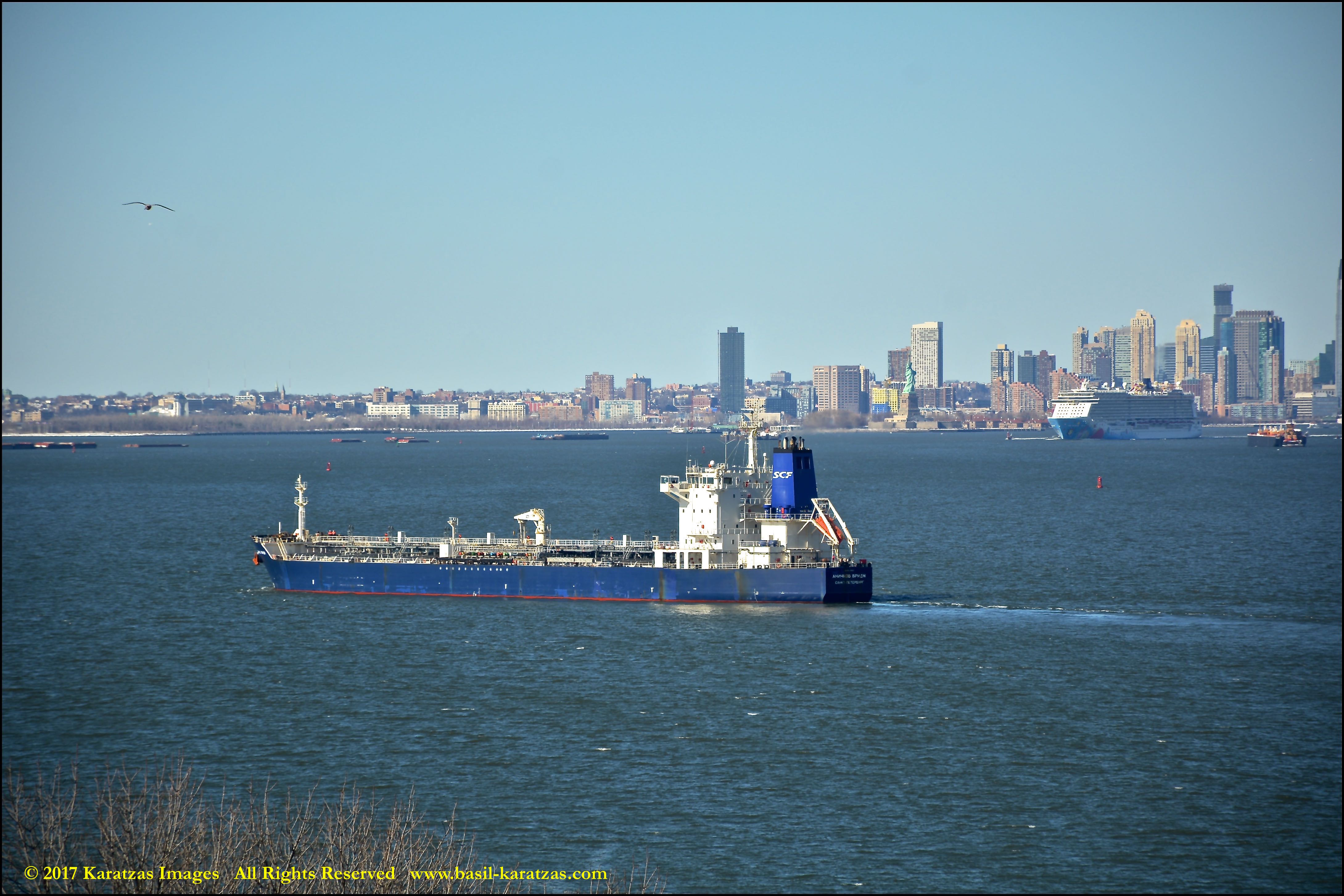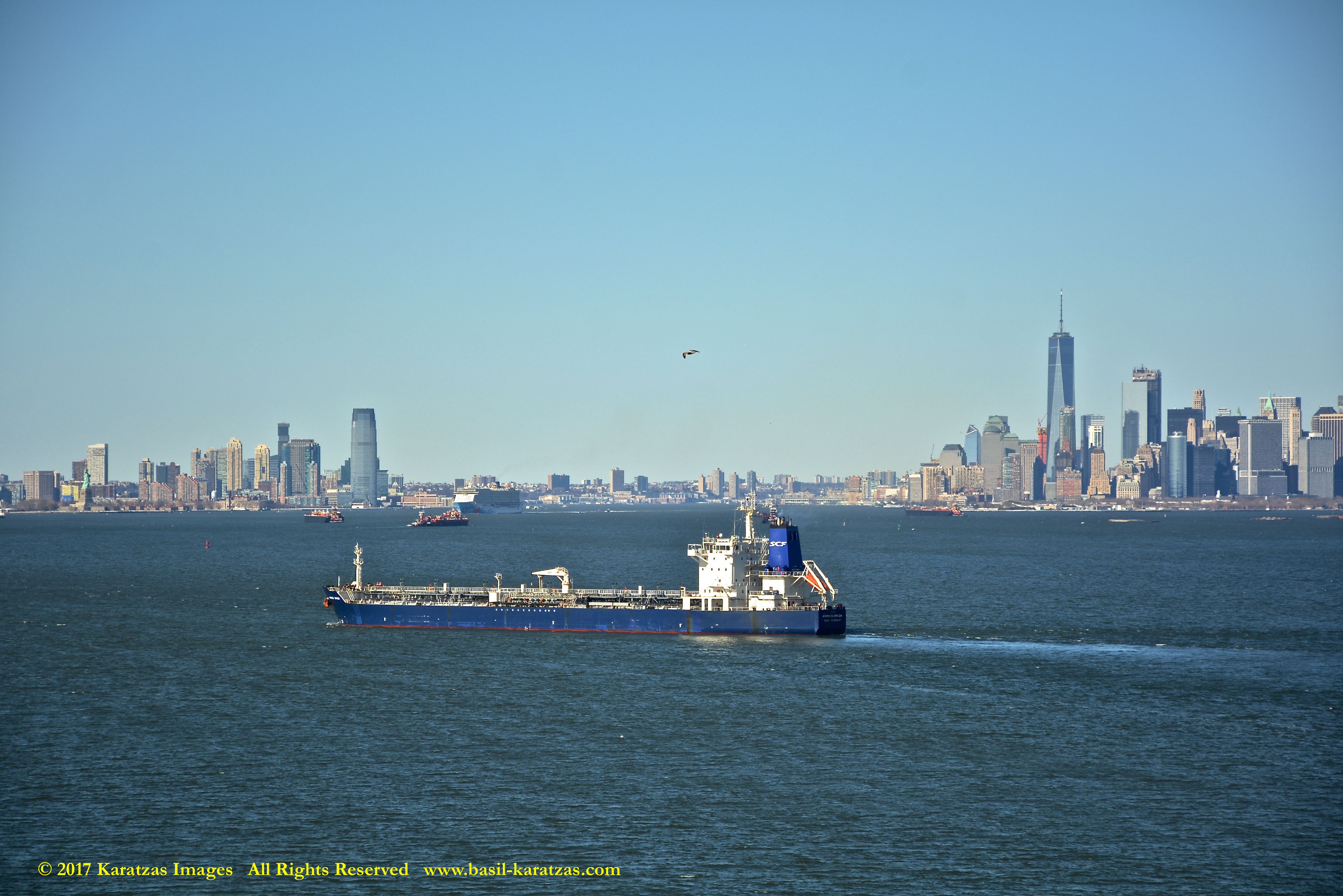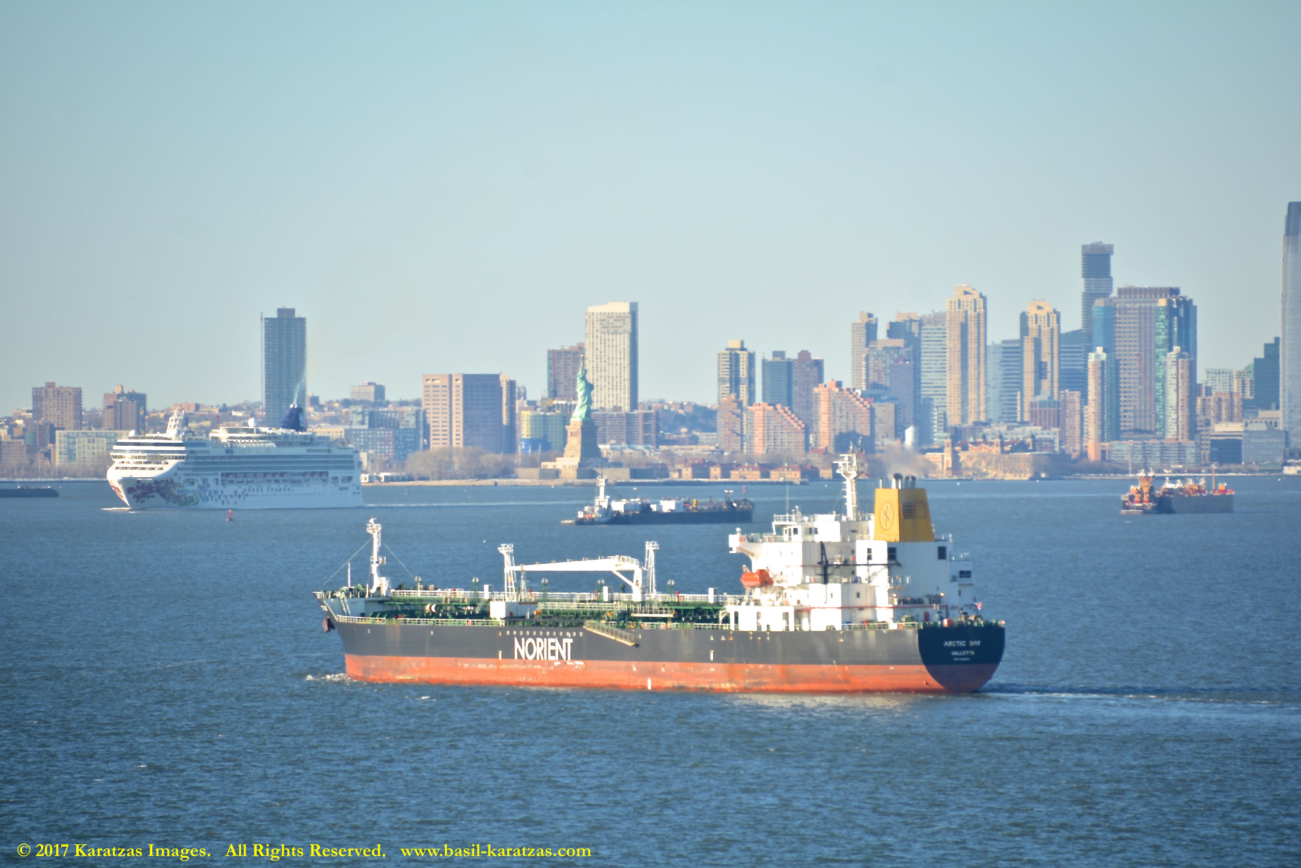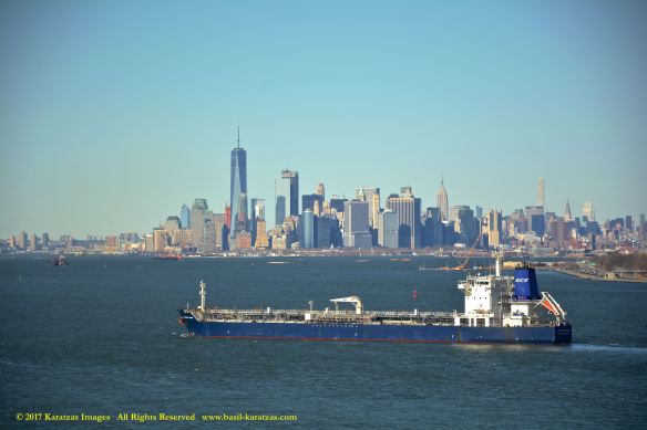 Built in 2006 at STX SB (Jinhae), products tanker MT ‘Arctic Bay’, entering the Upper New York Harbor, passing several landmarks on the way. Image credit: Karatzas Images.