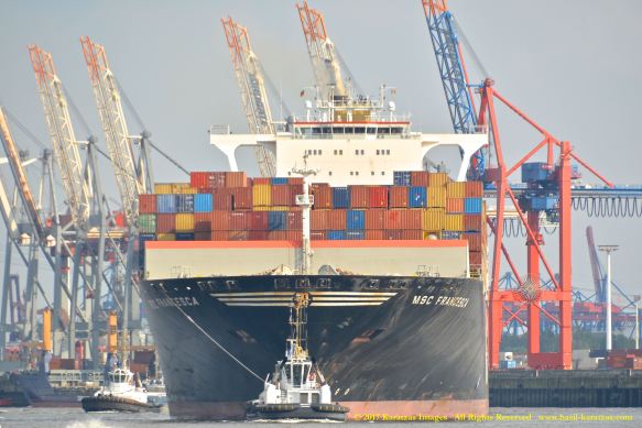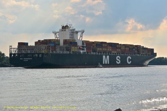 Images of MV ‘MSC Francesca’ departing the Port of Hamburg