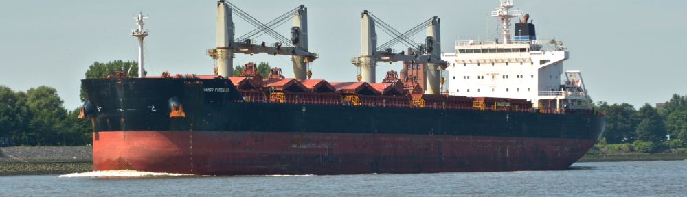 Images of MV ‘Genco Pyrenees’ (‘Crown 58 SDARI’ design, 58,000-dwt, 2010-built) sailing upstream the Elbe River in Hamburg. Image credit: Karatzas Images.
