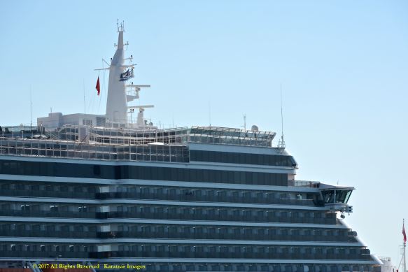AUXILIARY: 3 x Aux. Diesel Gen – Yanmar 6EY18ALW – 4-stroke 6-cyl. 180mm x 280mm bore/stroke 2,400mkW total at 900rpm driving 3 x AC generator(s) at 60Hz, 1 x Emergency Diesel Gen. – Deutz TD914L06M – 4-stroke 6-cyl. 102mm x 125mm bore/stroke 99mkW total at 1,800rpm driving 1 x AC generator(s) at 60Hz.