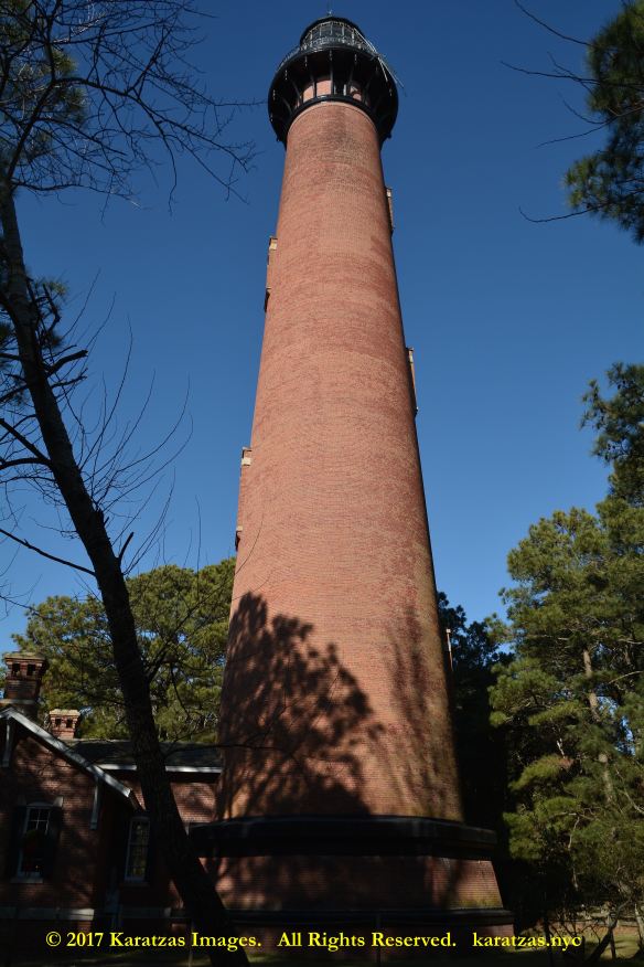 The Currituck Beach Light is located on the Outer Banks in Corolla, North Carolina. The lighthouse is constructed of brick and is not painted in order to be distinguished from the Bodie Island and Cape Hatteras Lights that are in the vicinity. The Currituck Beach Light was added to the National Register of Historic Places on October 15, 1973. Image credit: Karatzas Images.
