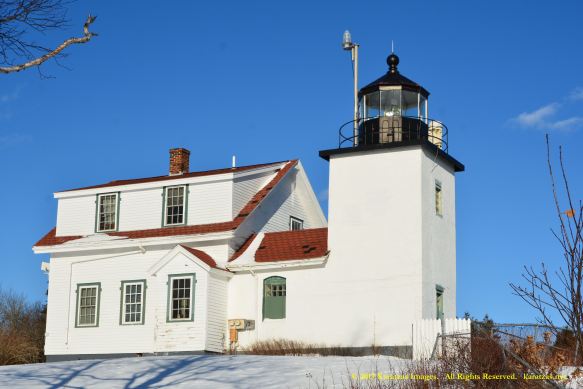 The Fort Point Light, also known as Fort Point Light Station, is located in Fort Point State Park, in Stockton Springs, Maine. The present lighthouse (focal height of 88 ft (27 m)) dates to 1857, and is listed in the National Register of Historic Places. Image credit: Karatzas Images.