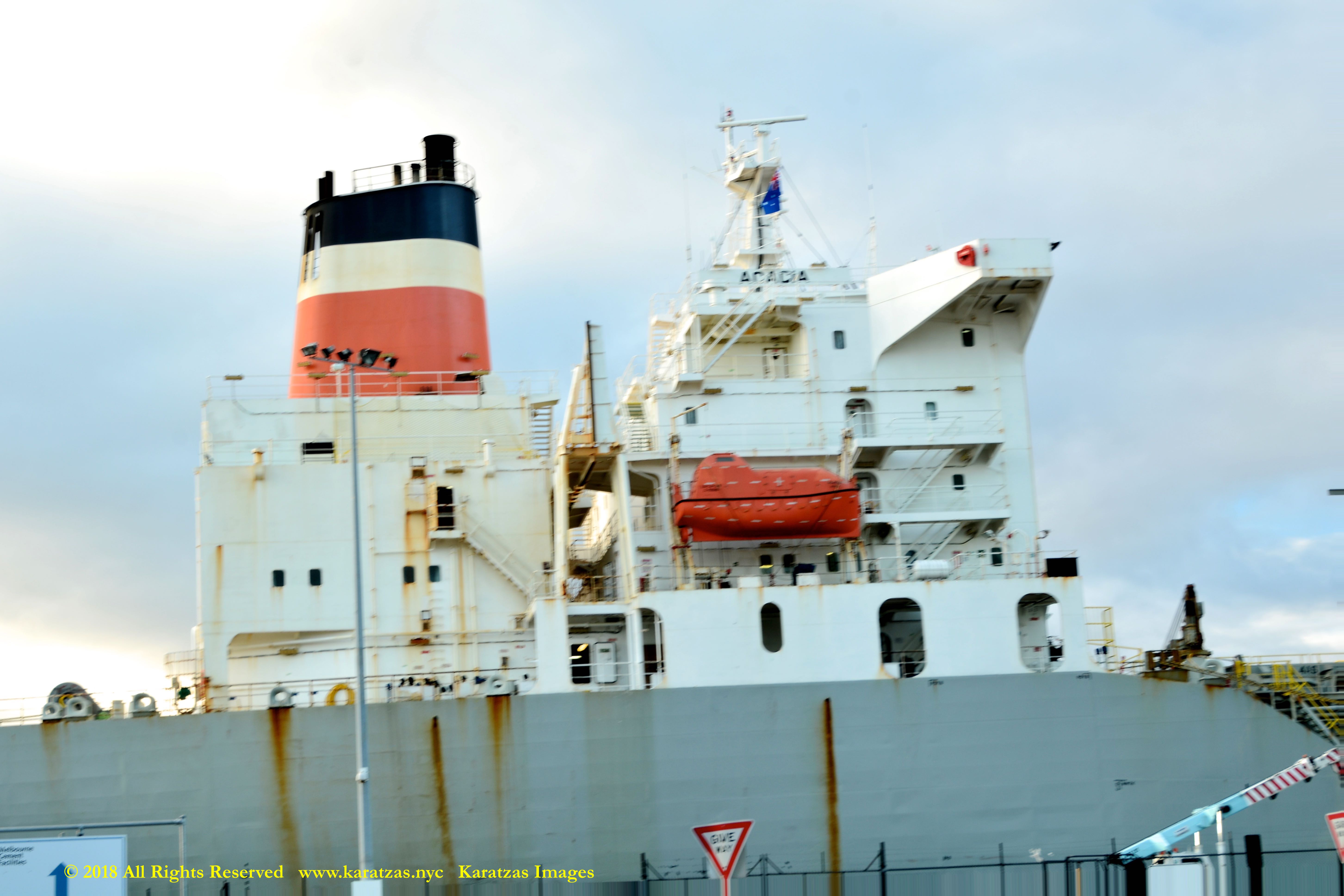 CSL’s self-unloading drybulk vessel MV ‘Acacia’ pictured unloading cement in the Port of Melbourne, Australia. Detail view of the bow and partial view of the telescopic discharge boom. Image credit: Karatzas Images
