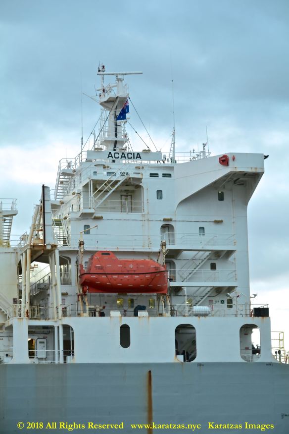 CSL’s self-unloading drybulk vessel MV ‘Acacia’ pictured unloading cement in the Port of Melbourne, Australia. View of the accommodation. Image credit: Karatzas Images