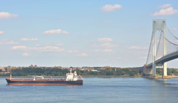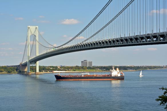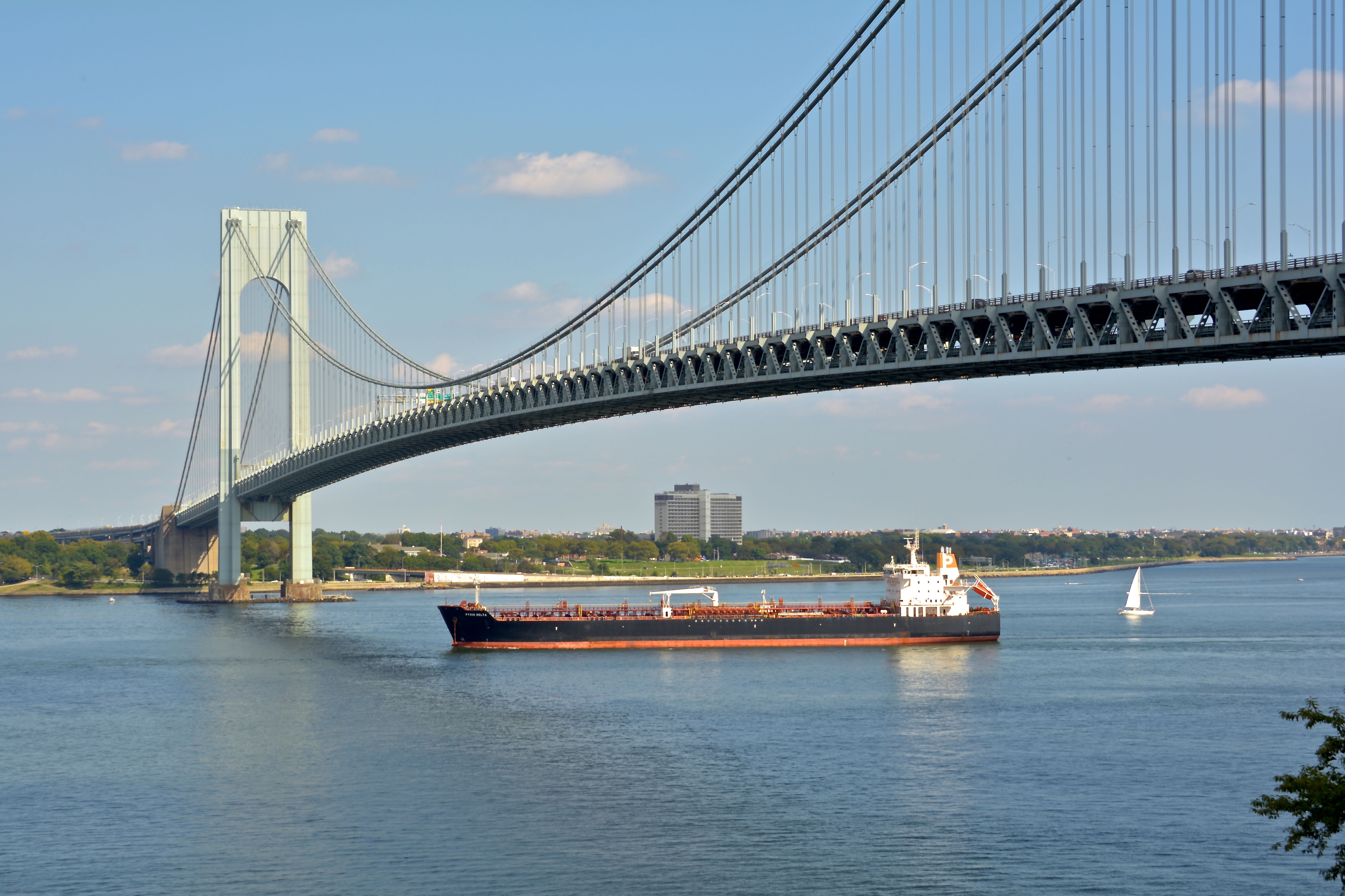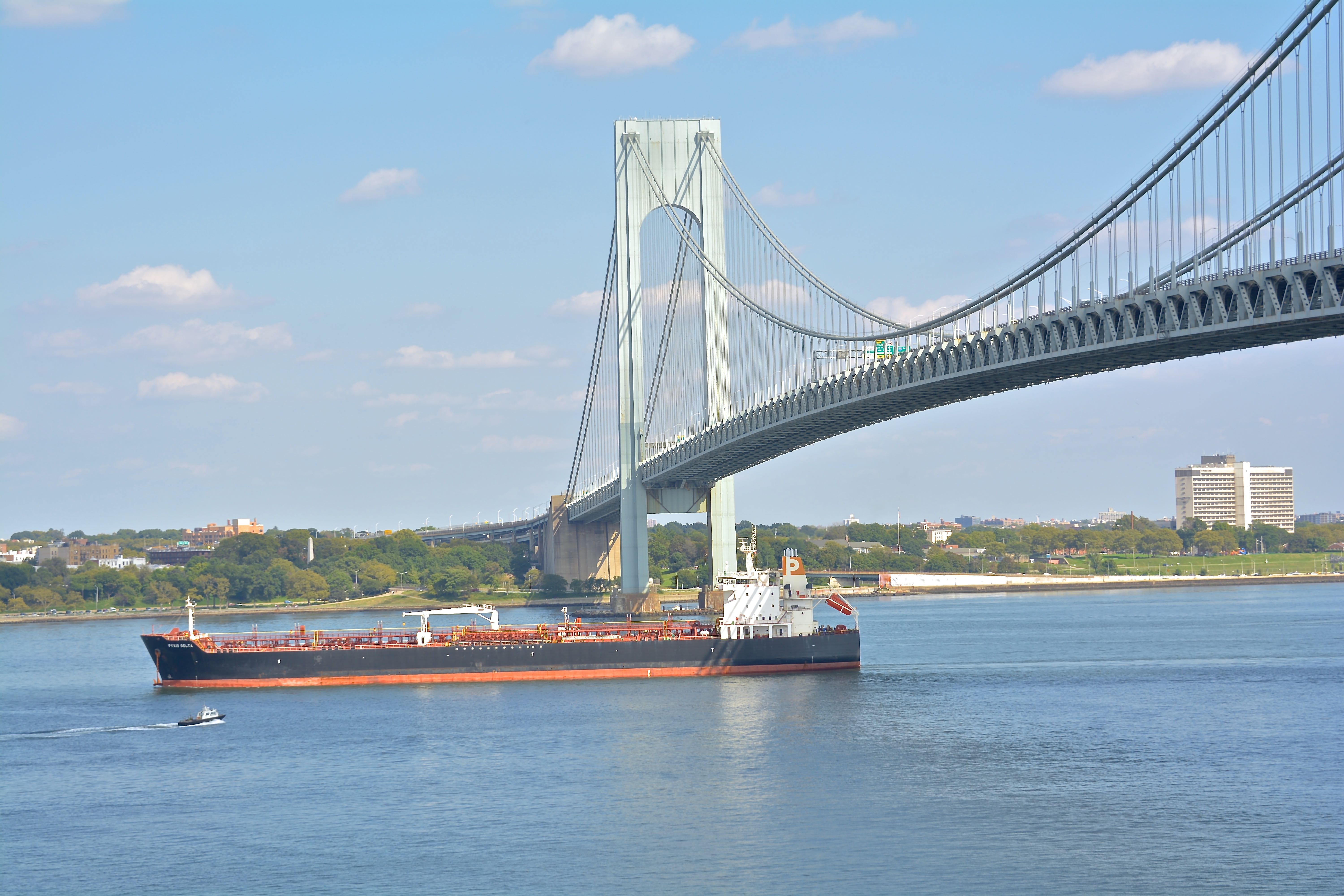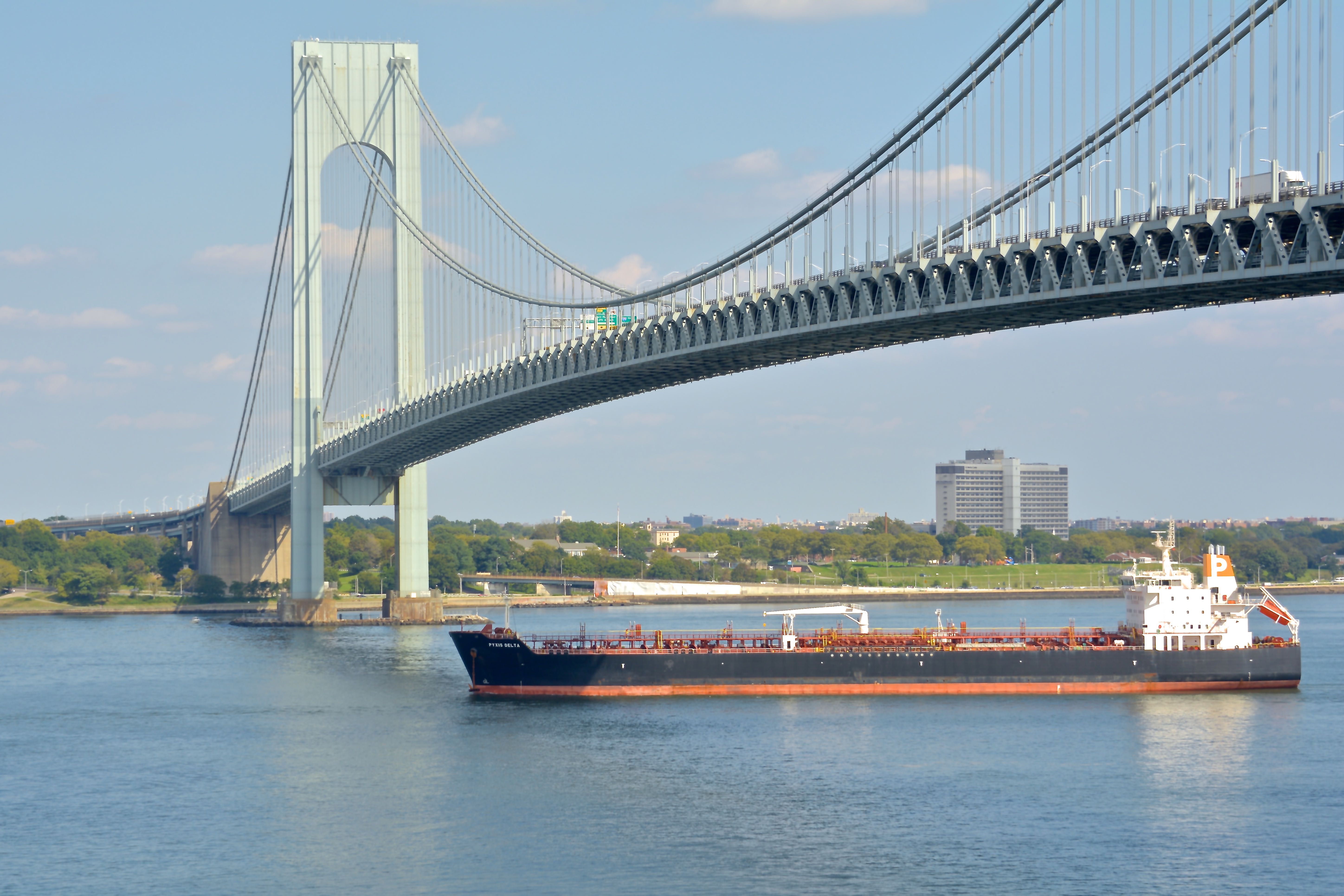 Products / Chemical Tanker MT ‘Pyxis Delta’ by the Verrazzano-Narrows Bridge. Image credit: Karatzas Images