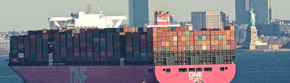 Neo-panamax Containership MV ‘ONE Minato’ photographed with Statue of Liberty Fully Cellular Containership 13,870 TEU, built 2018 at Imabari SB Hiroshima