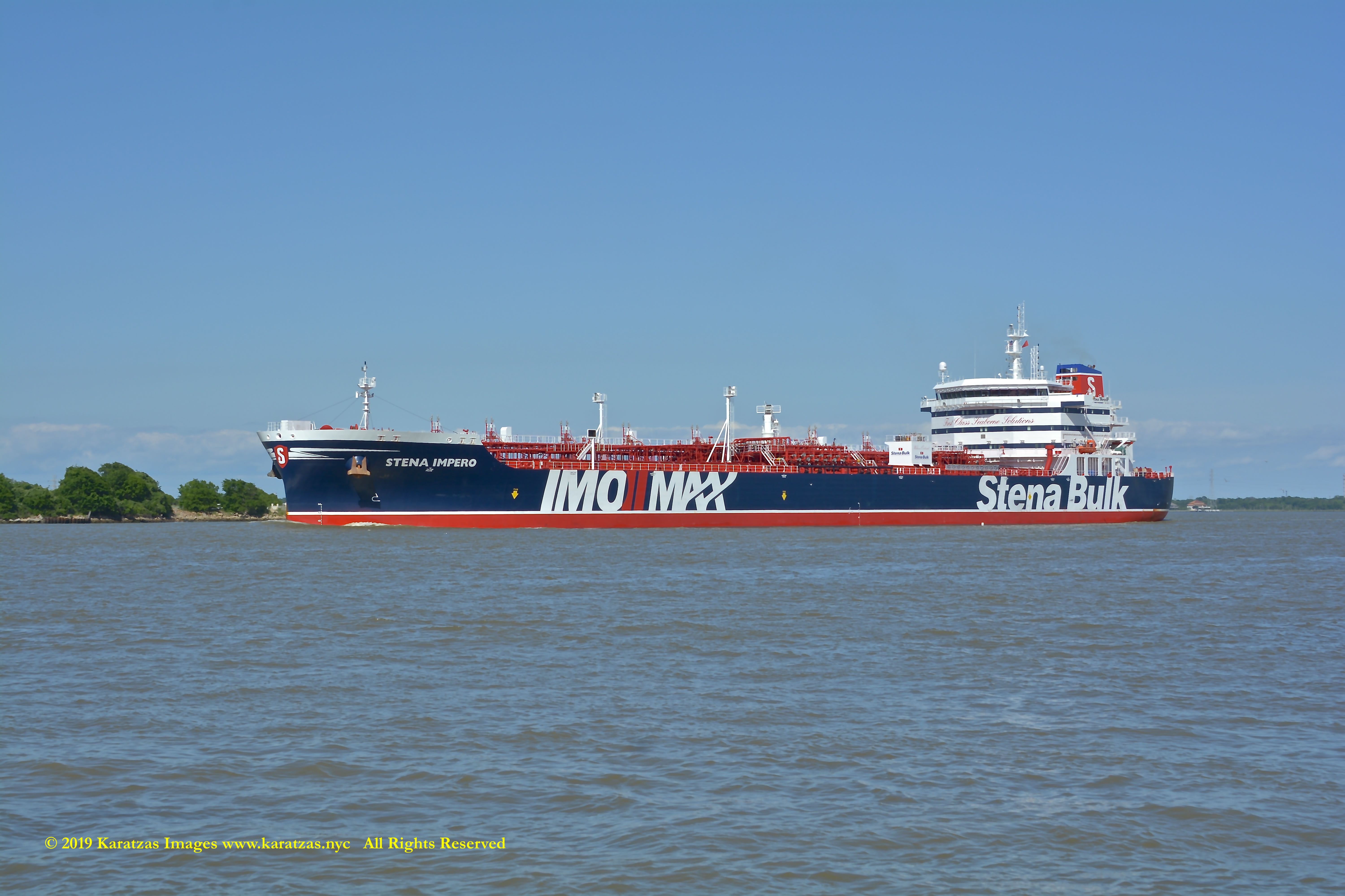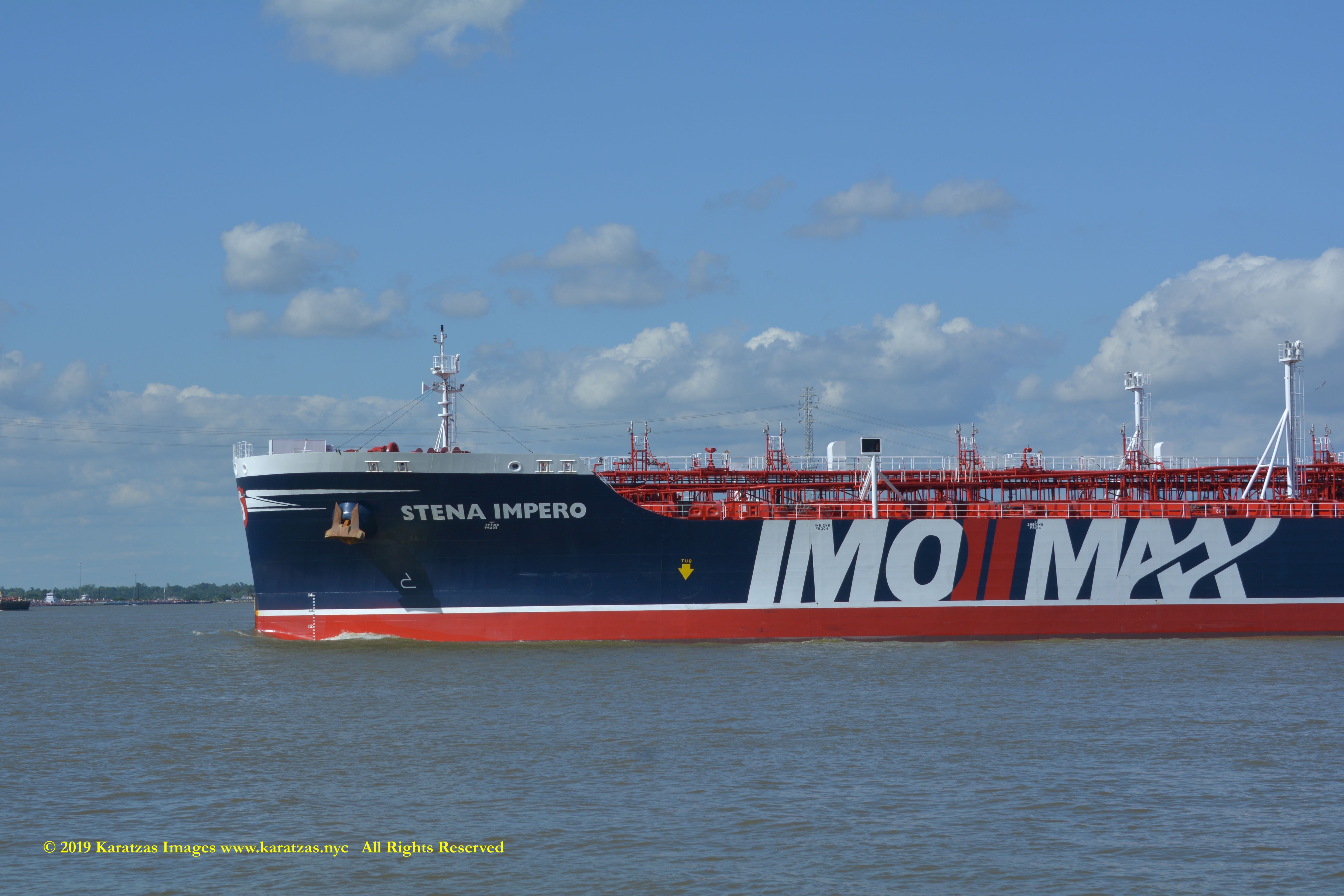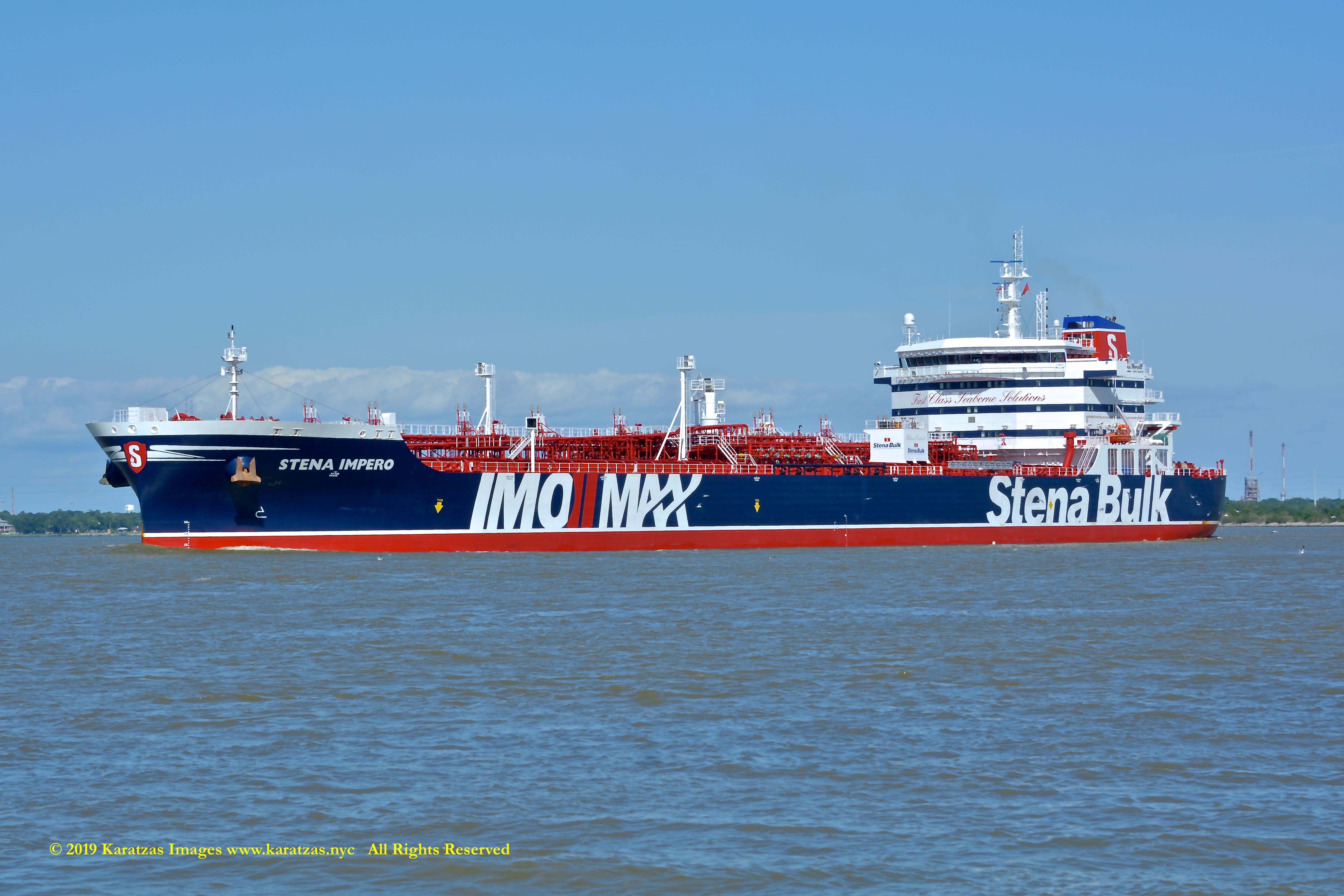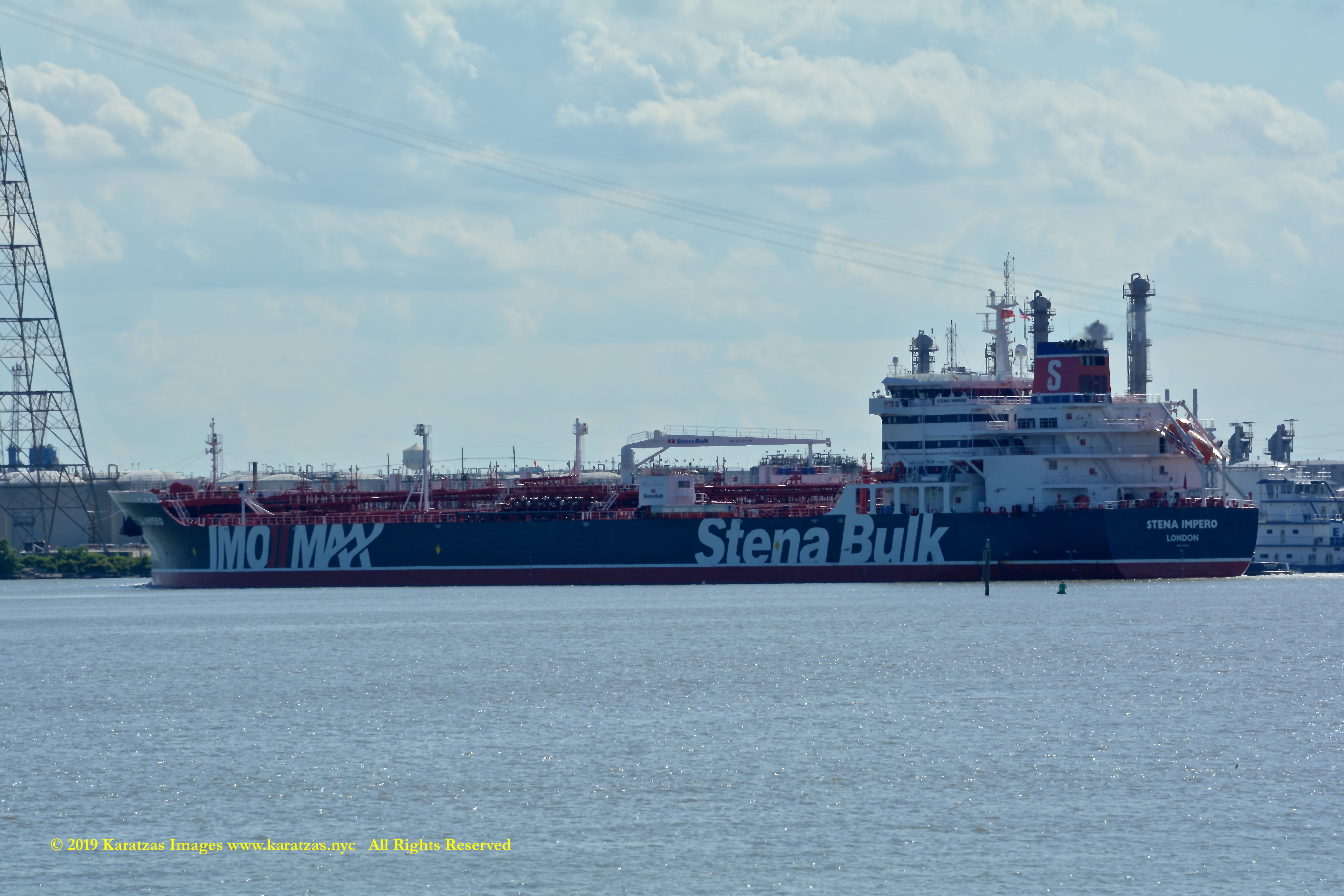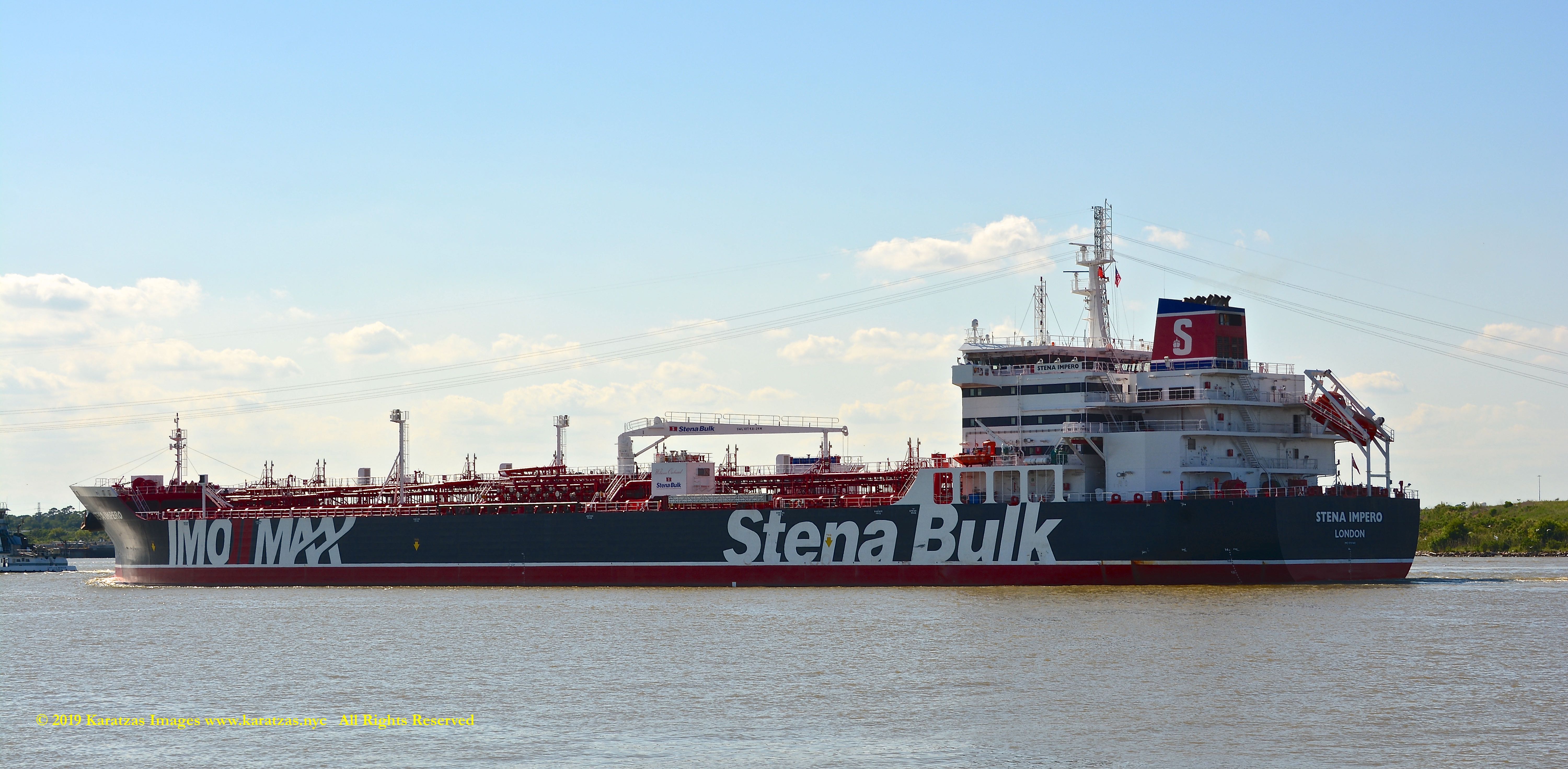 Images of brightly pained LPG tanker of MT ‘Gas Summit’ (84,000 cbm, 54,000 dwt, built in 2014 at Hyundai Heavy (Ulsan) and owned by S. Korea’s KSS Line) sailing upstream in the Houston Ship Channel. Image credit: Karatzas Images
