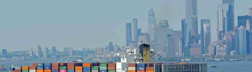 Images of neo-panamax containership MV ‘GSL Tianjin’ entering the New York Harbor; seen here against the Lower Manhattan skyline and the World Trade Center. Image credit: Karatzas Images