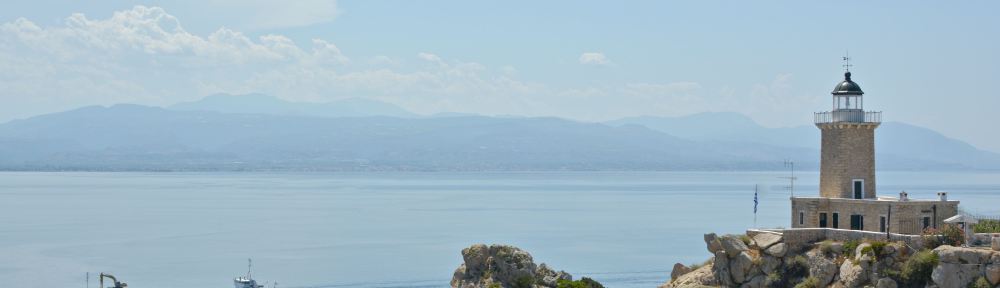 Image of Melagavi (Μελαγκἀβη) or Heraion (Ηραἰον) Lighthouse at Perachora, Loutraki, Greece.