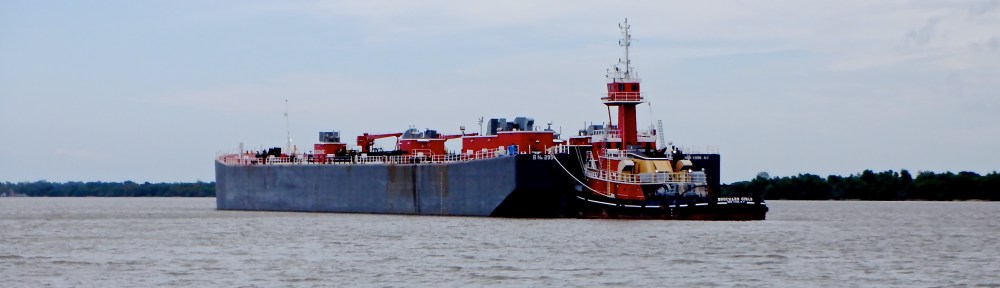 Originally built in 1989 and double-hulled in 2006, black oil tank barge ‘B. No 295‘ (155,000 bbl) is seen here married to pusher tug ‘Bouchard Girls’ (6,000 hp, built in 1989), while at anchor in the Mississippi River at Port Sulphur. Image credit: Karatzas Images