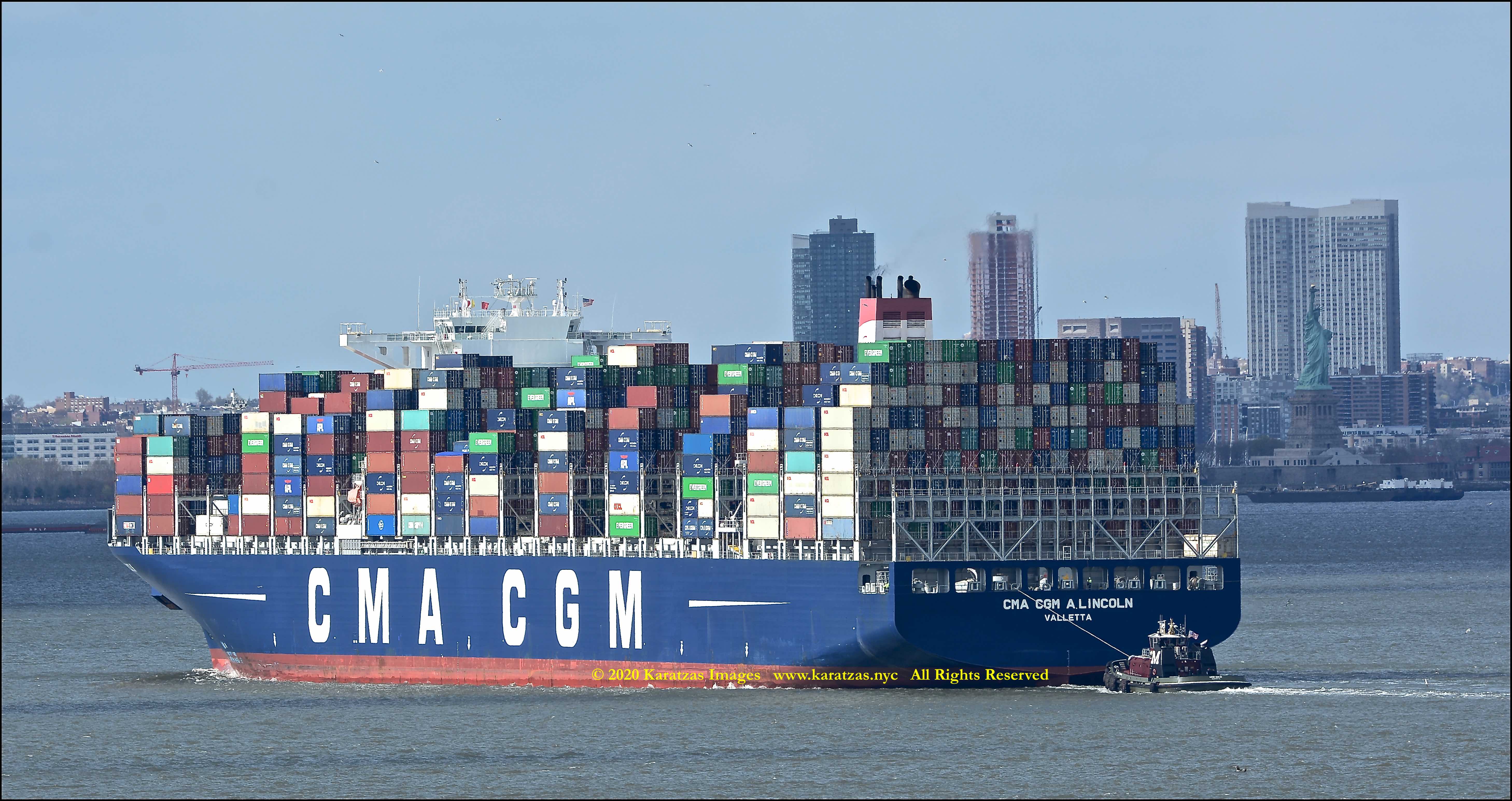 Images of MV ‘CMA CGM A. Lincoln’ by the Statue of Liberty