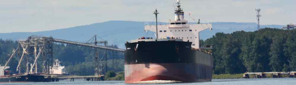Kamsarmax bulker MV ‘Thestelia K’ photographed sailing in ballast upstream in the Columbia River, at the Port of Kalama, Washington State. Tess II design by Tsuneishi, built in 2009. Image credit: Karatzas Images