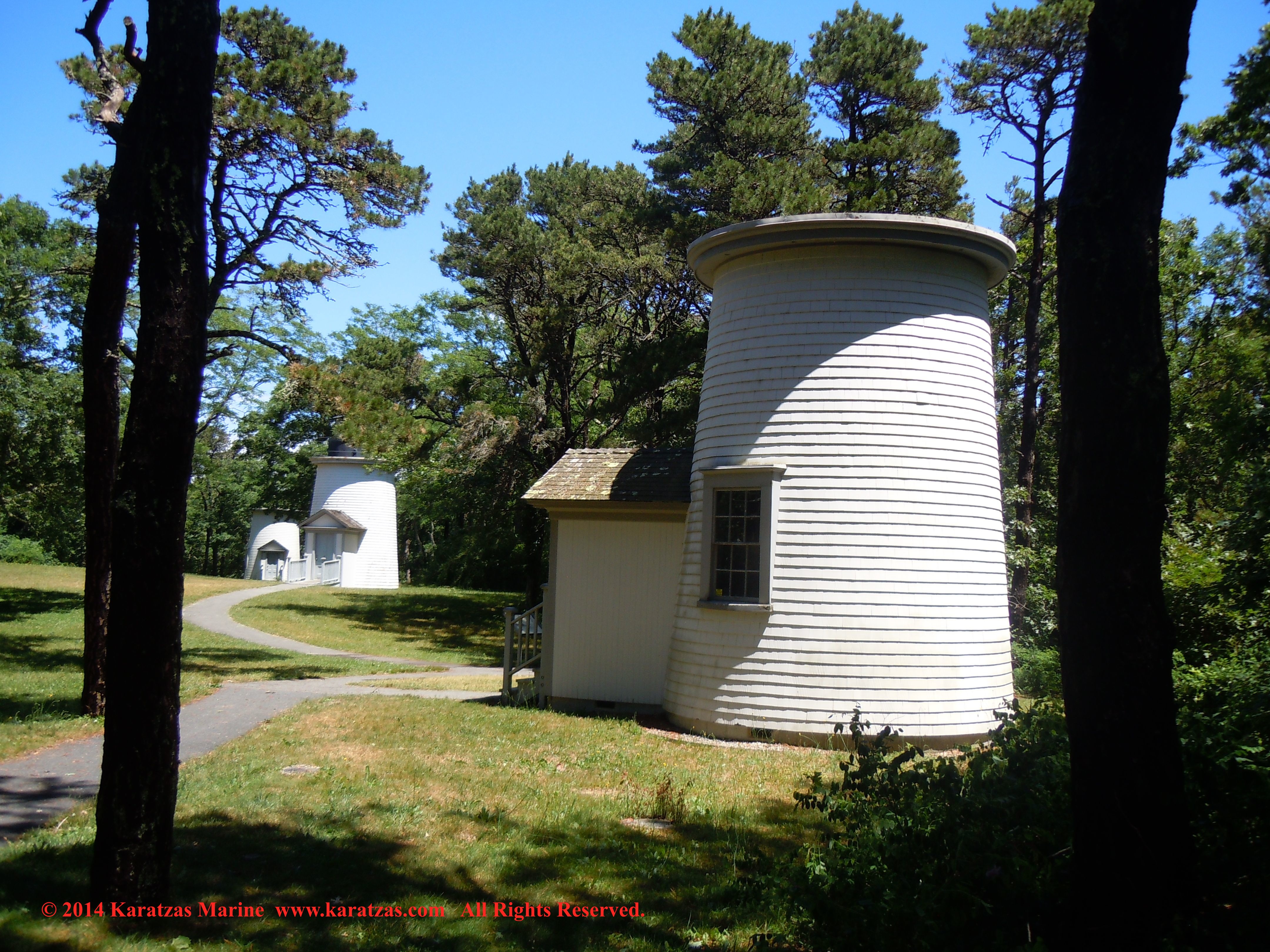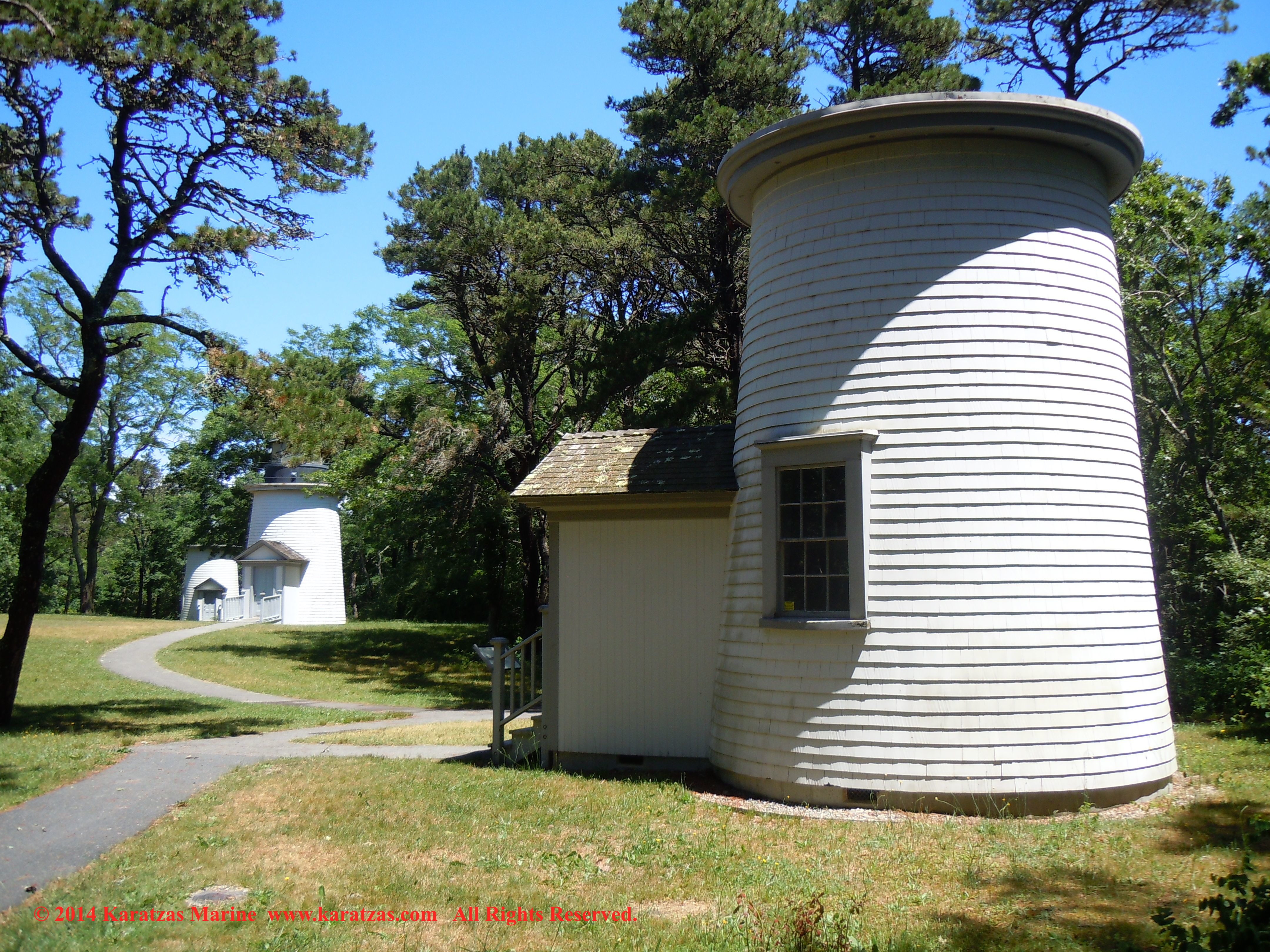 With the first lighthouse on Cape Cod (Highland Light) in North Truro (commissioned in 1797 by George Washington) and the second lighthouse in Chatham (commissioned in 1808, Chatham Light), this third lighthouse was planned to be positioned between the first two. The Highland Light had one light and the Chatham Light, in order to be easily distinguishable from the former, had two lights (and thus the original name of ‘Twin Lights’). This third lighthouse structure was designed with three lights in order to stand out, and thus the name of ‘Three Sisters’.