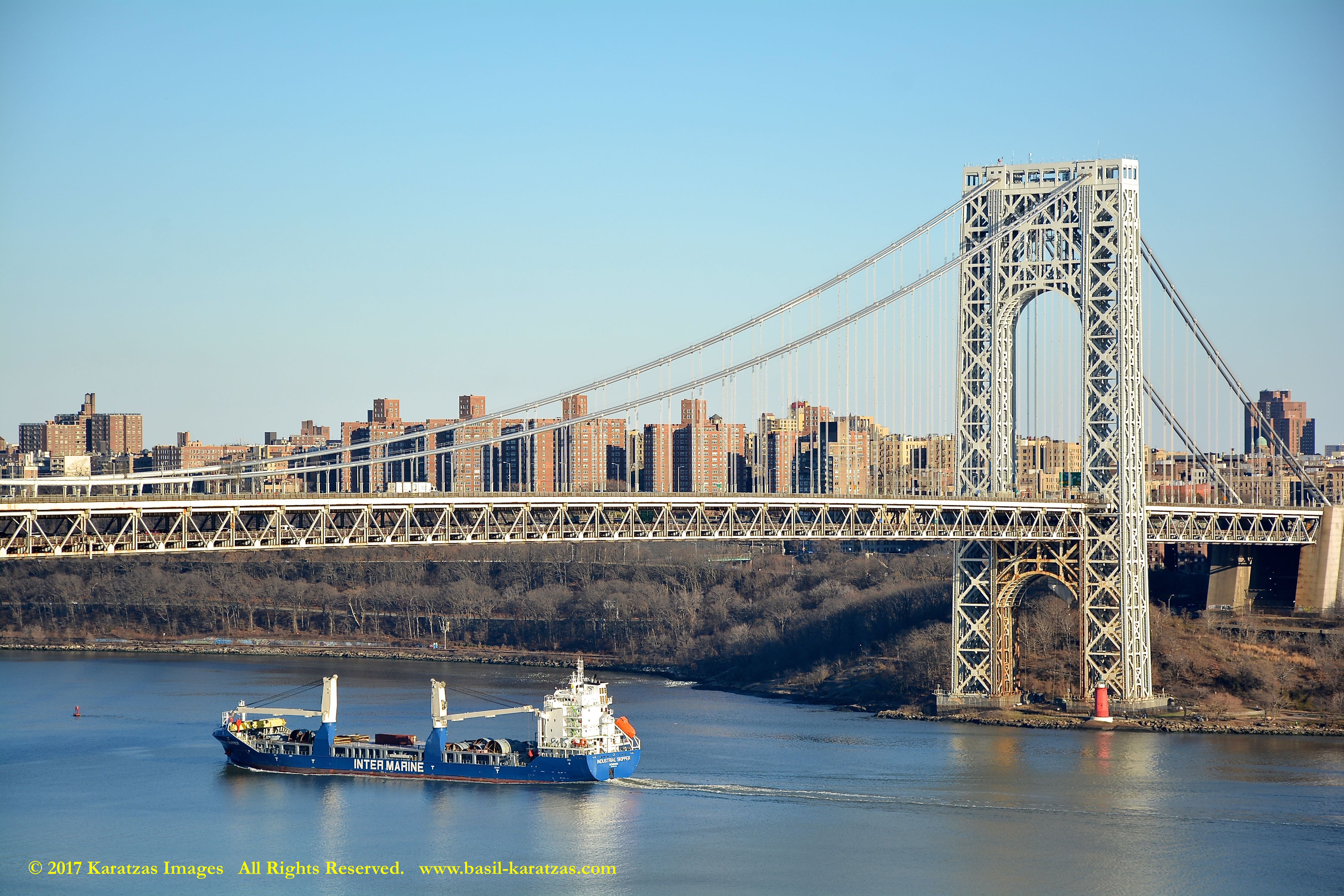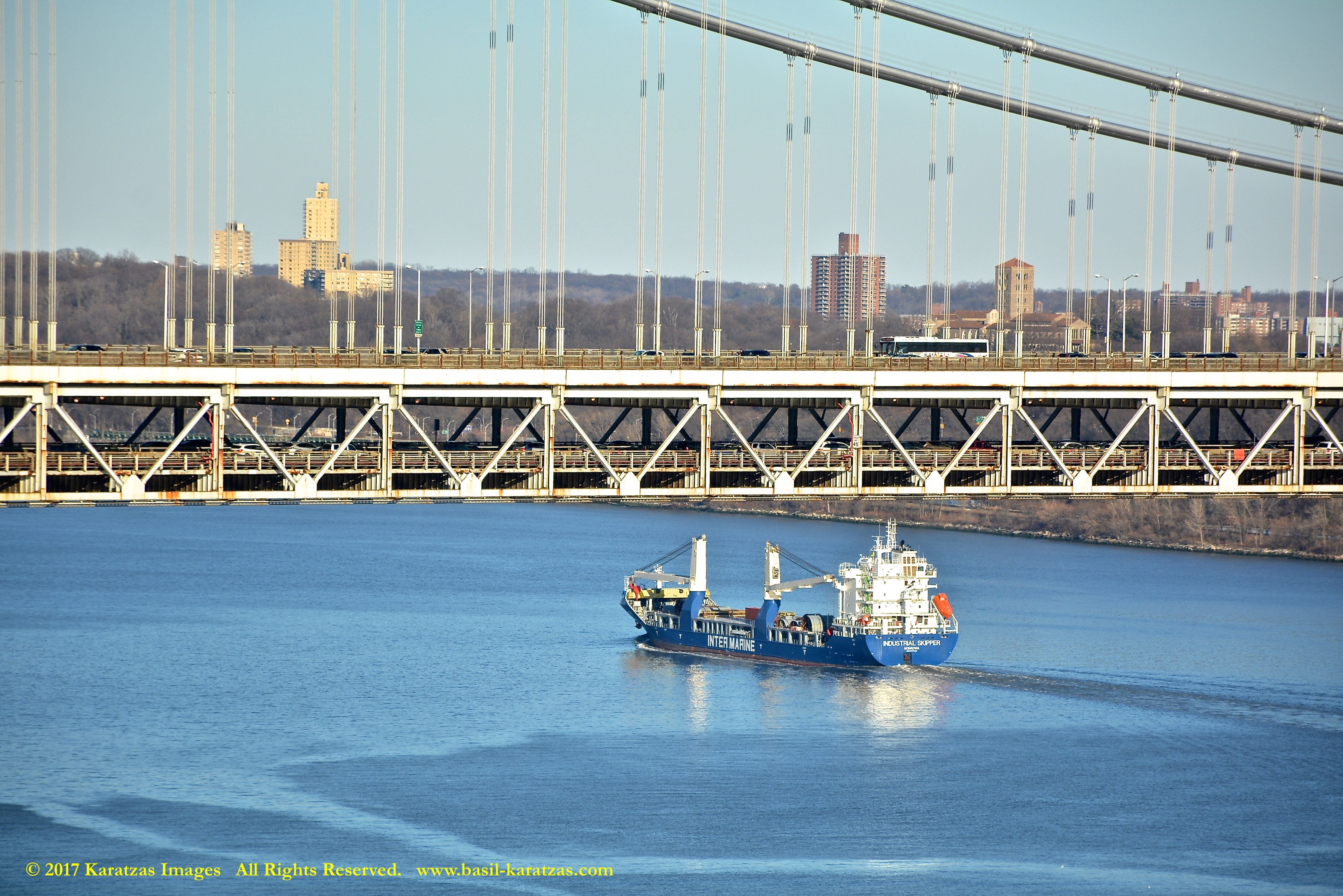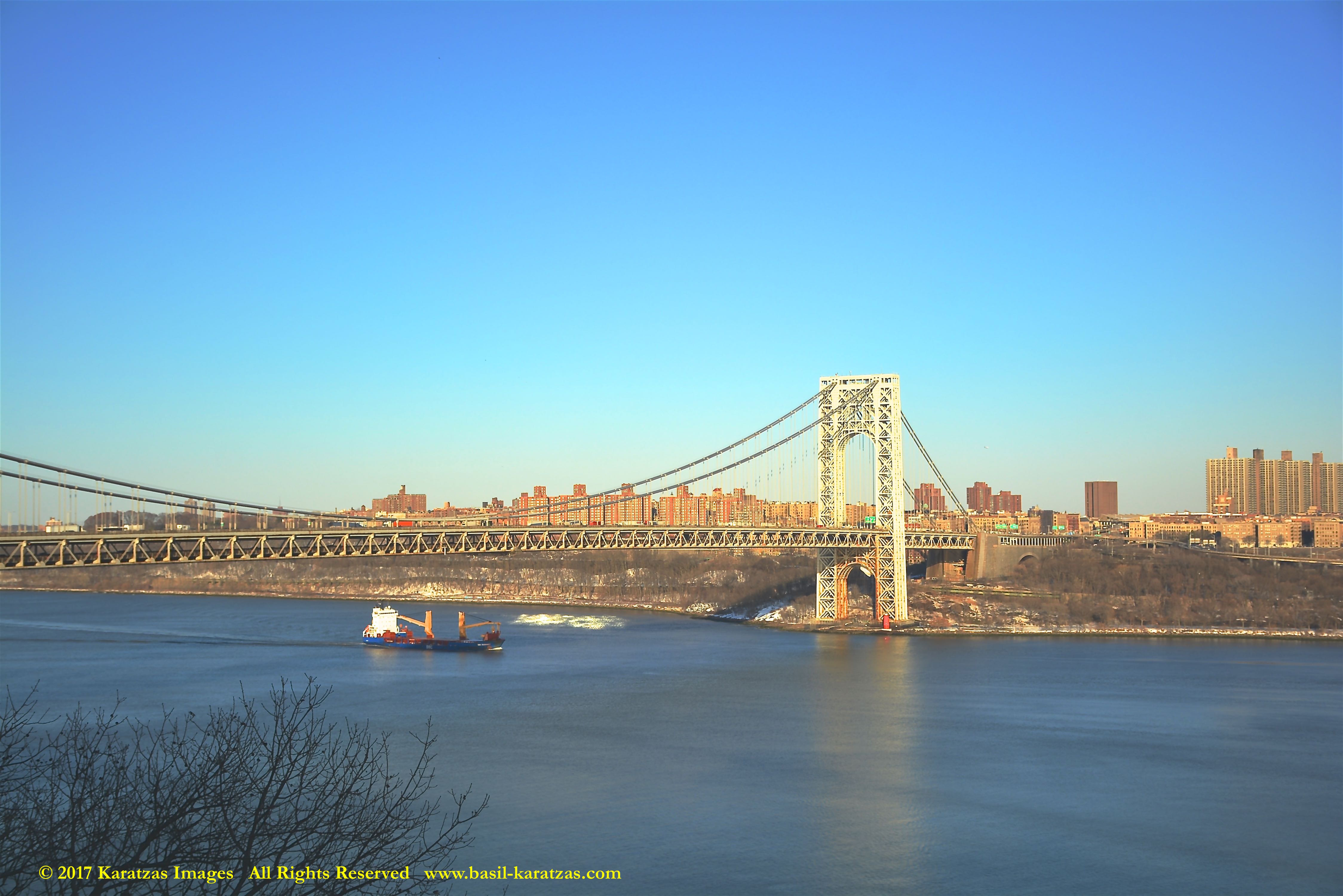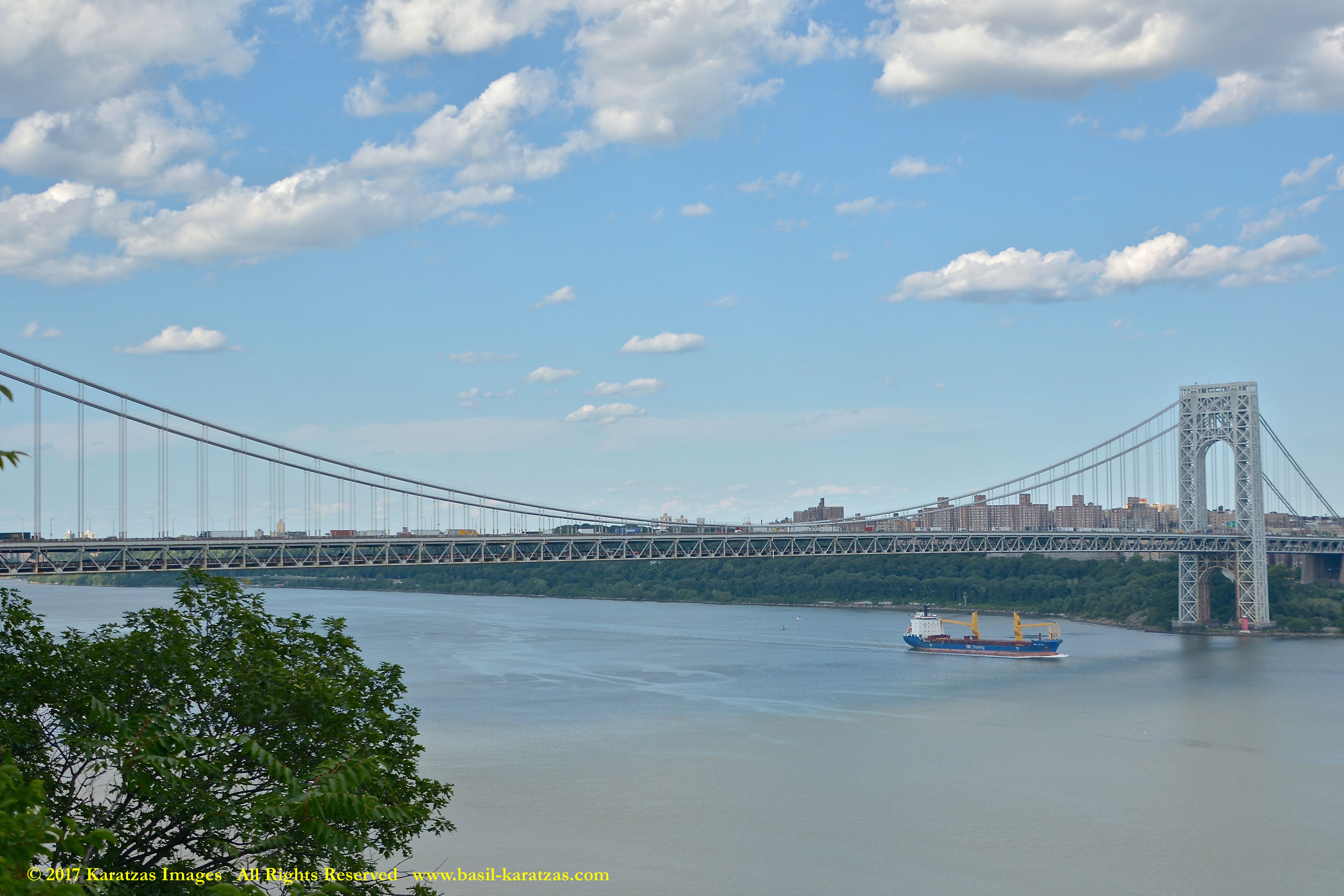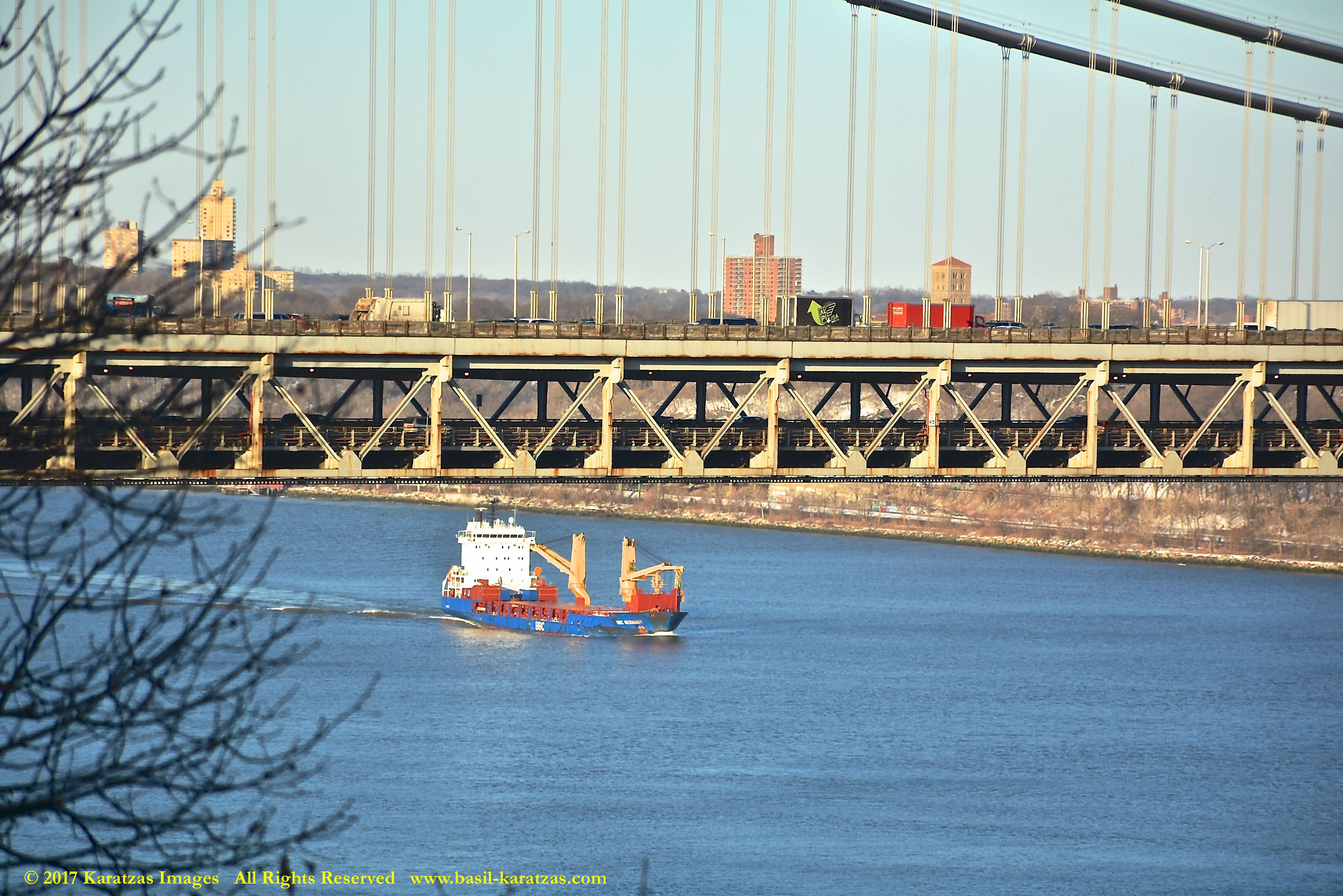 Multi-purpose (MPP) / Heavylift Vessel MV ‘BBC Arizona’ passing under the George Washington Bridge while sailing downstream on Hudson River in New York. Image credit: Karatzas Images