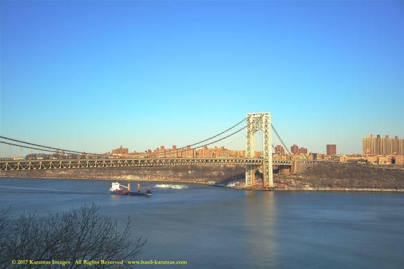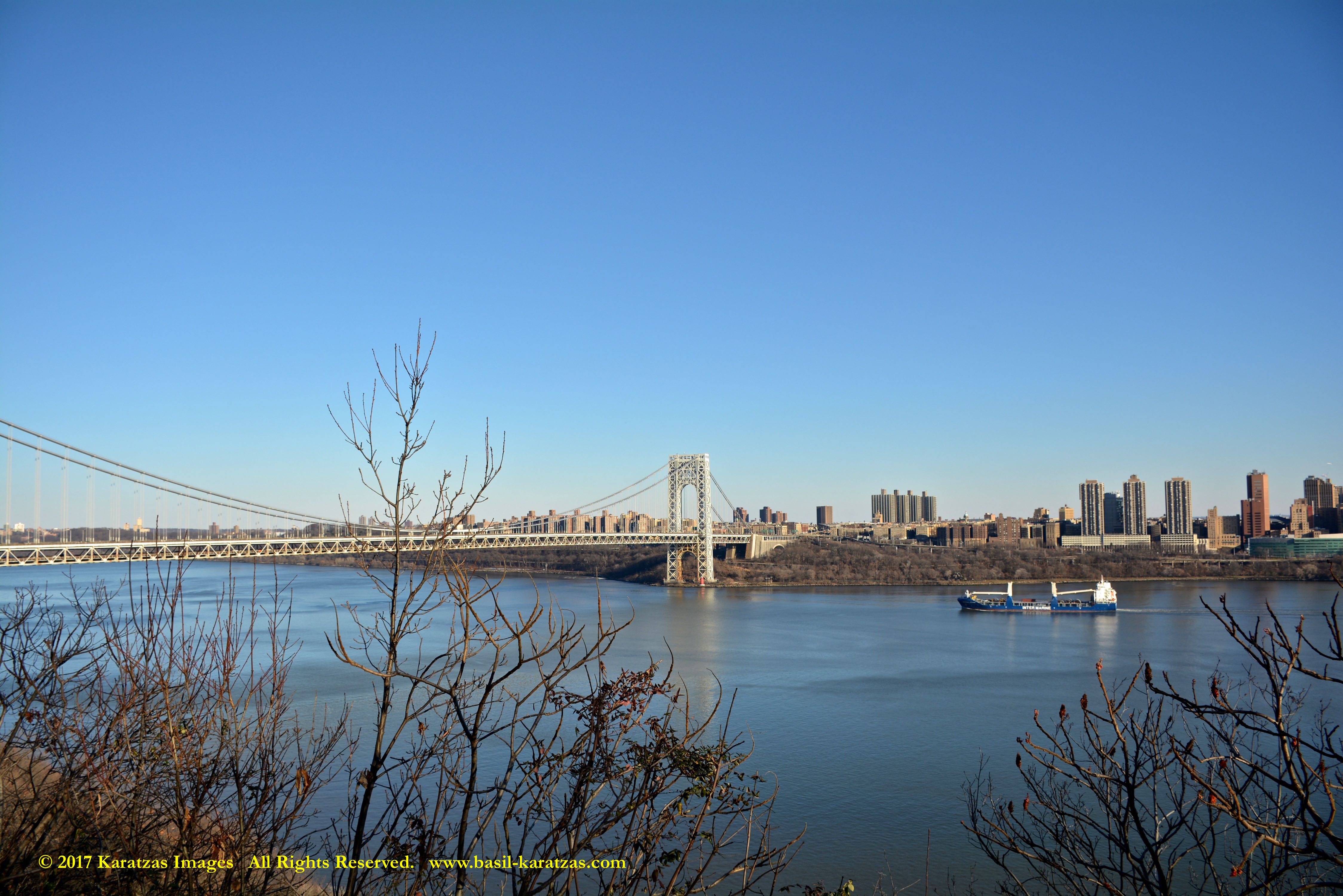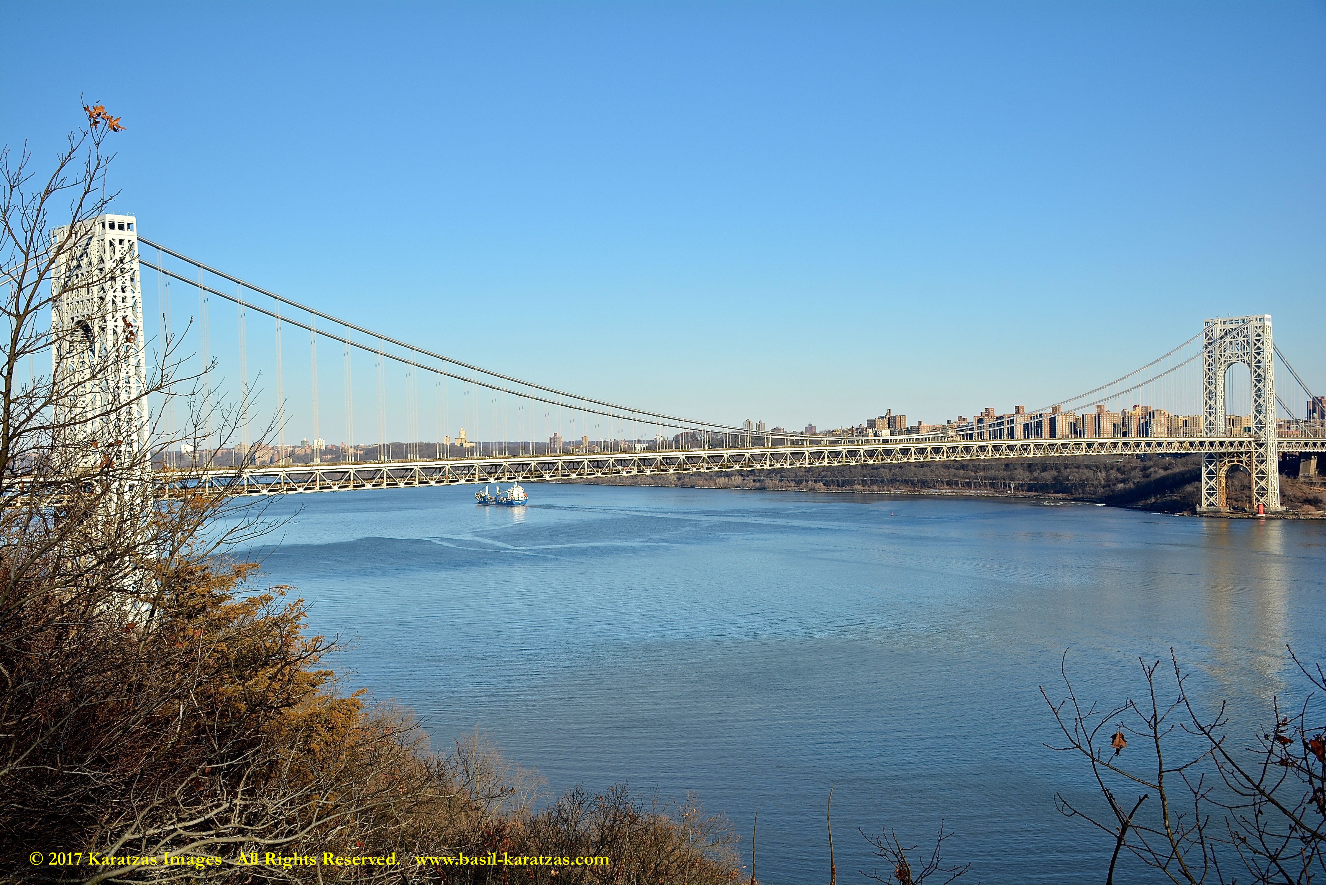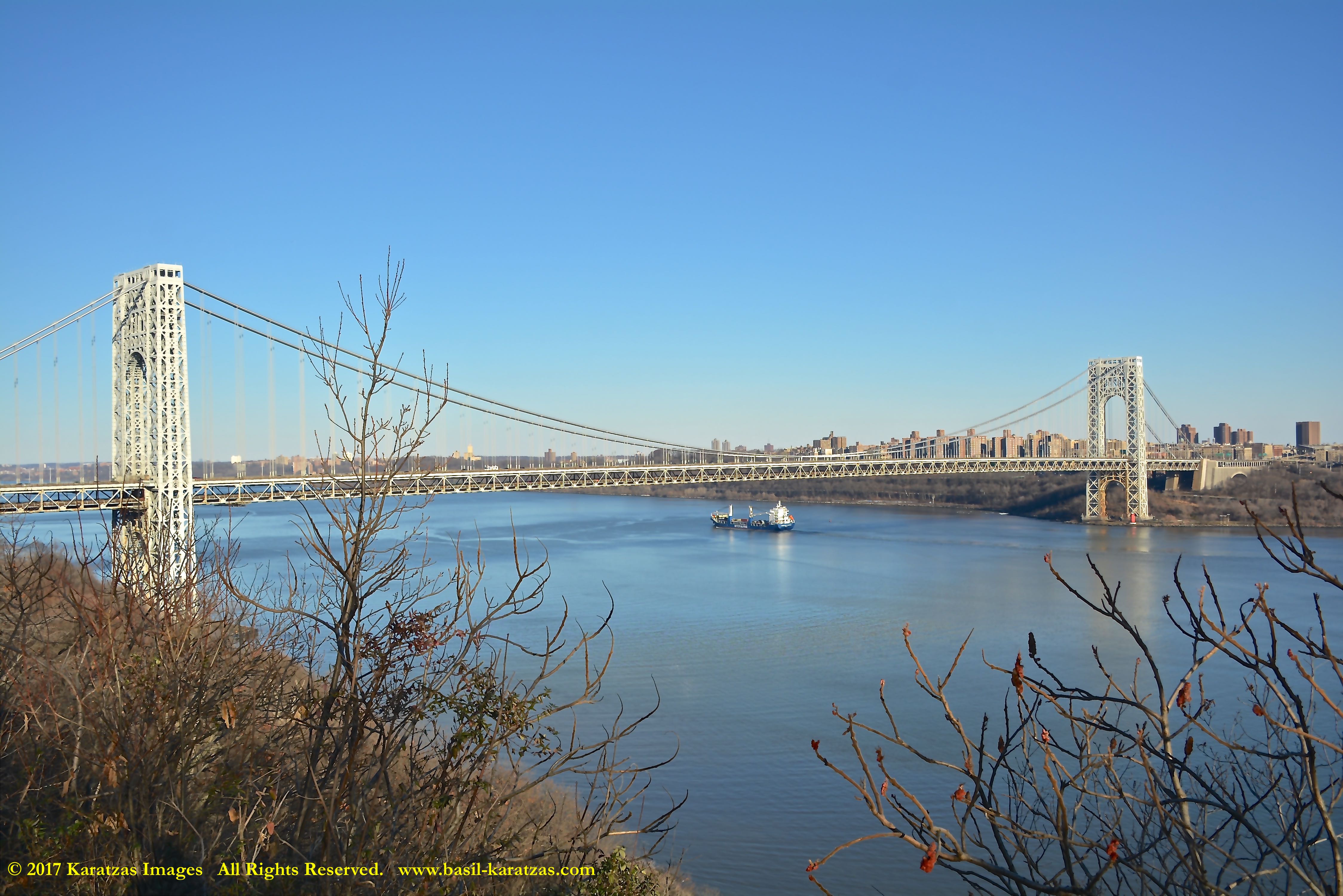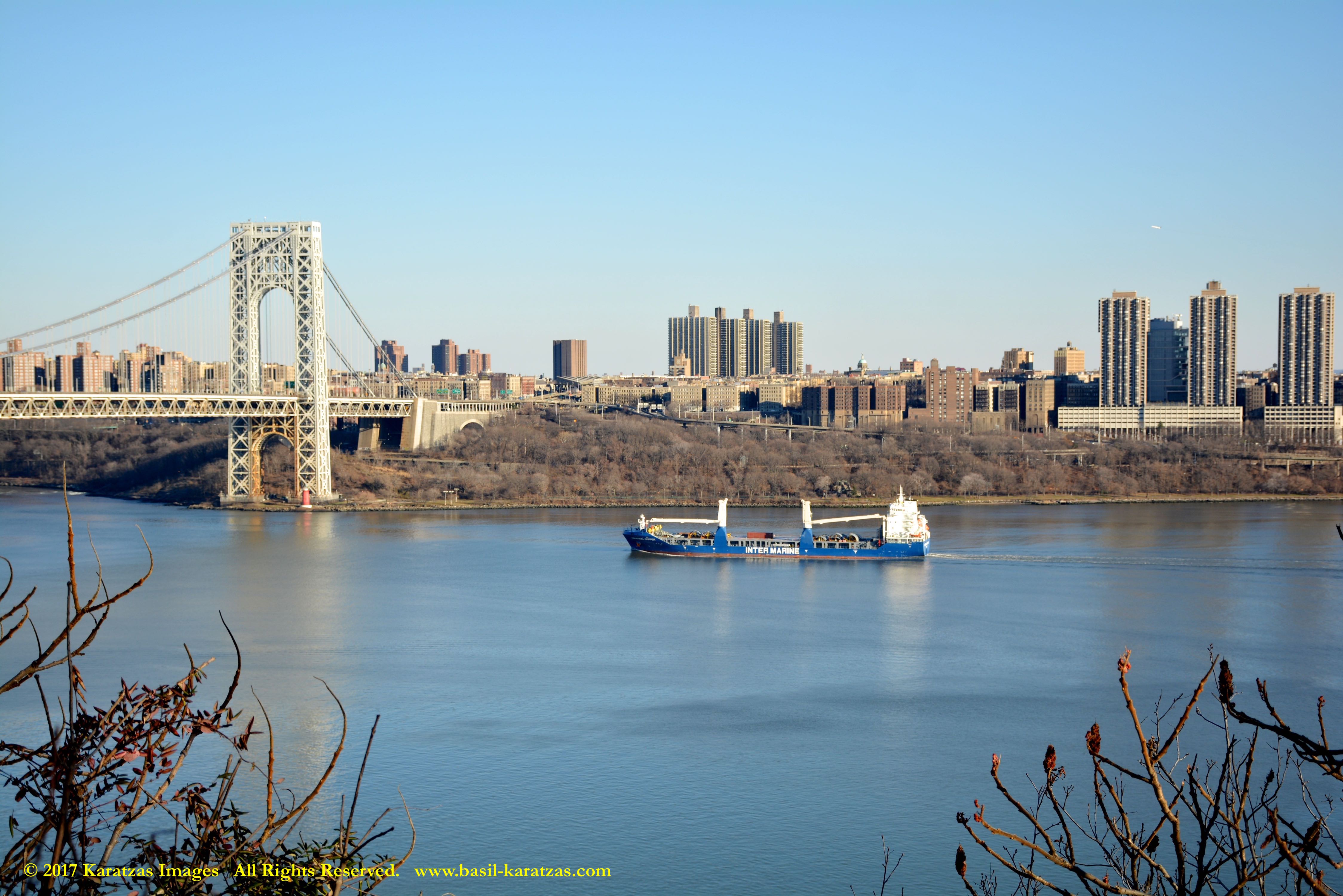 Multi-purpose (MPP) / Heavylift Vessel MV ‘BBC Arizona’ passing under the George Washington Bridge while sailing downstream on Hudson River in New York. Image credit: Karatzas Images