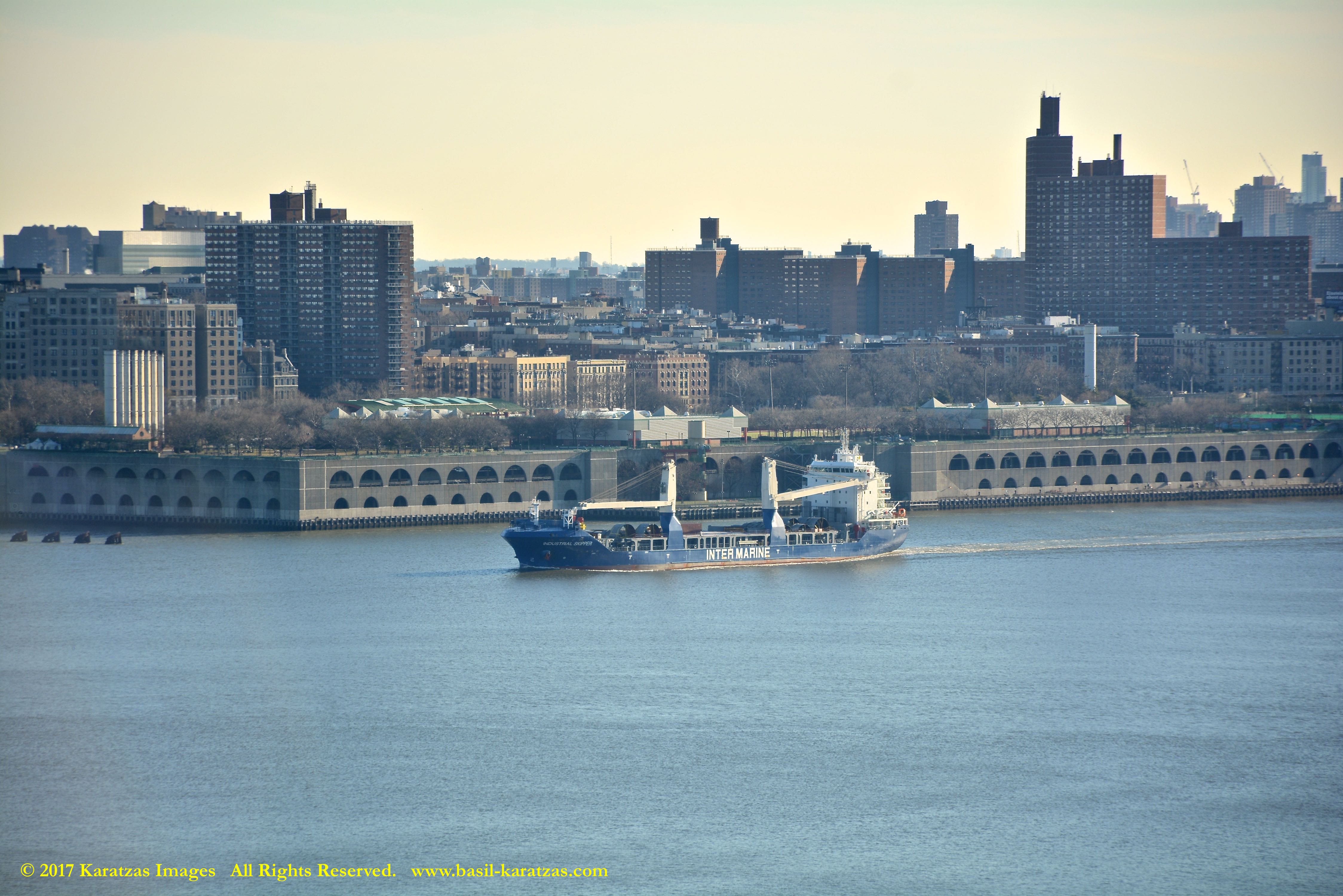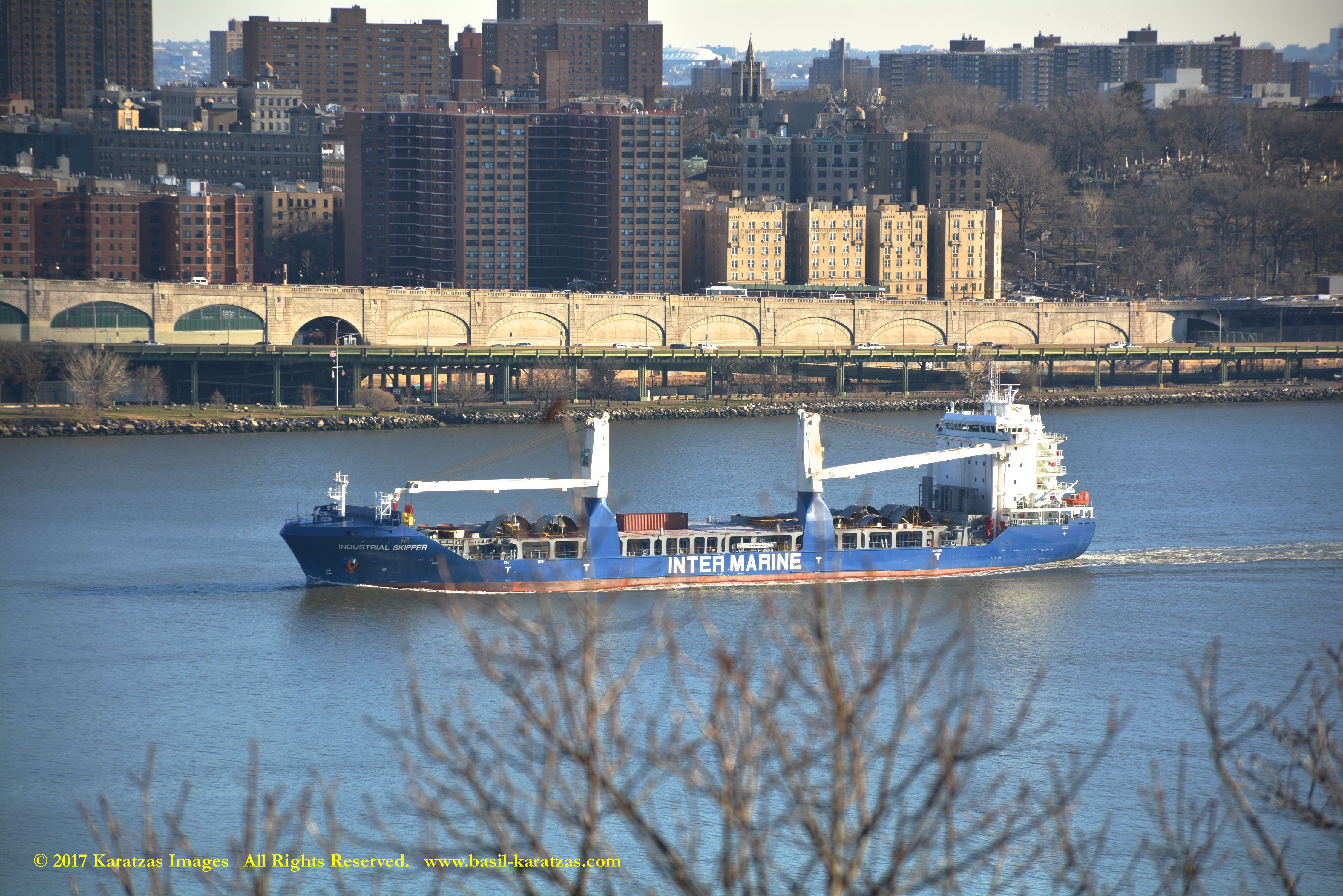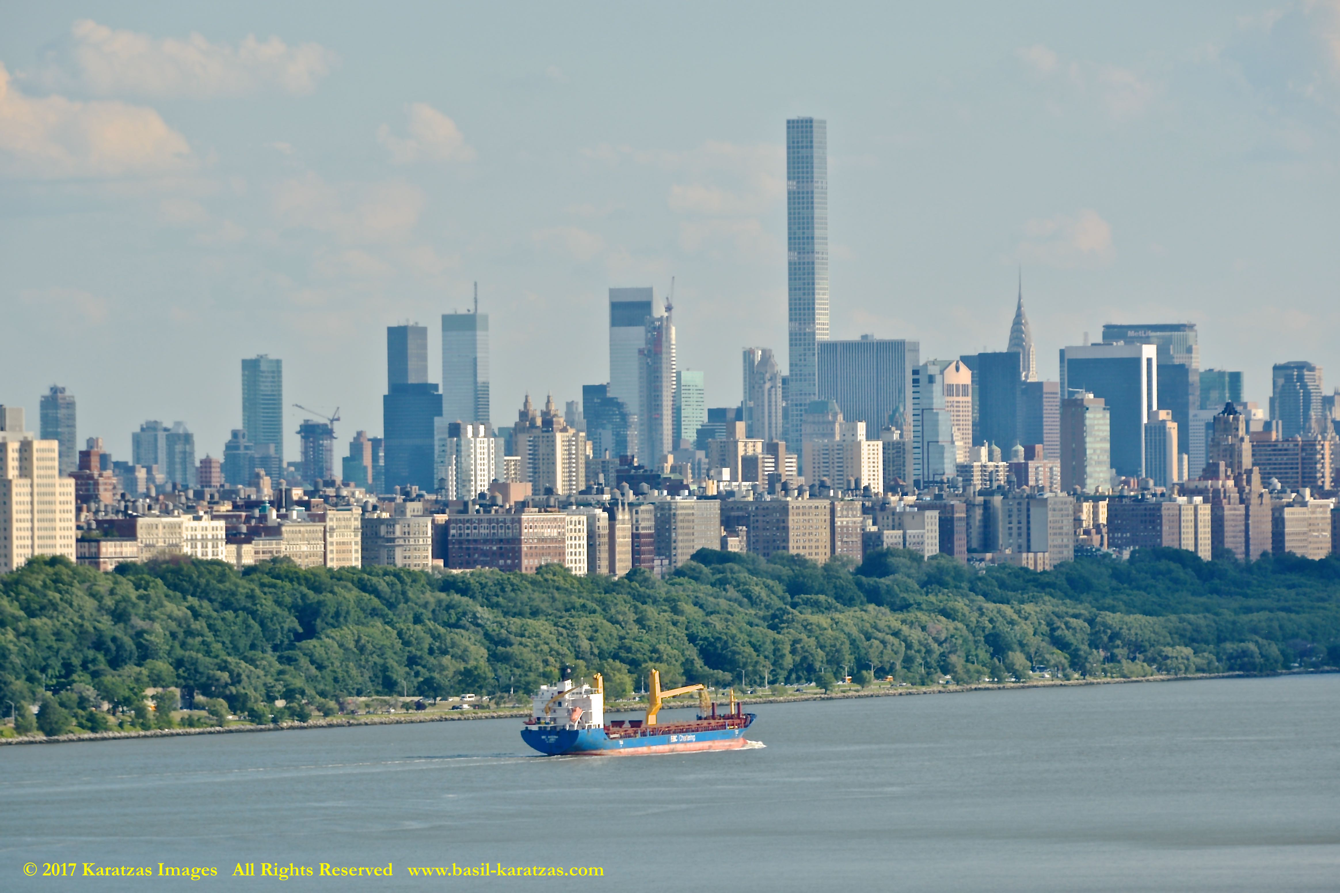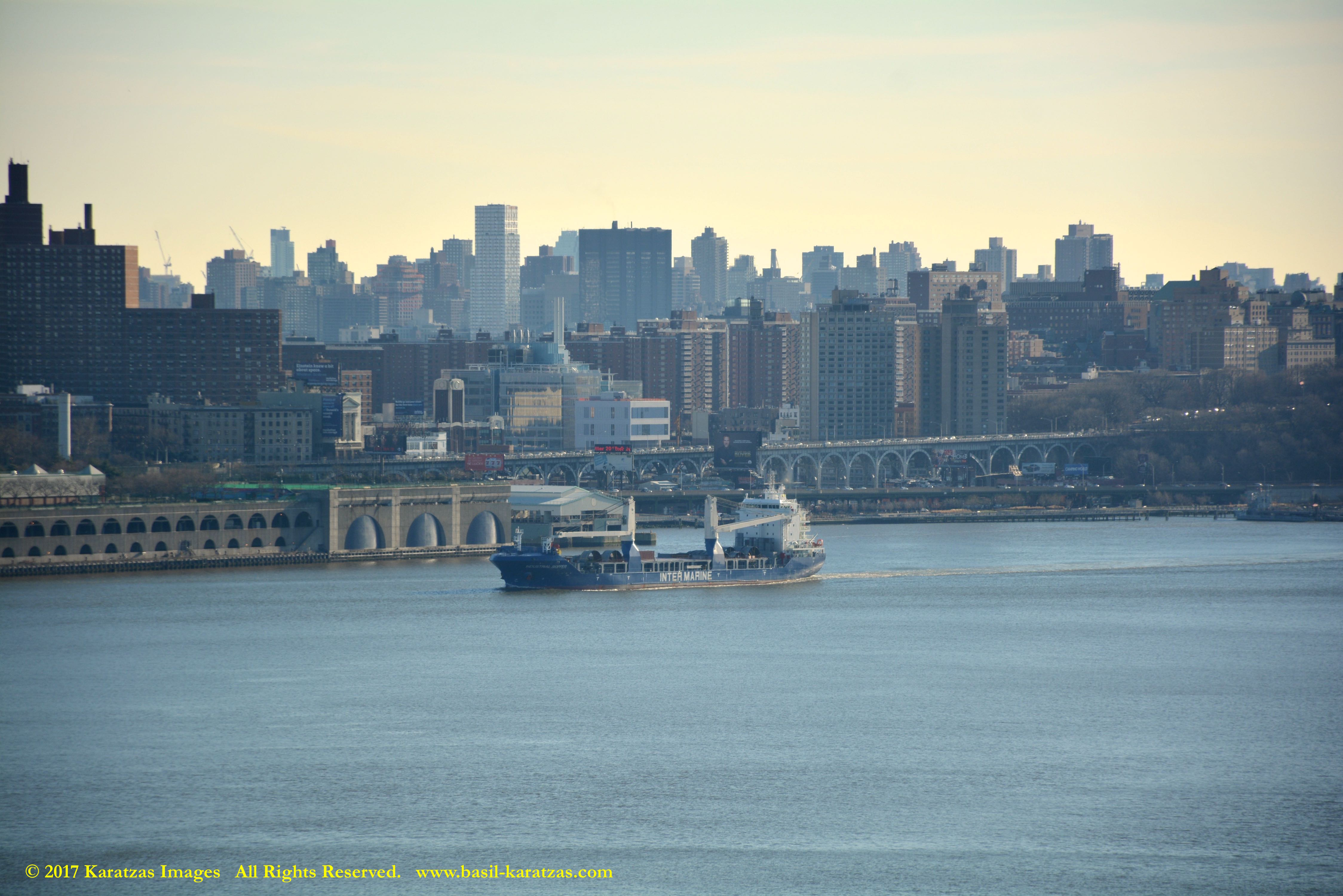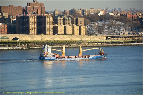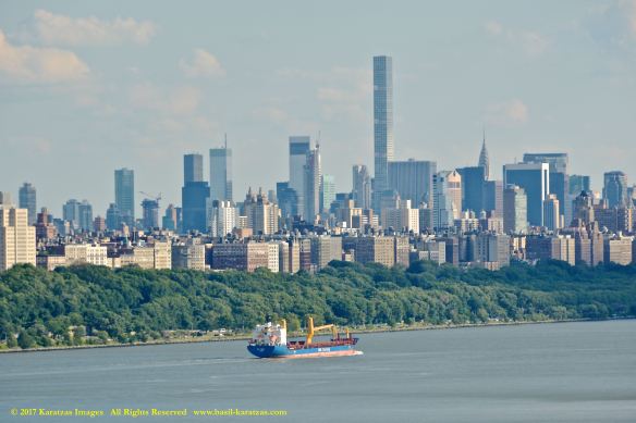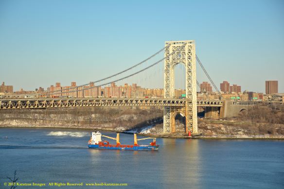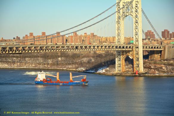 MV ‘BBG Germany’ (7,700 DWT, Built in 2004 at Tianjin Xingang HI) photographed in 2017 under the George Washington Bridge and against the Manhattan skyline.