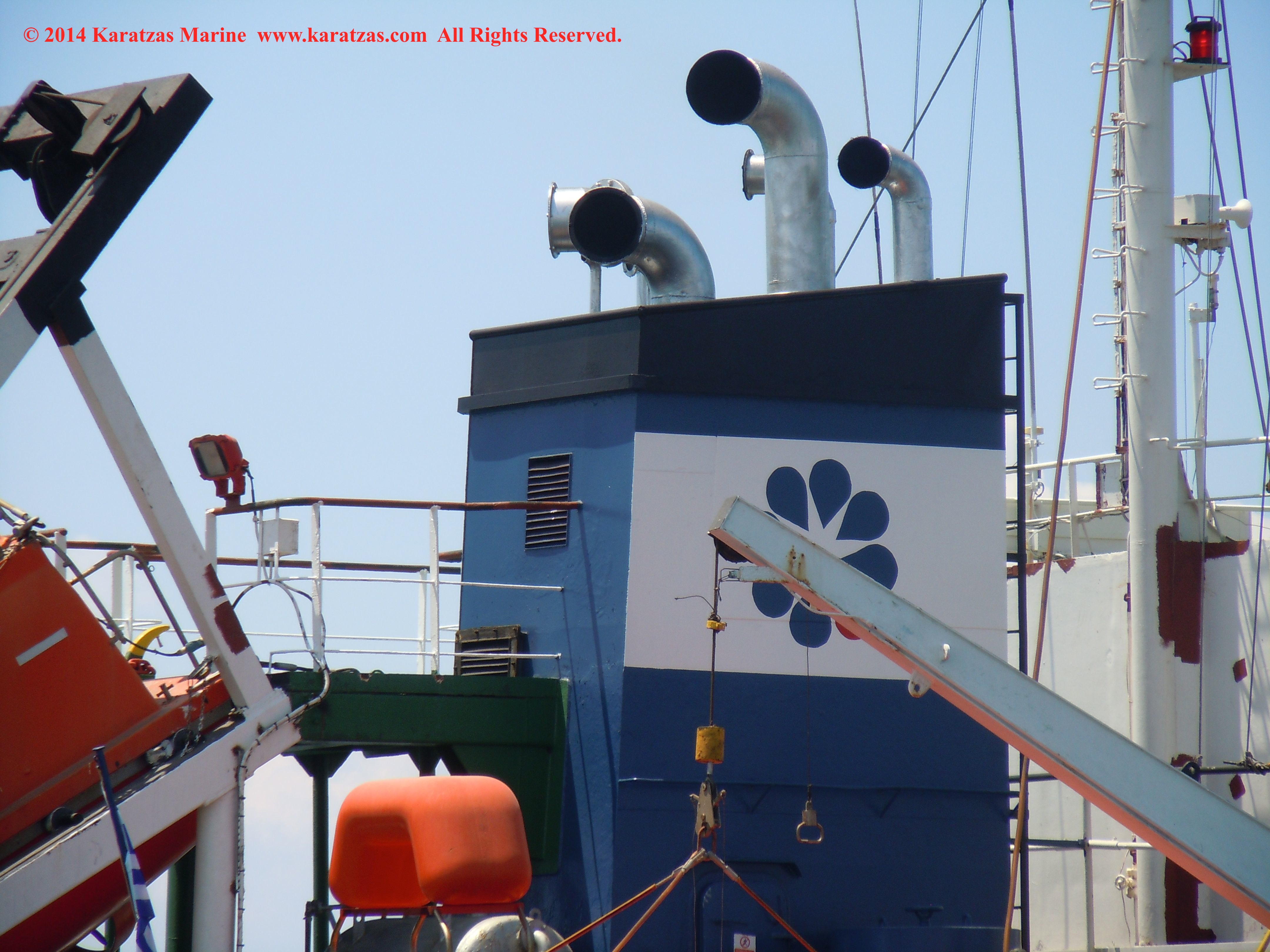IDENTIFICATION: Ex-names are Aegean VIII, Dragon Summit, Dong Yang. Call Sign SVAS3, IMO Number 8313556. Built at Bang-Eo Jin S/Y, Greece Flagged, HR Classed, Length Overall of 86.69 m., Length Between Perpendiculars of 79.46 m., Draught of 5.51 m., Beam of 14.22 m., Gross Tonnage of 2,205, ENGINE DETAILS: Engine Description 4 S.A. 6-cyl., Engine Model 6LU38. Hanshin Engine, Speed of 11.50 kts, Horsepower of 2200.